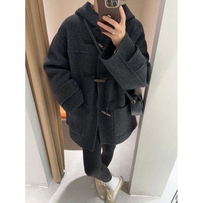反季特價灰色短款呢子大衣女2025新款秋冬季毛呢外套高級感小個子