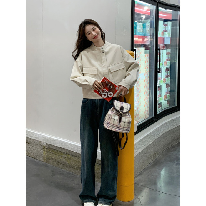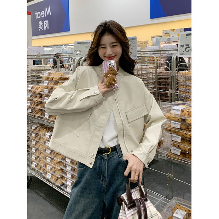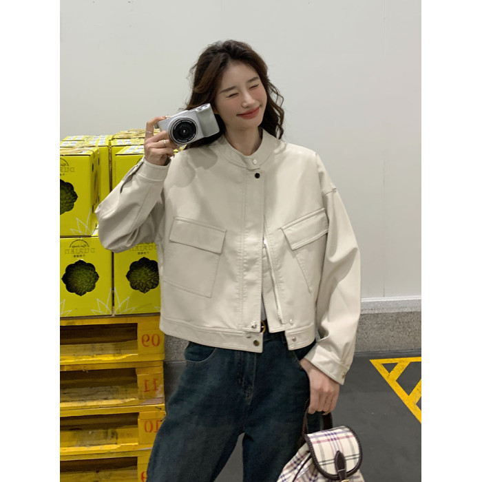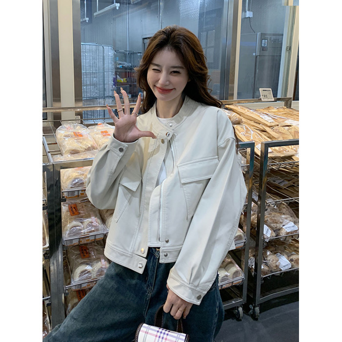 白色PU皮衣外套女短款2025秋新款韓系寬松小個子漂亮洋氣機車夾克