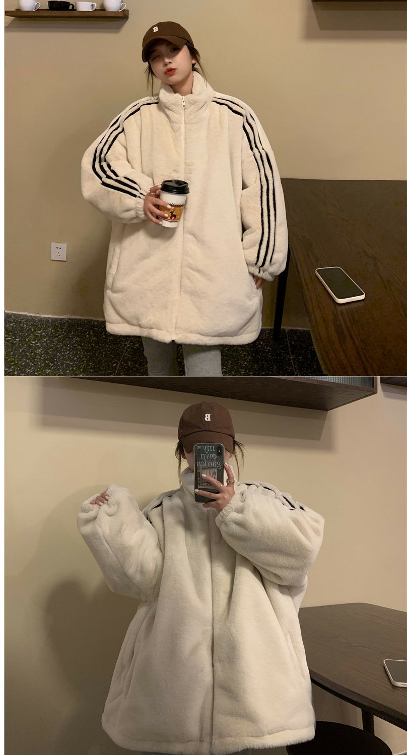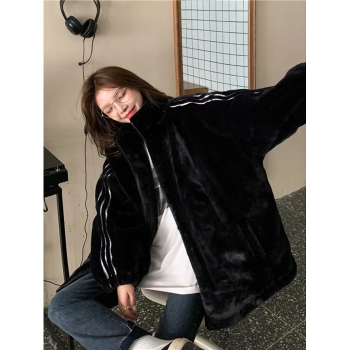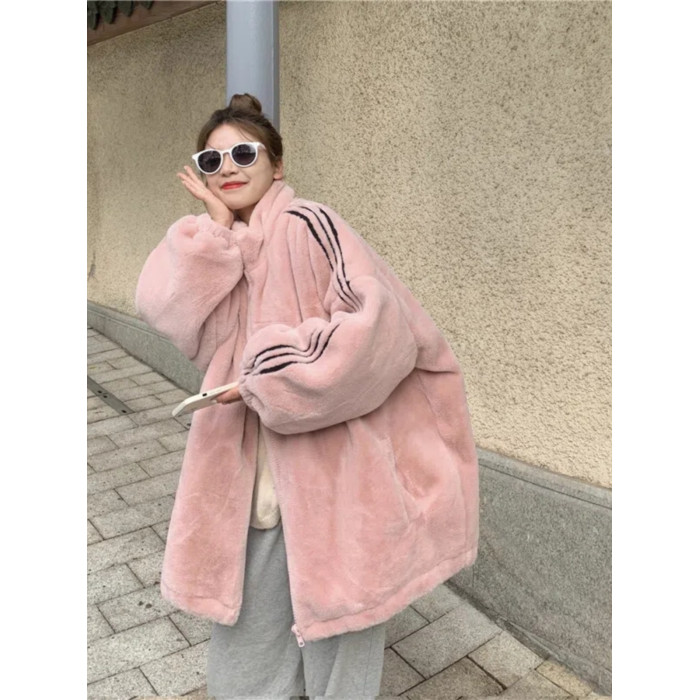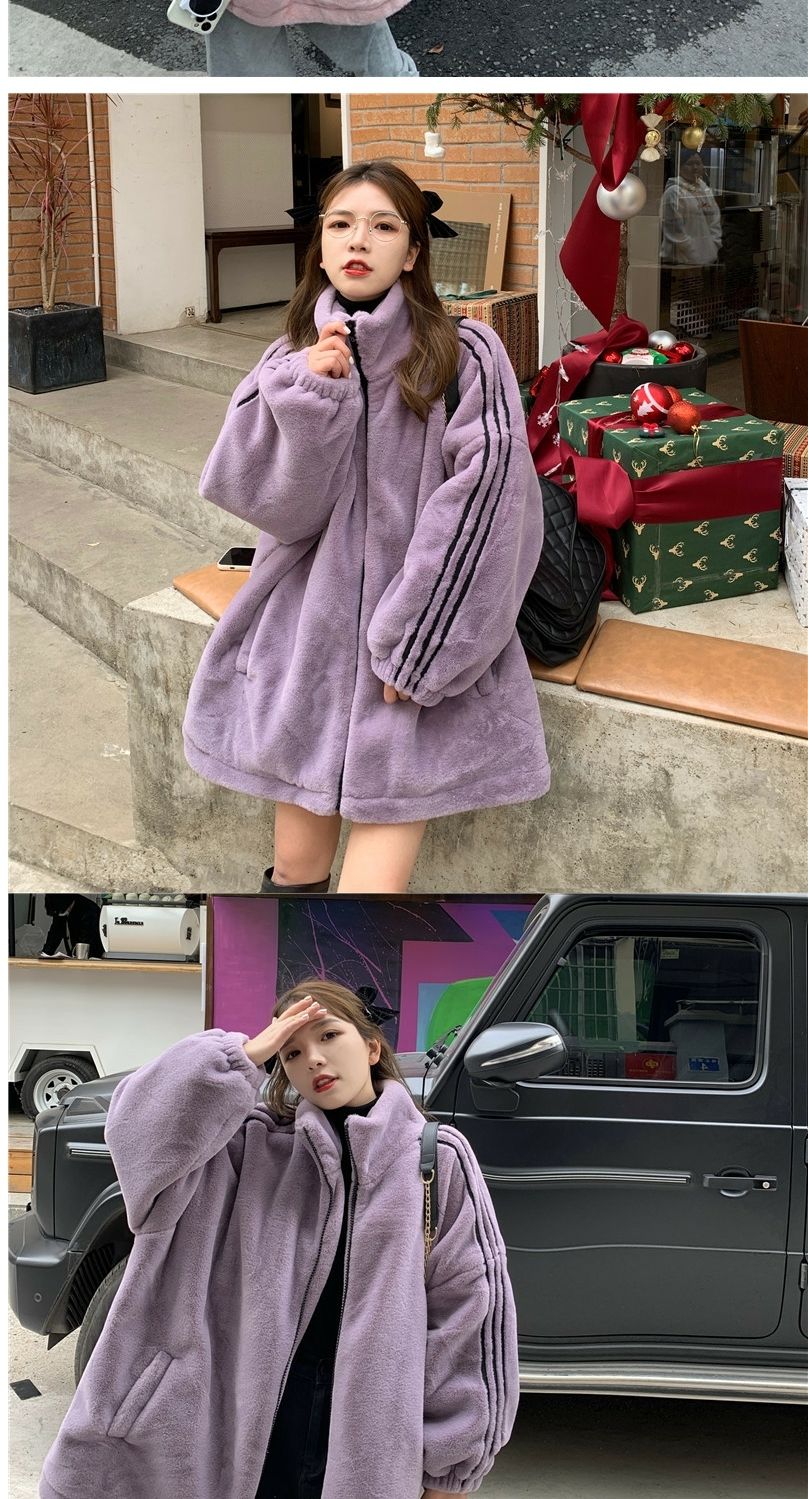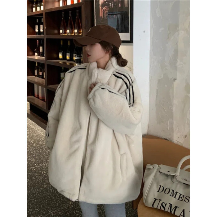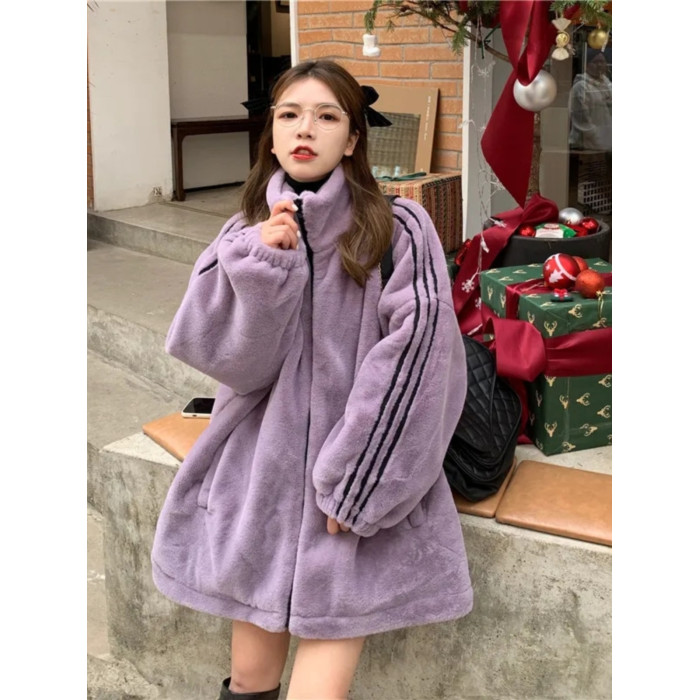 胖mm300斤大碼加絨羊羔毛立領棉服女秋冬寬松慵懶風百搭保暖外套