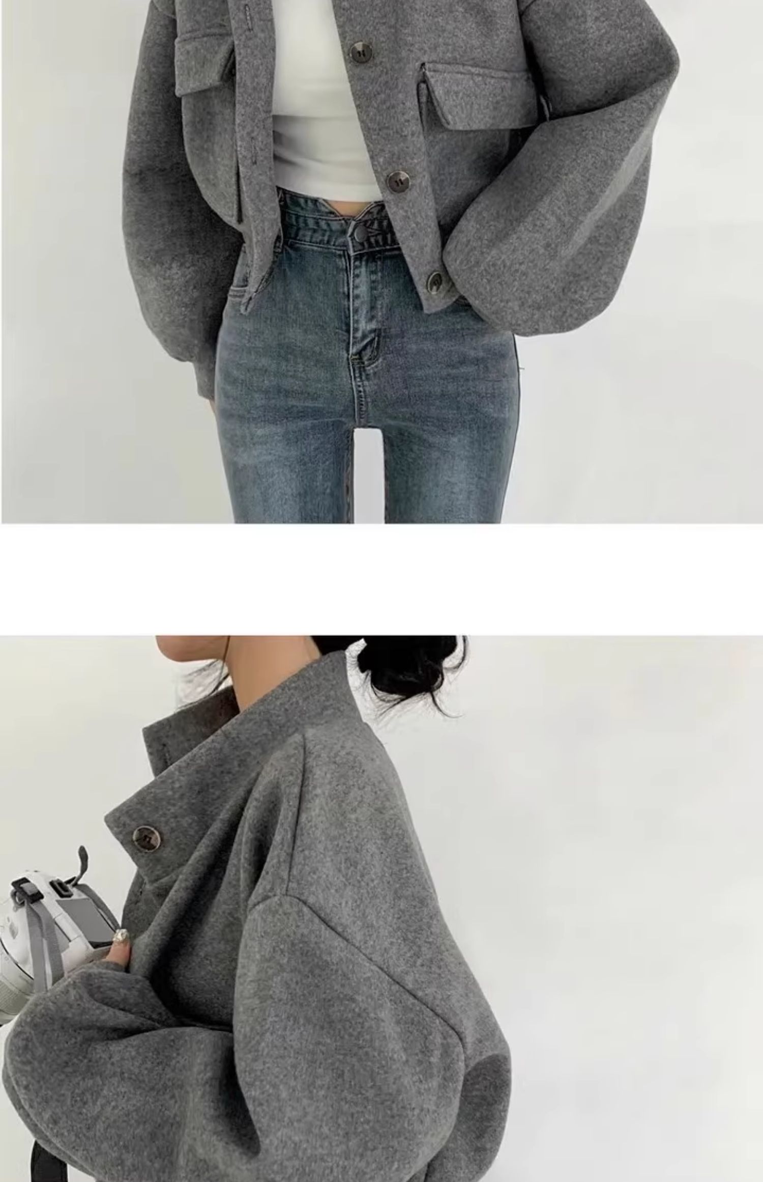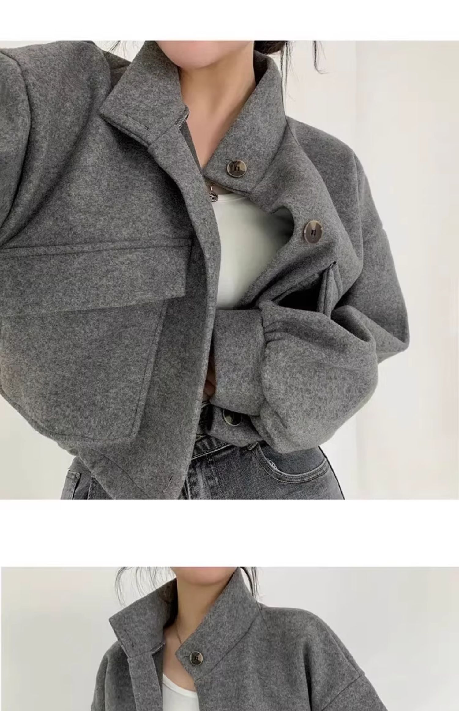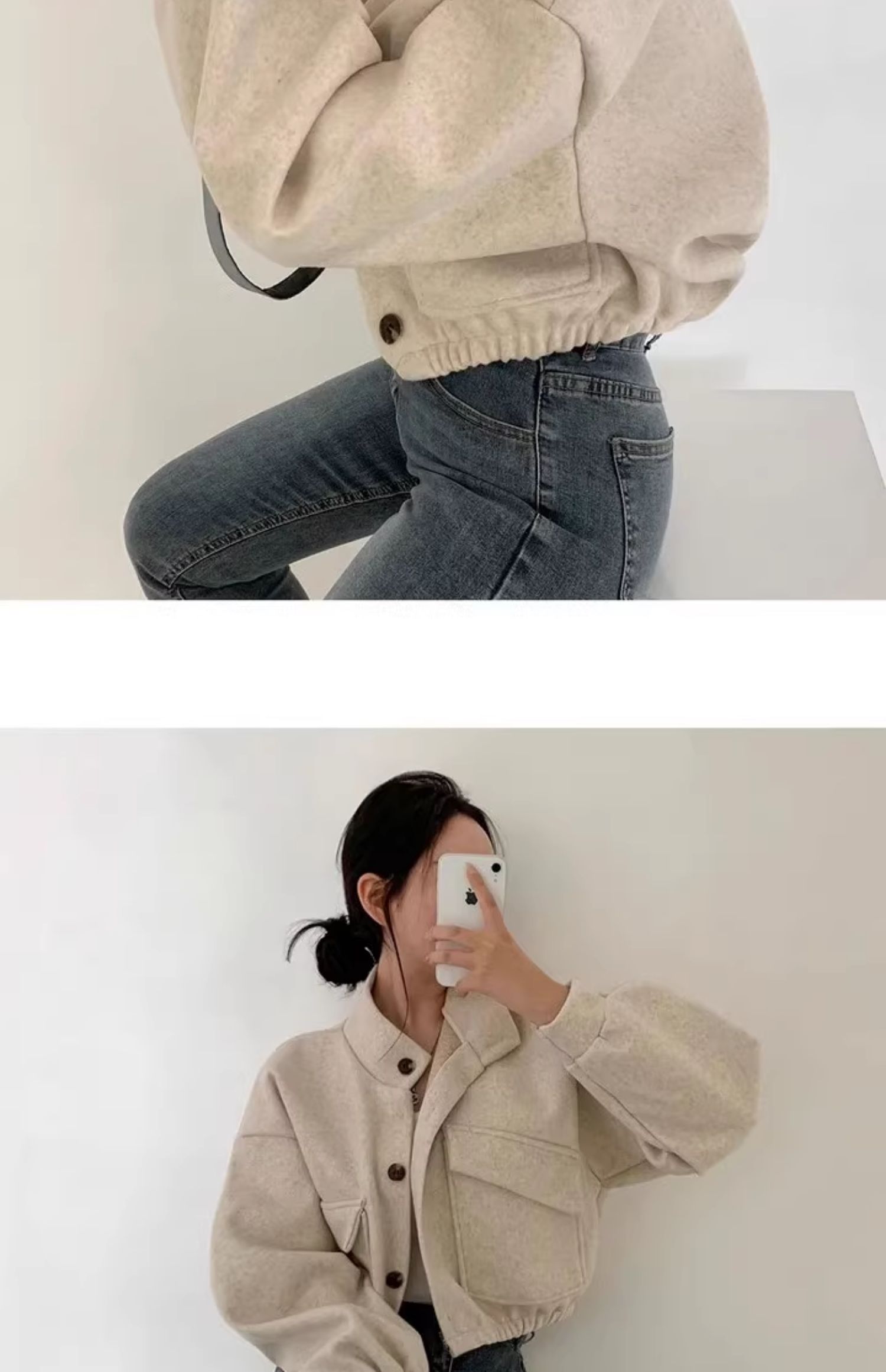 韓國chic復古小衆短款外套女秋冬立領單排釦寬松休閒百搭毛呢上衣