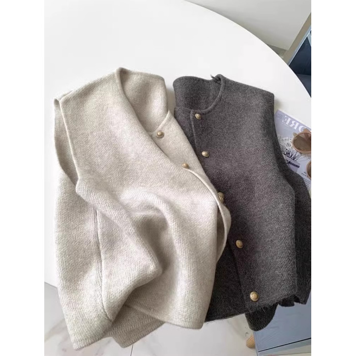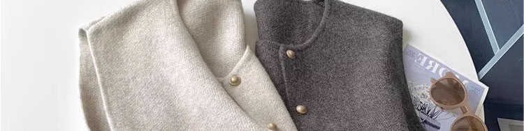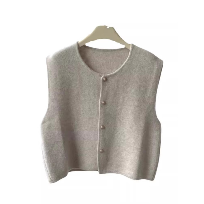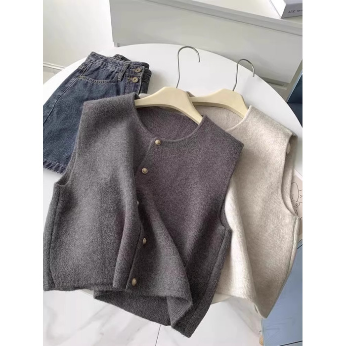 小香風灰色針織背心馬甲女秋冬外穿坎肩圓領開衫小個子曡穿馬夾