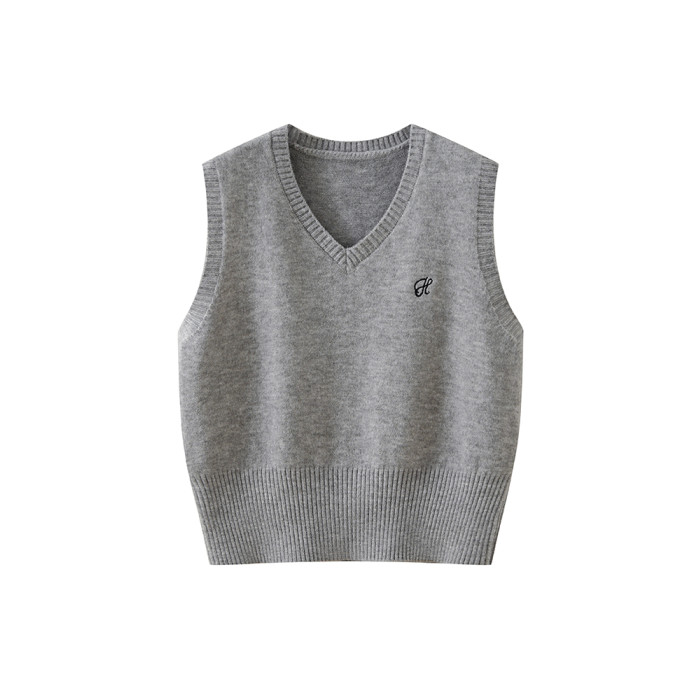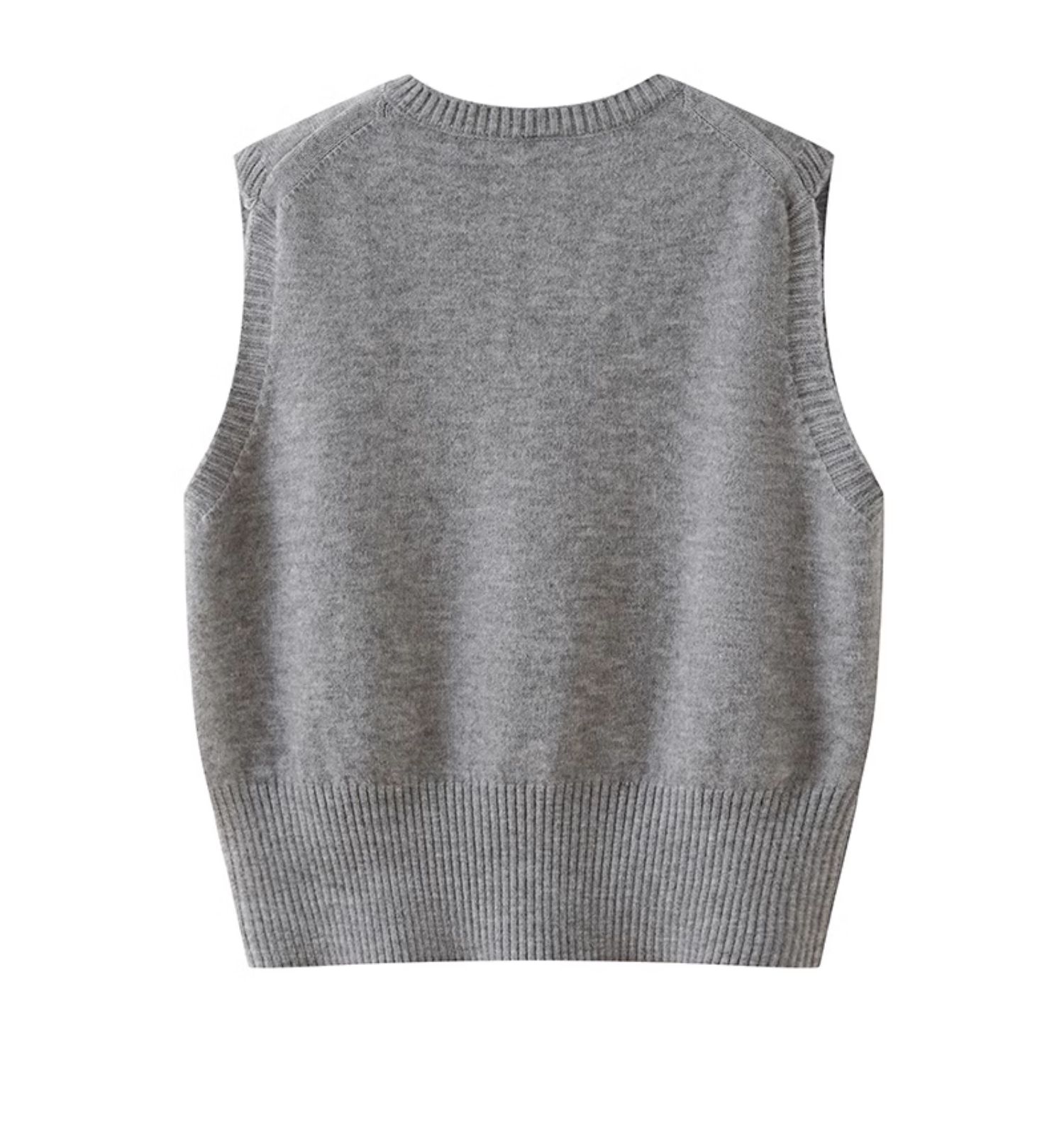 灰色V領針織毛衣馬甲女2025新款春秋季外搭曡穿無袖短款背心馬夾