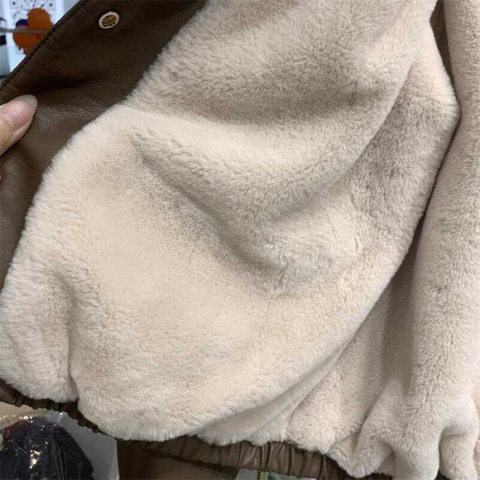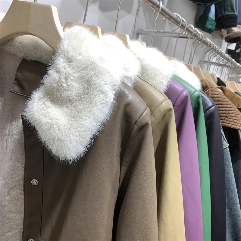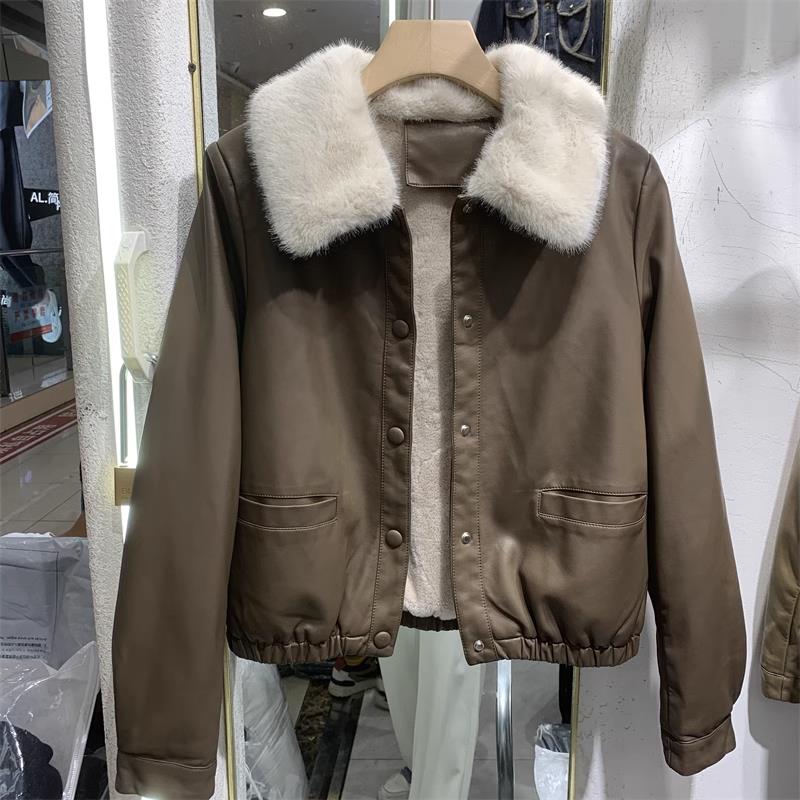 可拆卸毛領加絨皮衣外套女PU皮加厚夾克秋冬加厚小個子短款上衣女