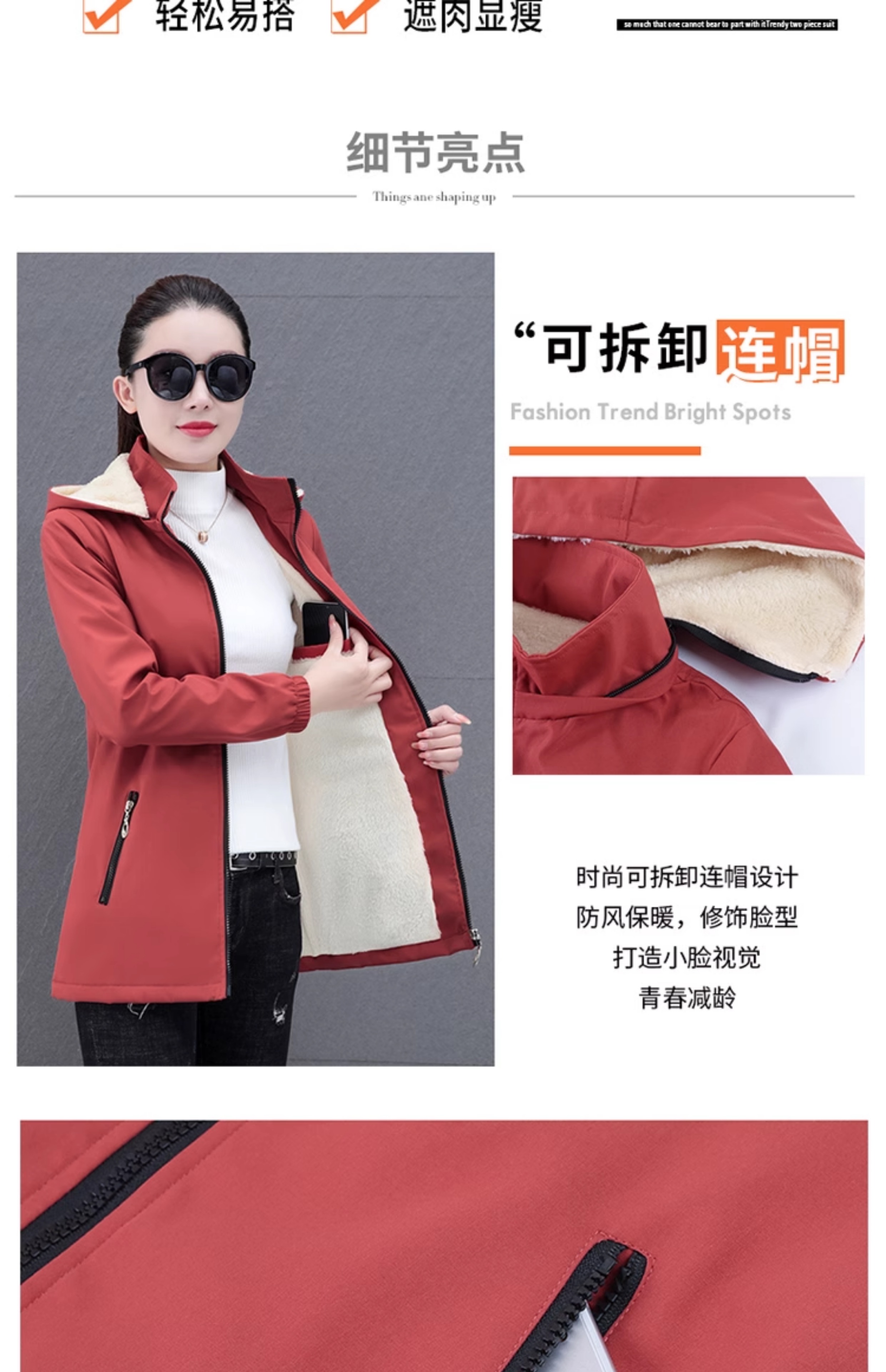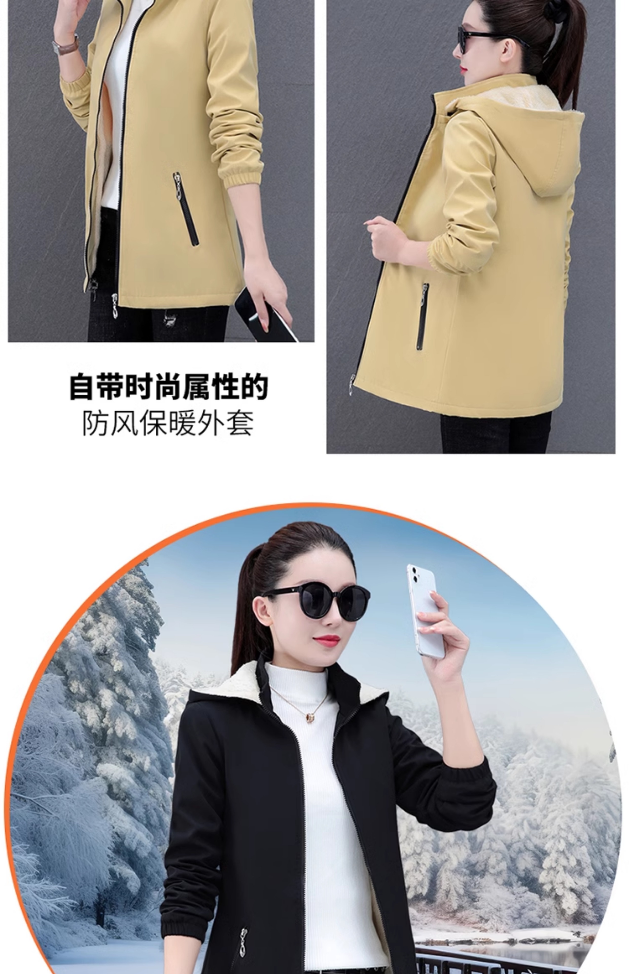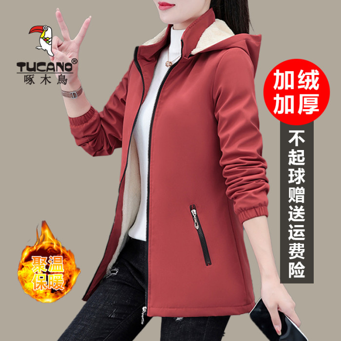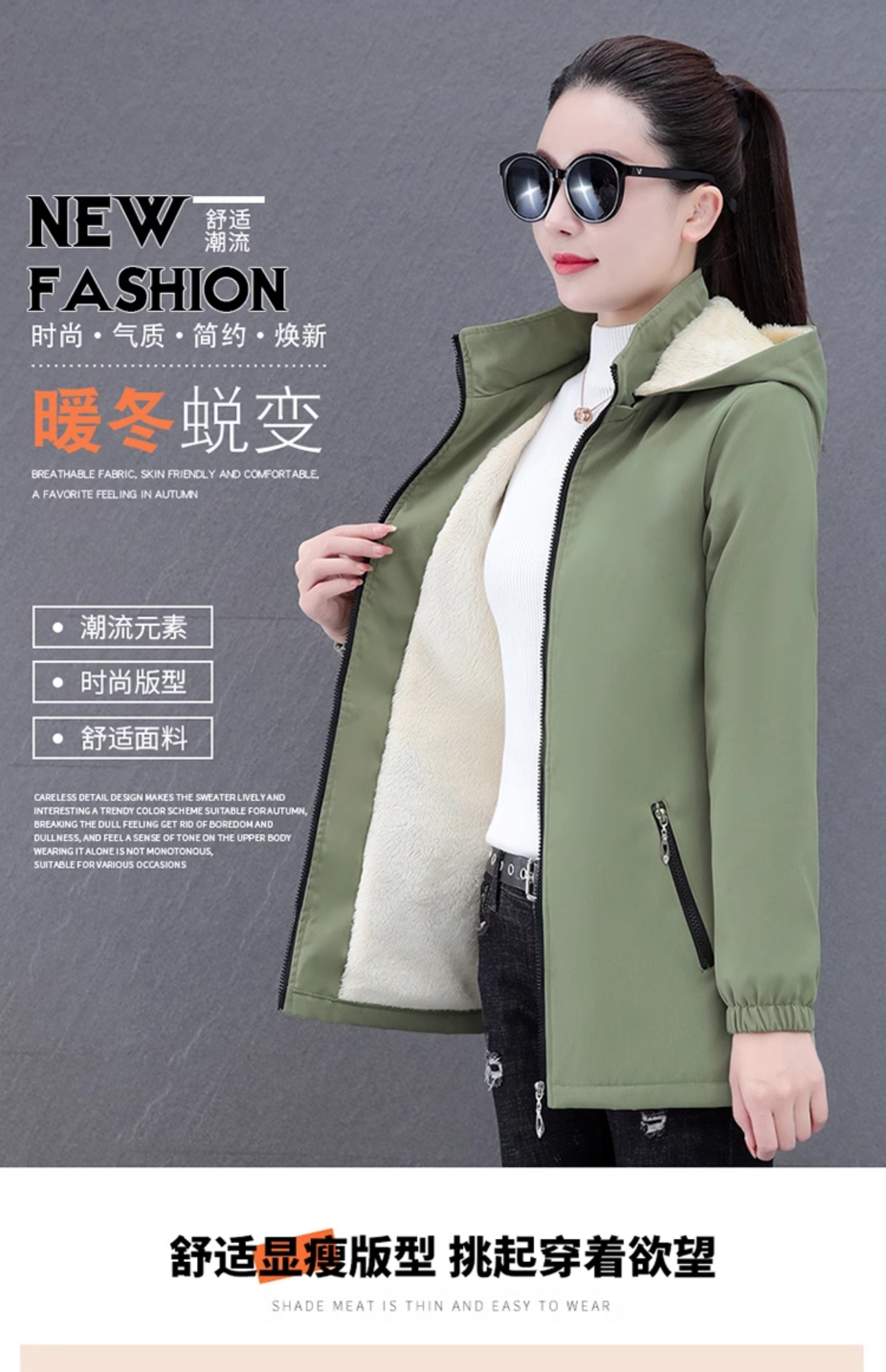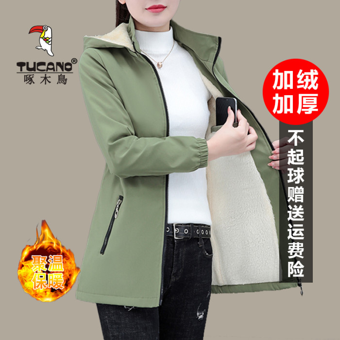 啄木鳥加絨加厚中長款外套女2024年新款秋冬休閒保暖大碼風衣上衣