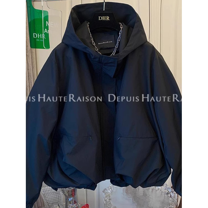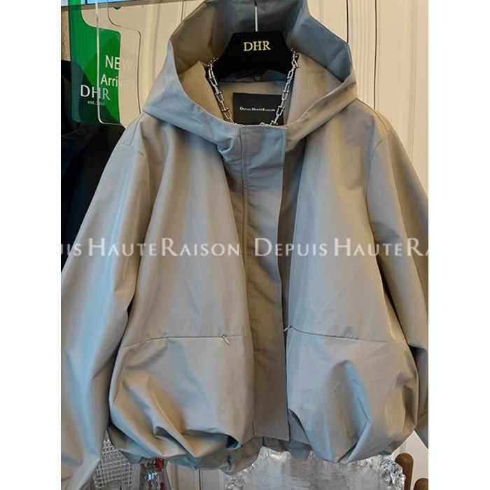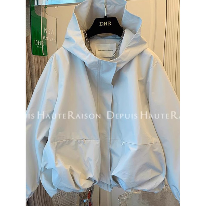 2025春秋季新款女士獨特洋氣休閒風衣花苞短外套寬松沖鋒衣夾克服