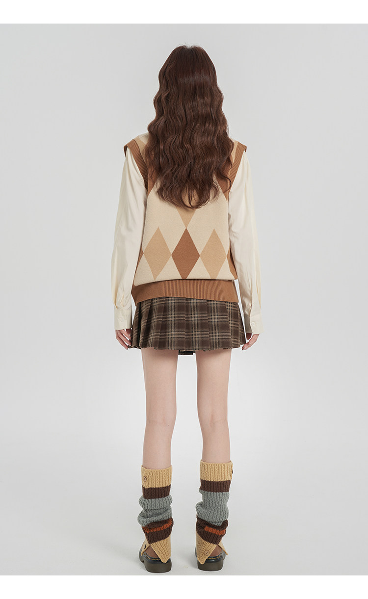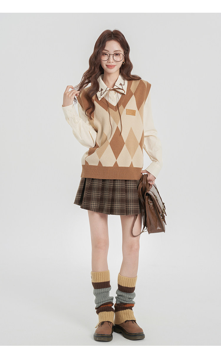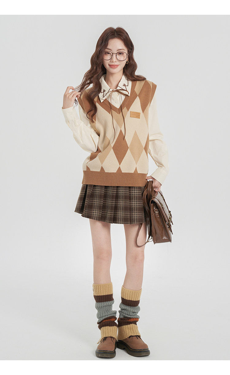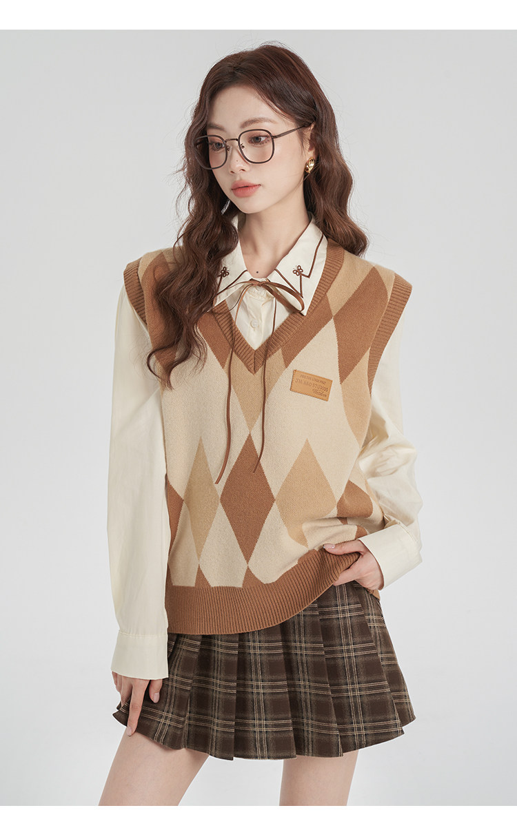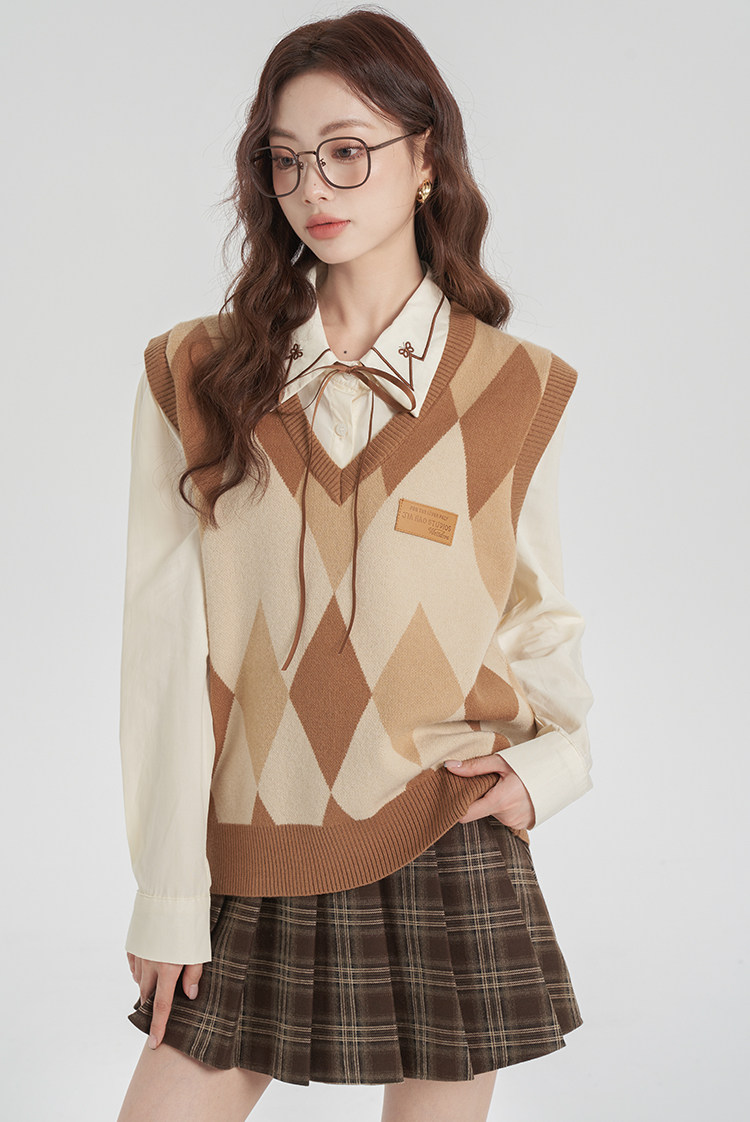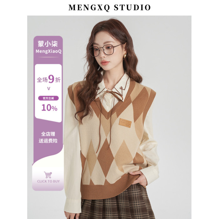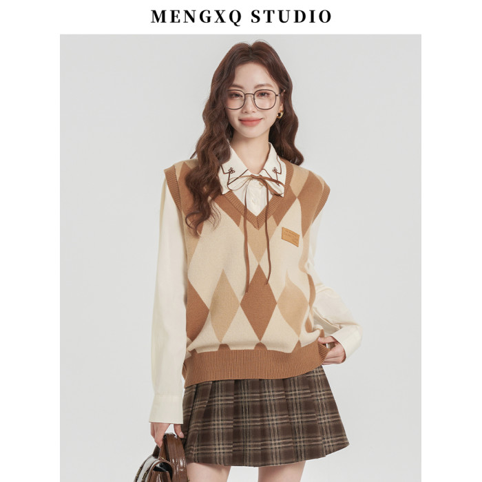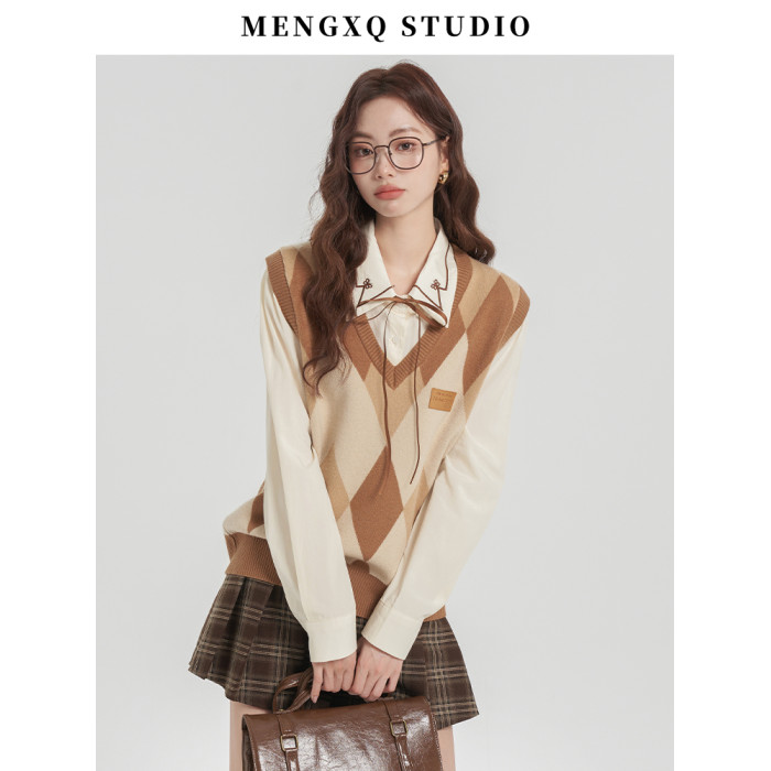 矇小柒學院風寬鬆針織馬甲女秋季毛衣馬夾上衣搭配襯衫美拉德穿搭