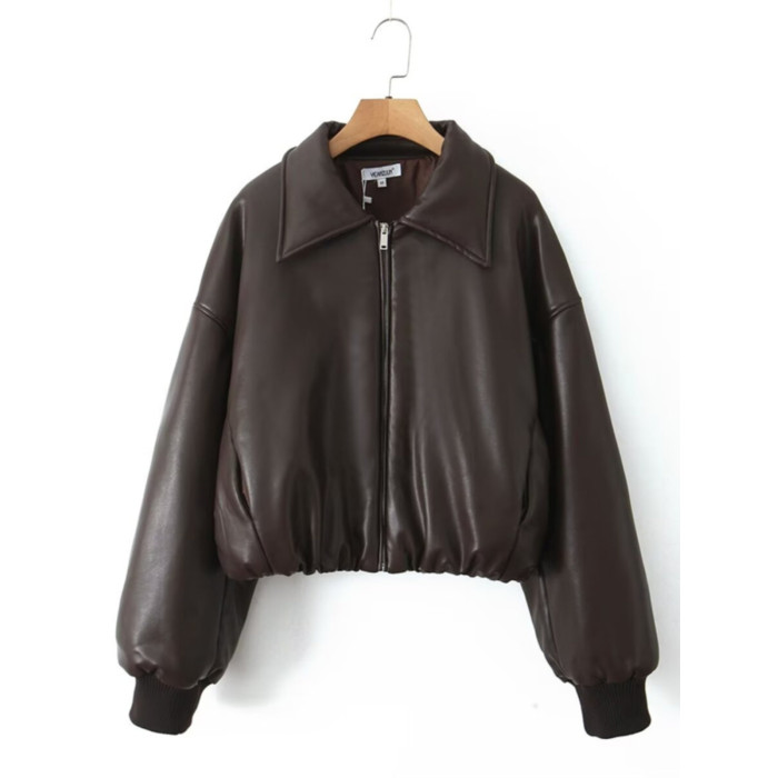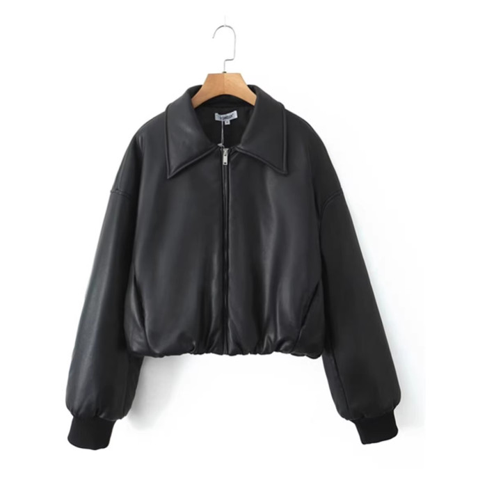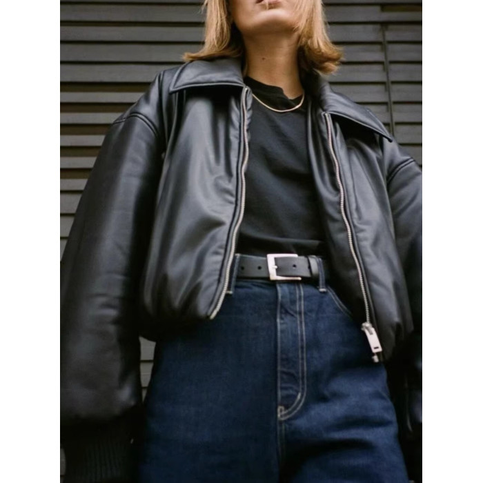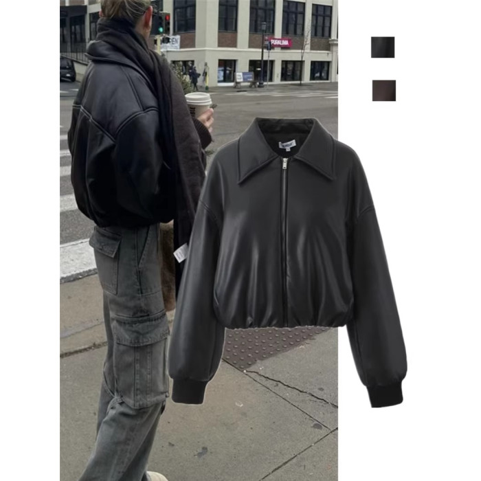 歐美復古麵包棉休閒風皮外套寬松大翻領夾棉機車飛行小衆顯瘦夾克