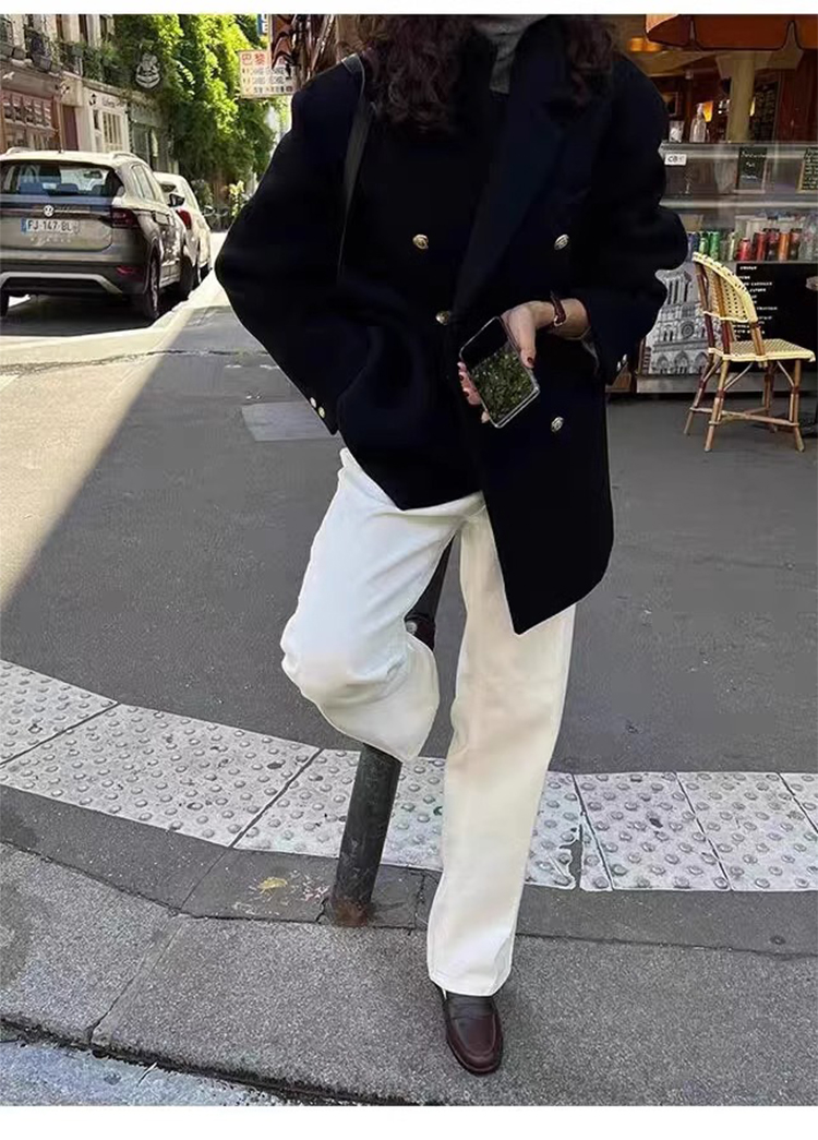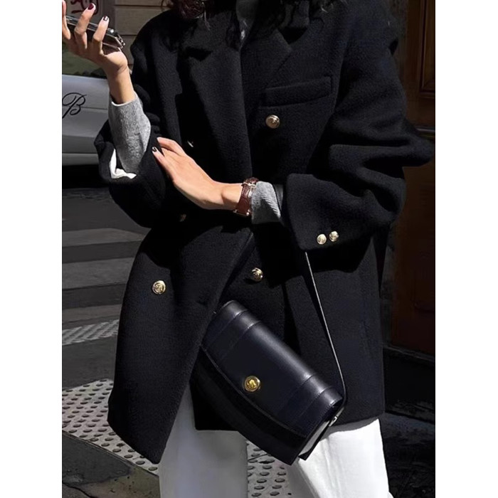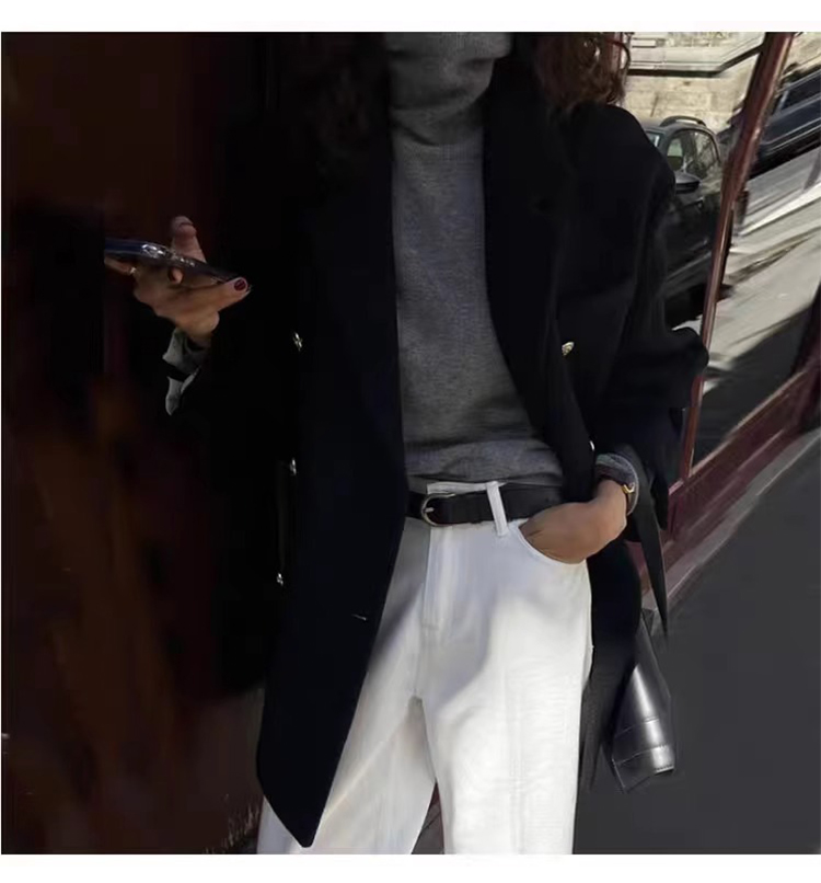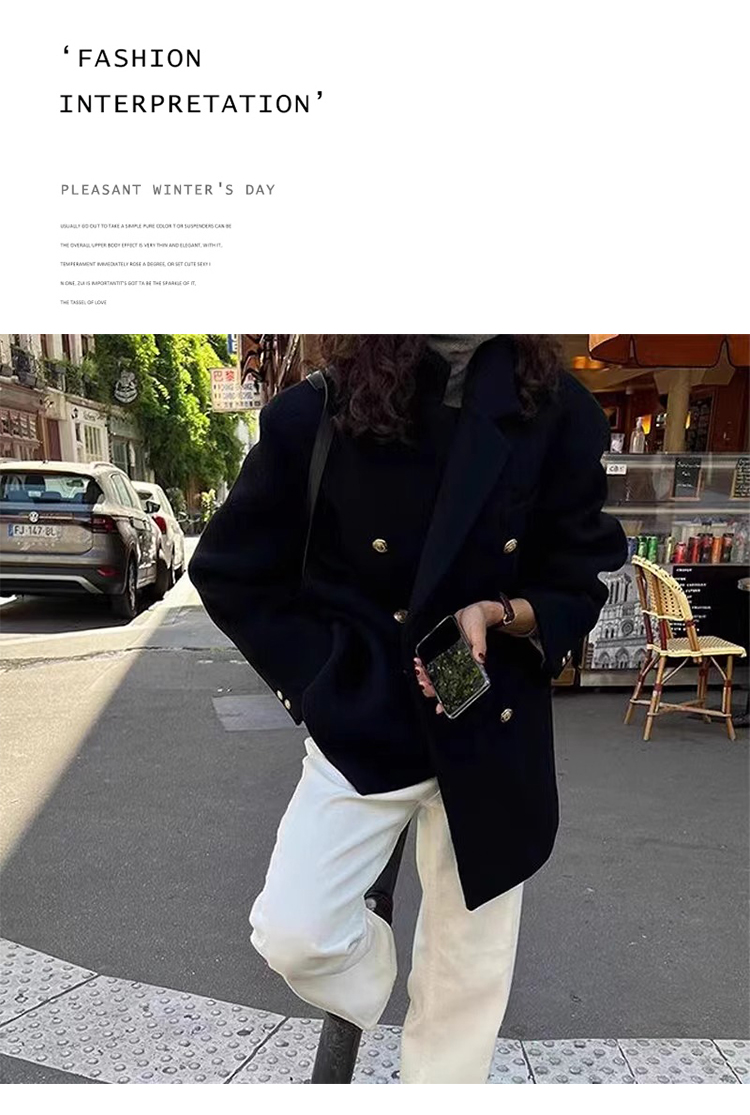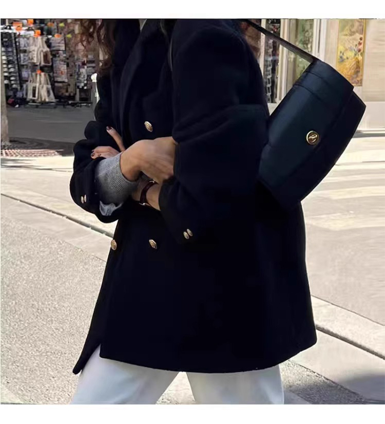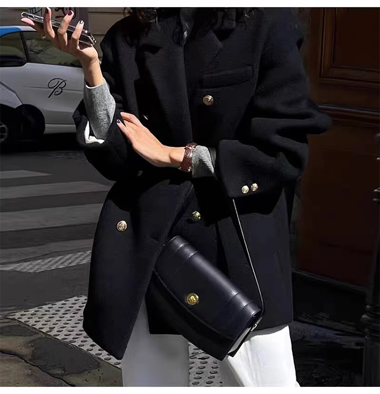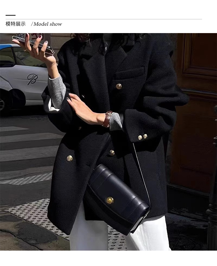高級感黑色呢子大衣秋冬季2025新款韓版小個子西裝毛呢外套女加厚