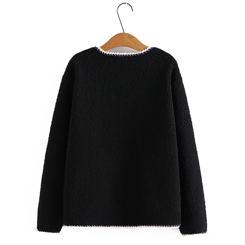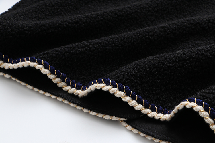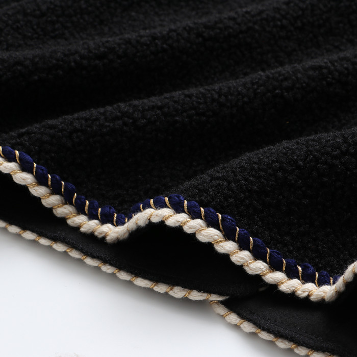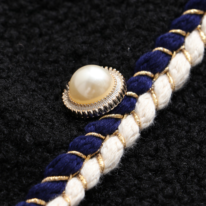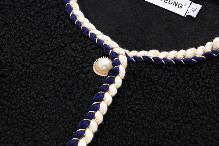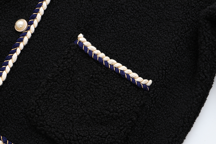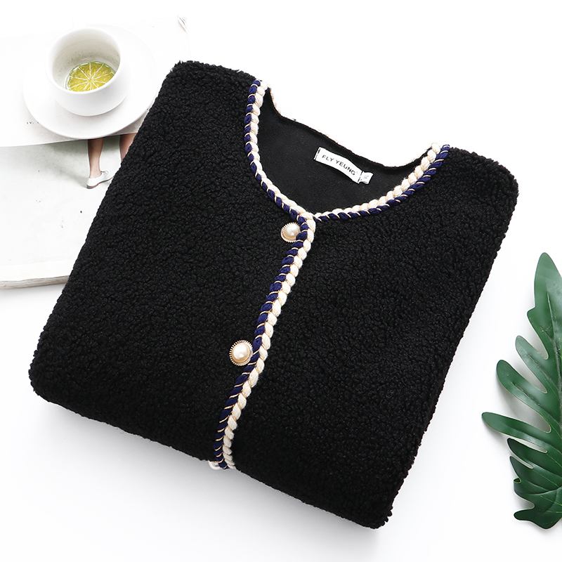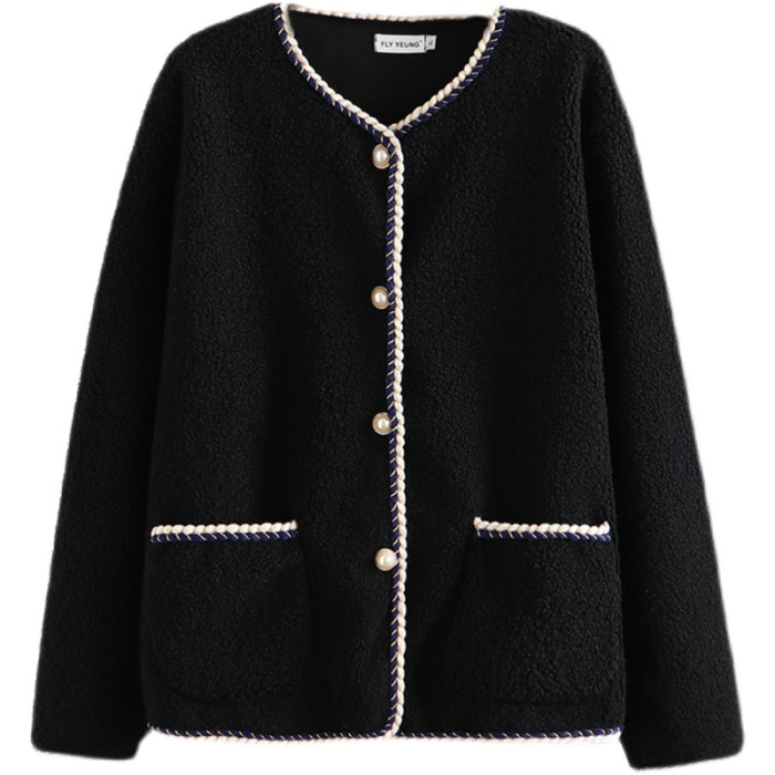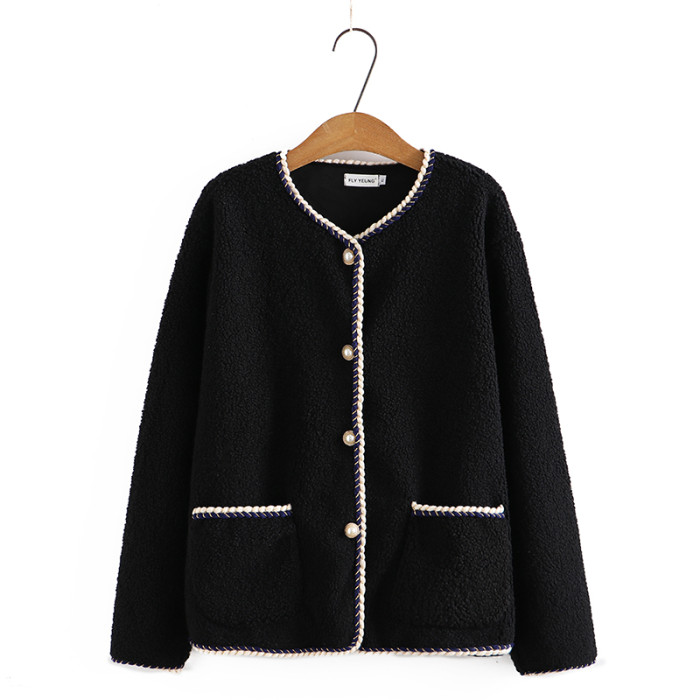 2023秋冬季韓版新款大碼時尚上衣復古小香風鑲邊珍珠釦黑色外套潮