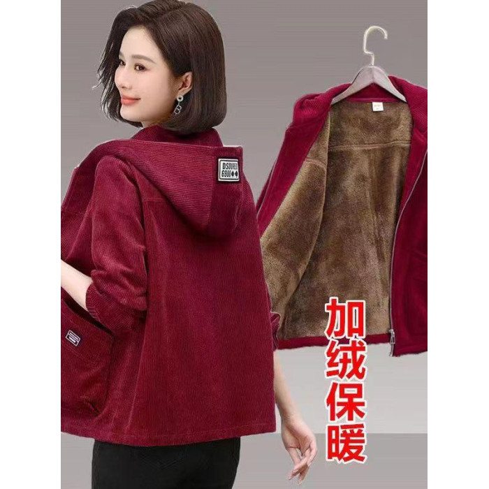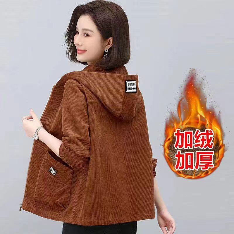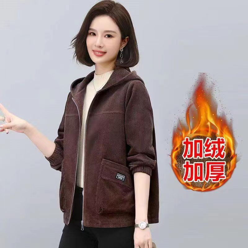 2025秋冬裝短款外套女士加絨加厚時尚洋氣小個子大碼寬松連帽上衣