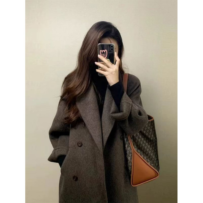 雙面呢大衣女小個子2025秋冬新款高級感羽絨內膽中長款呢子外套