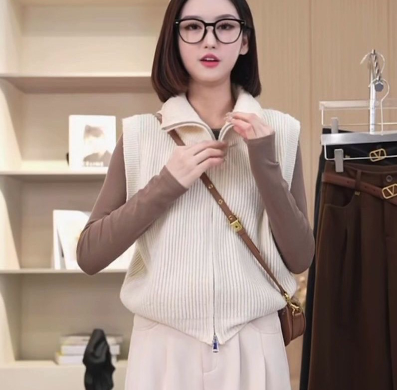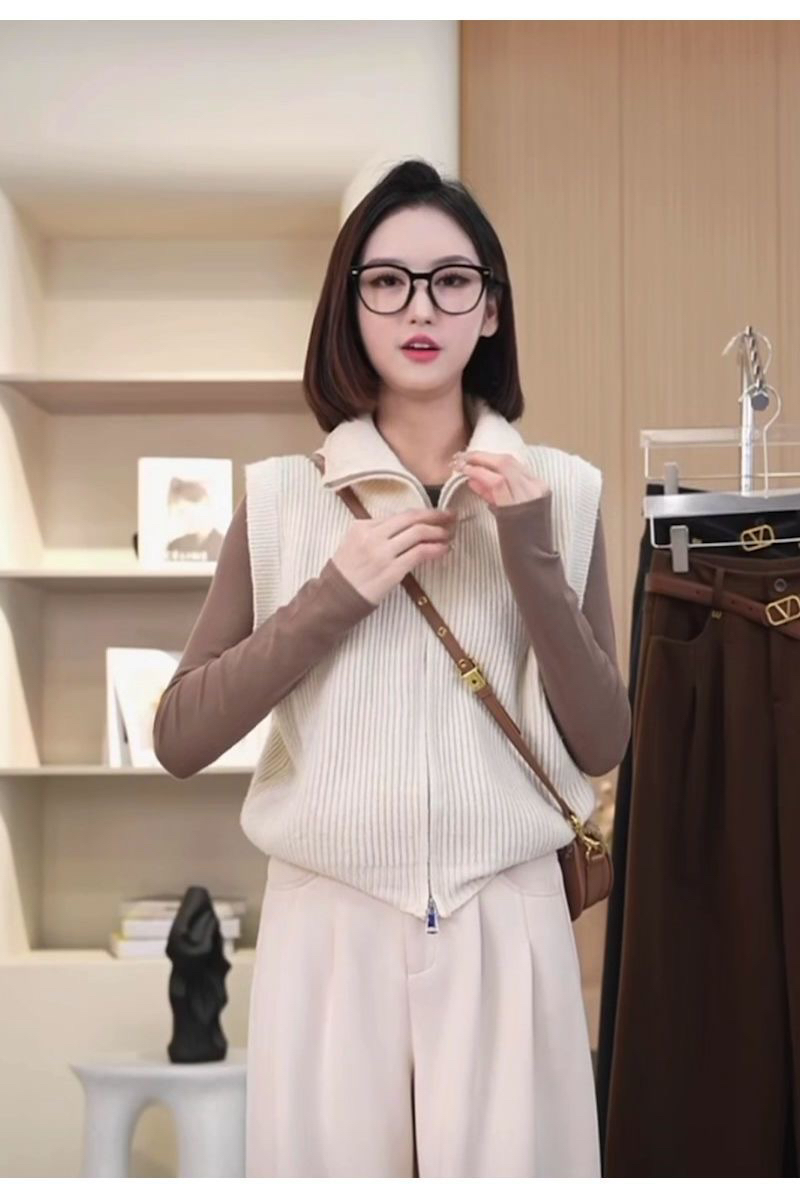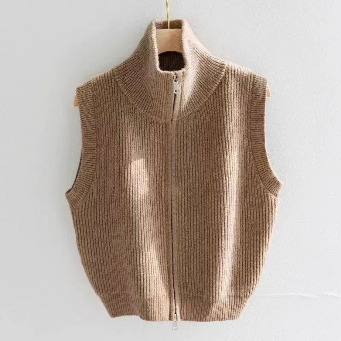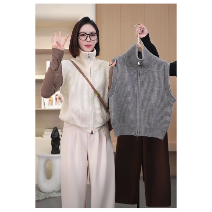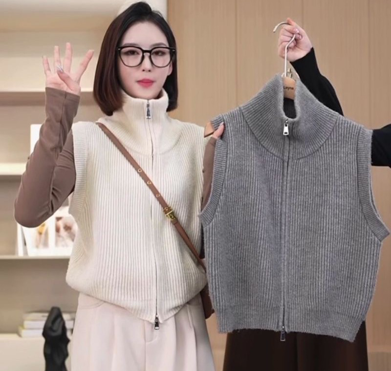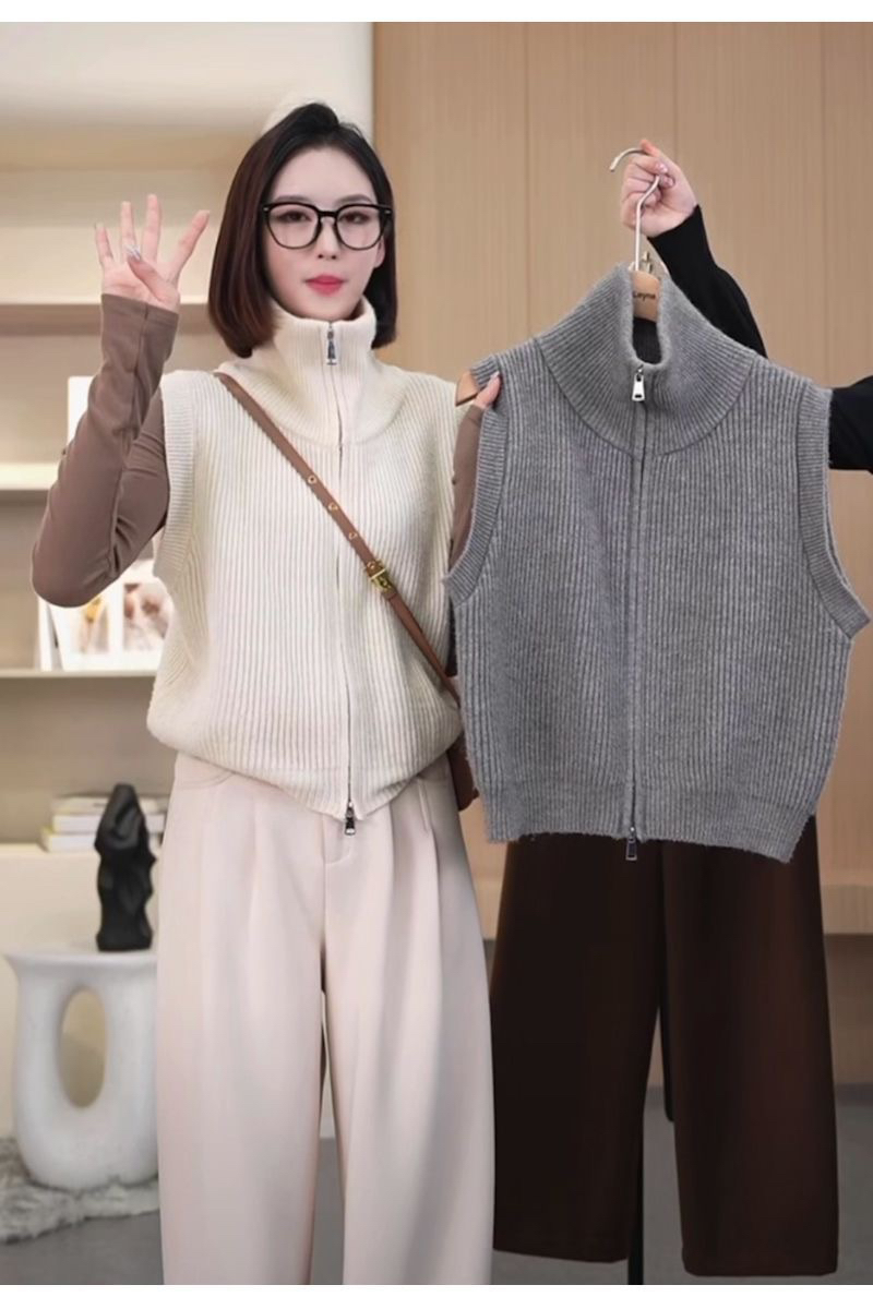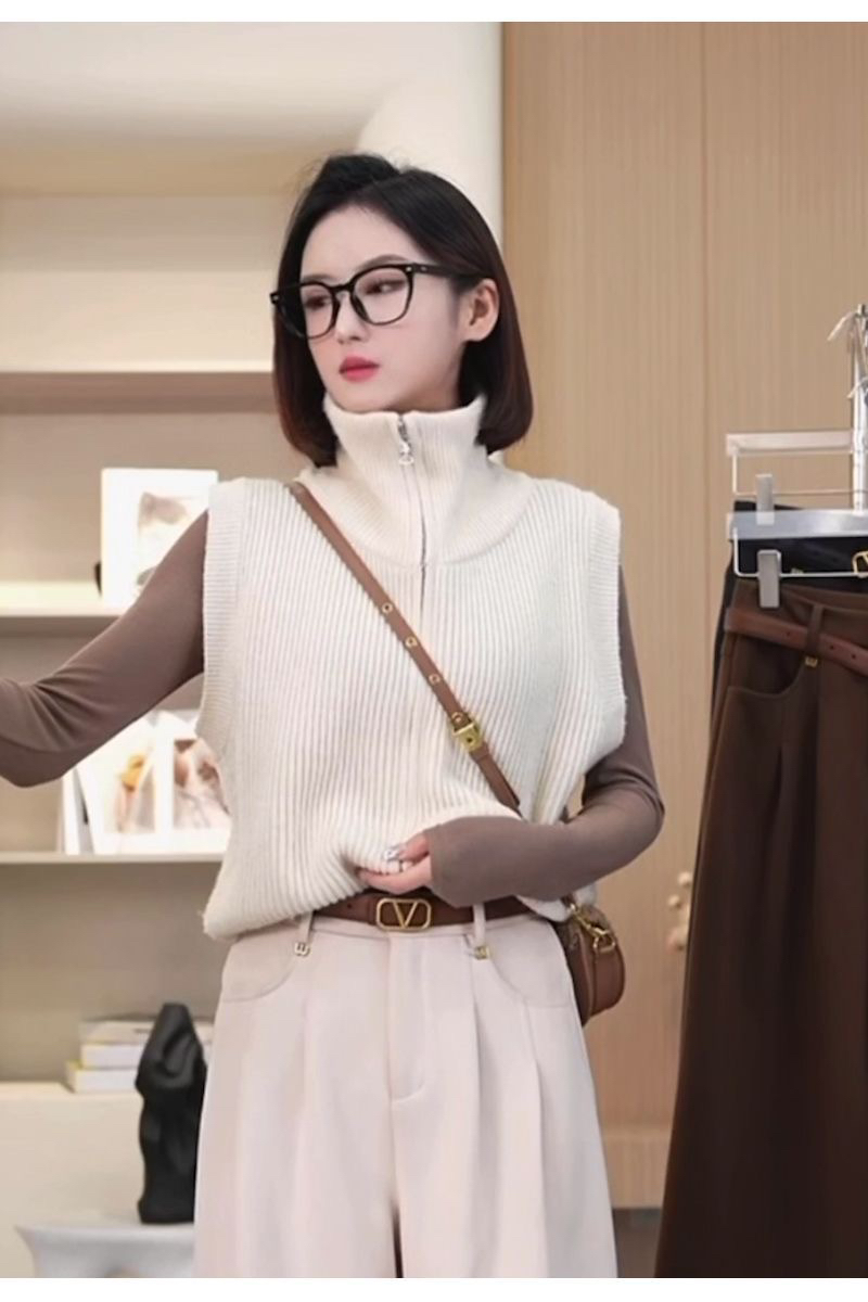 針織馬甲高領雙拉鍊舒適簡約初秋新款氣質百搭顯瘦打底衫背心上衣