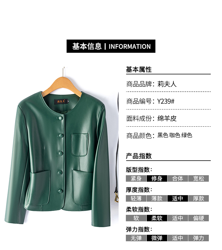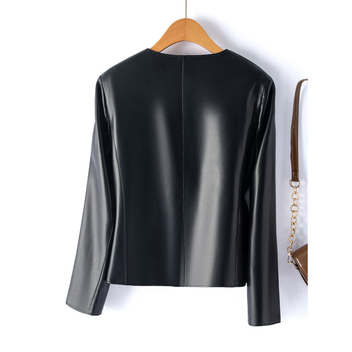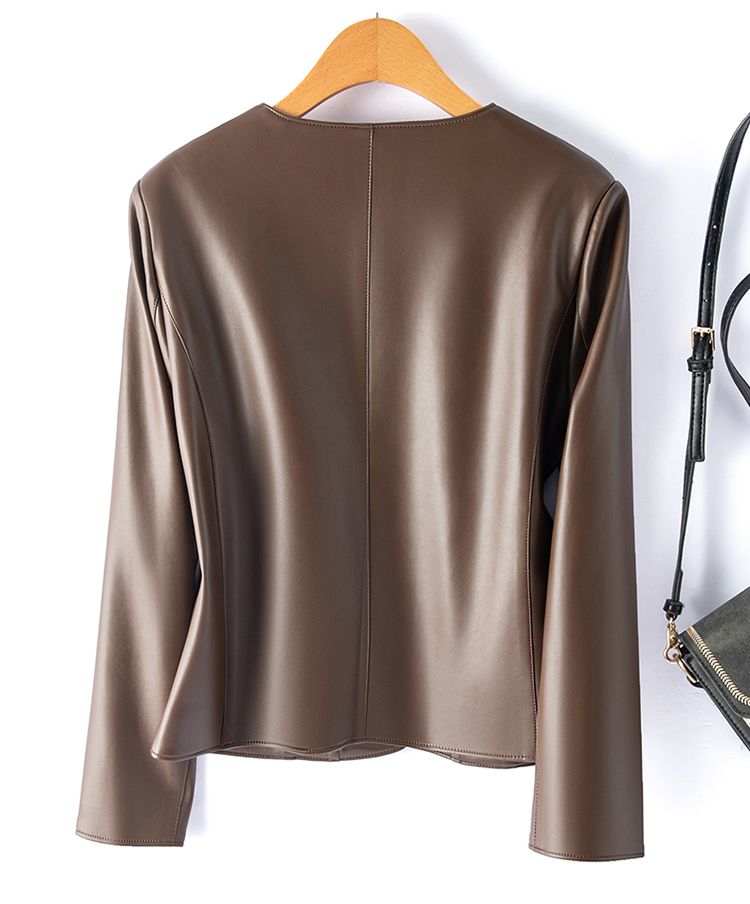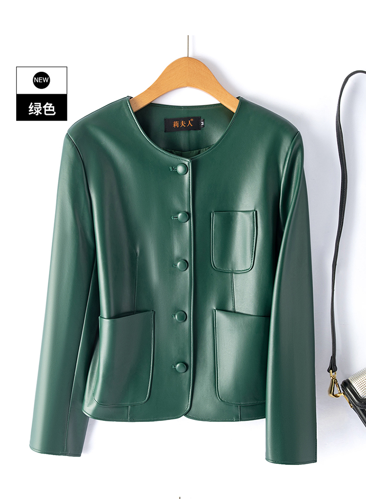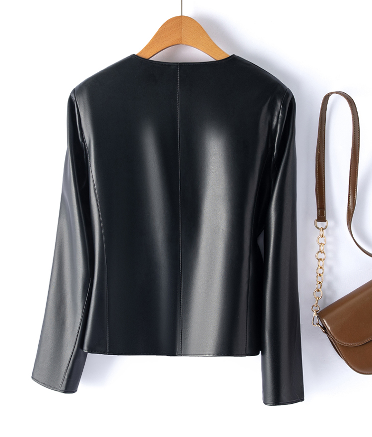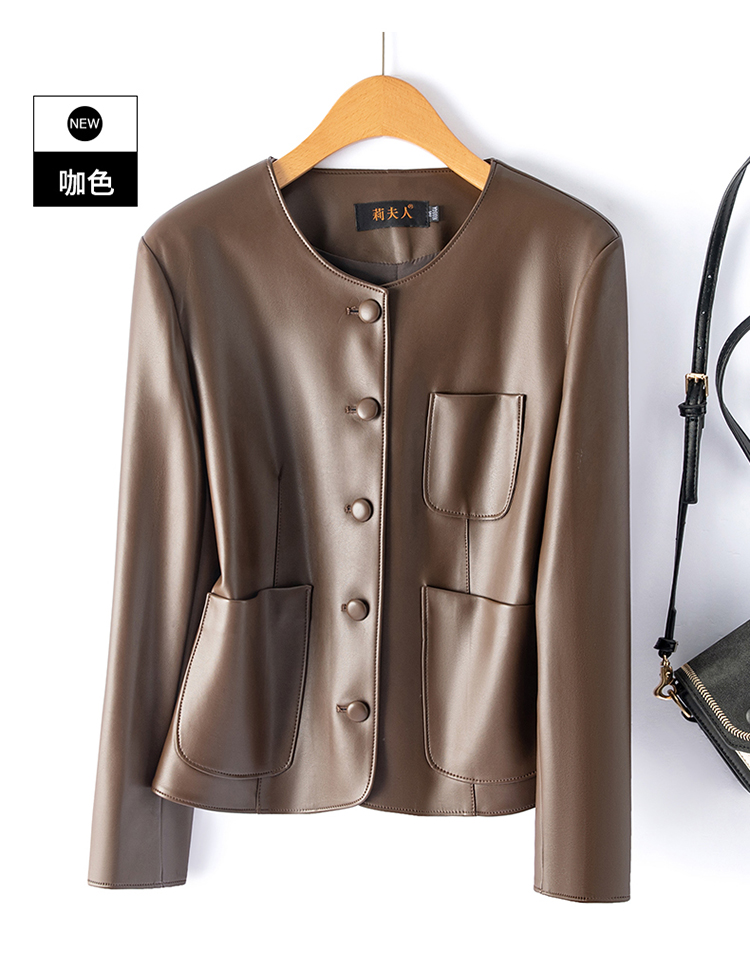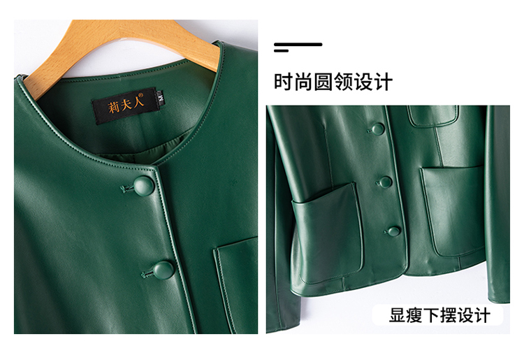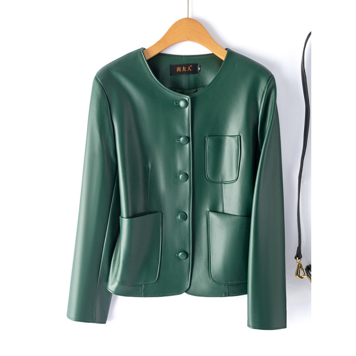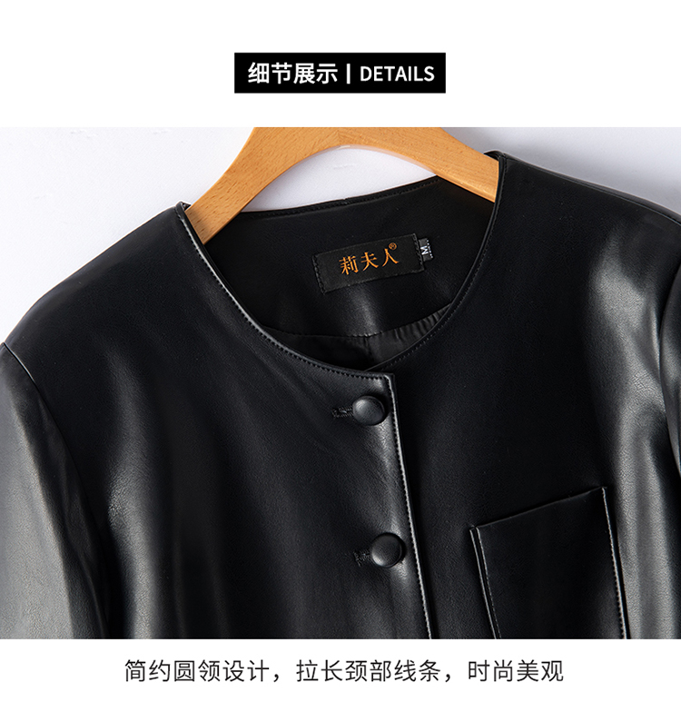 海甯真皮皮衣女短款單排釦皮夾克綿羊皮機車圓領百搭顯瘦時尚外套