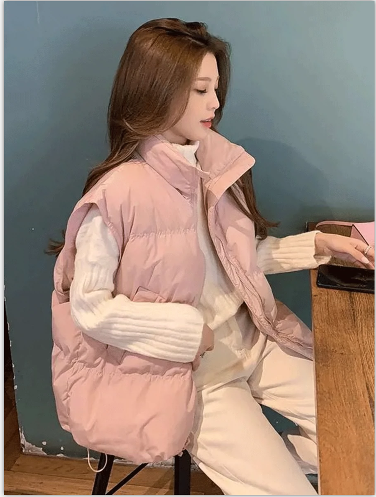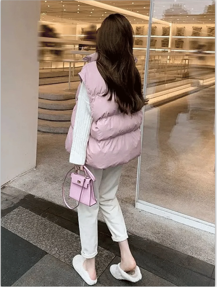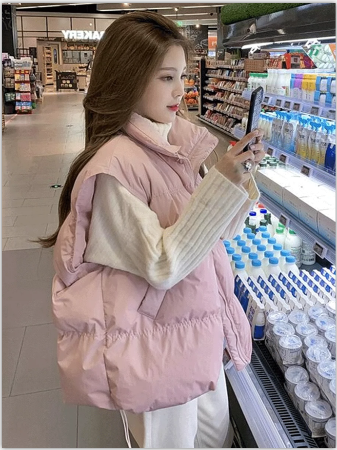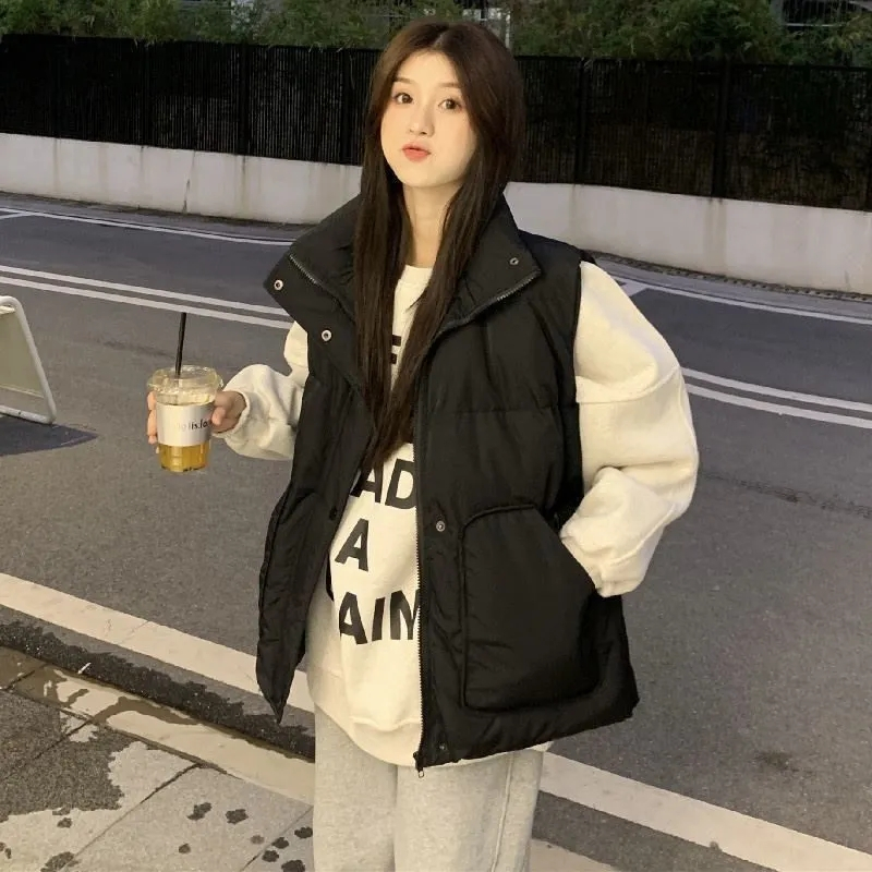 羽絨服馬甲女款2025秋冬新款韓版寬松棉坎肩立領純色棉服背心外套