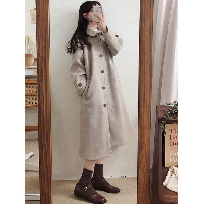 燕麥色呢子大衣女小個子2025新款秋冬季中長款氣質毛呢外套羽絨服