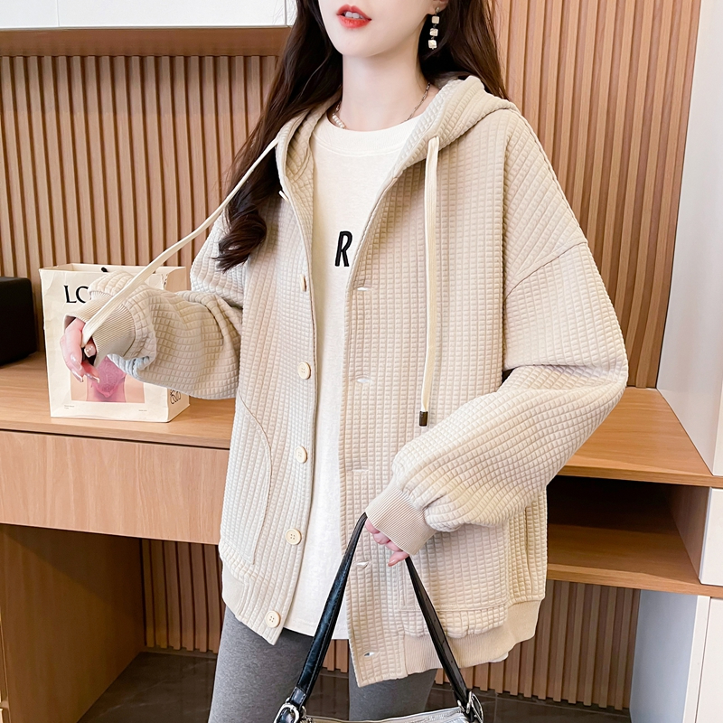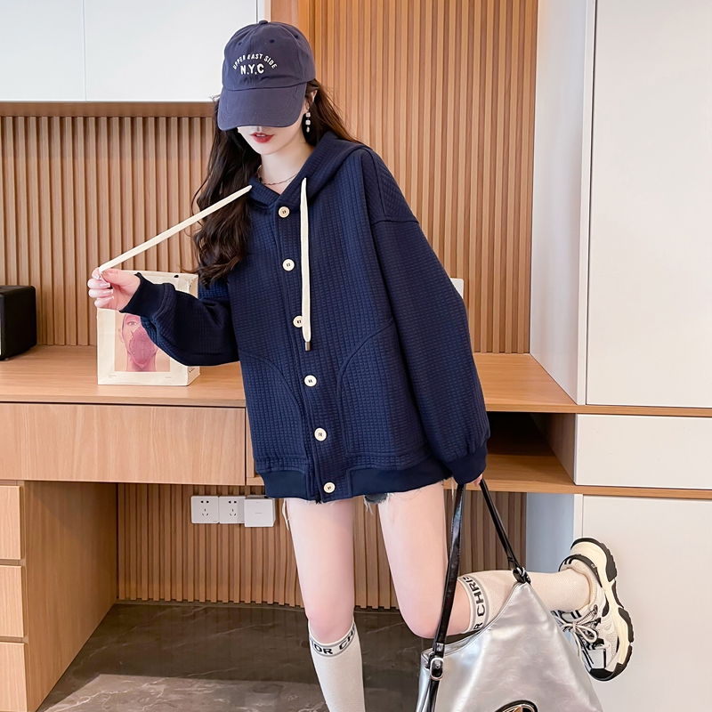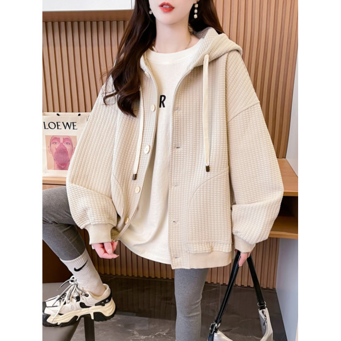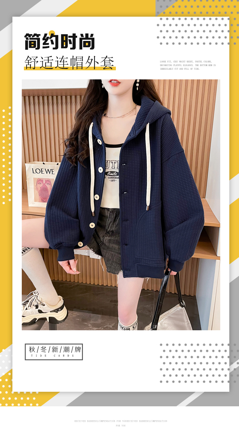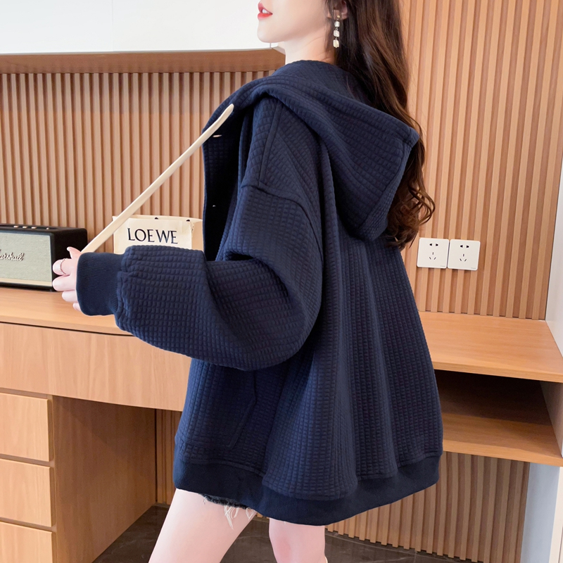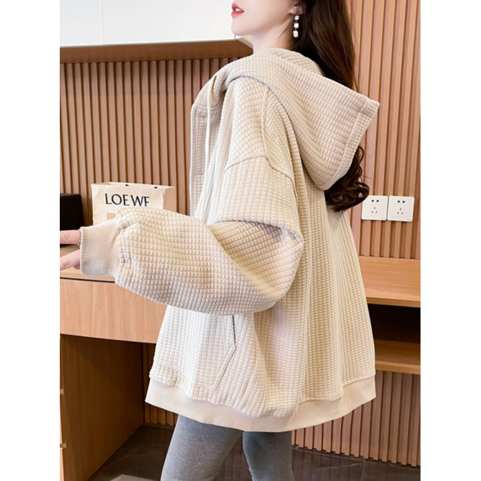 連帽衛衣外套女2025新款春秋季寬松大碼胖mm休閒百搭純色開衫上衣