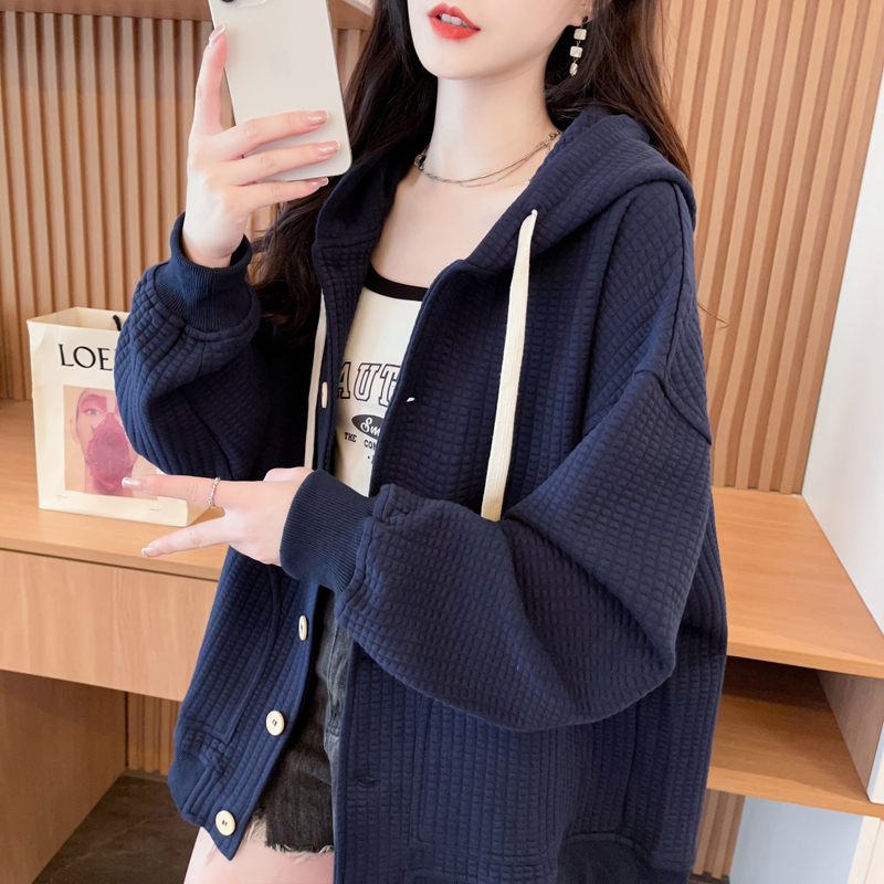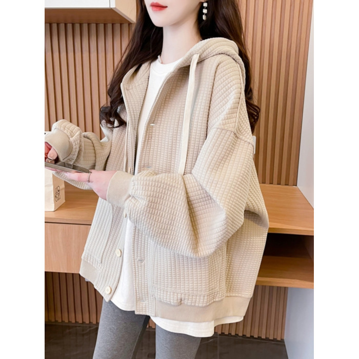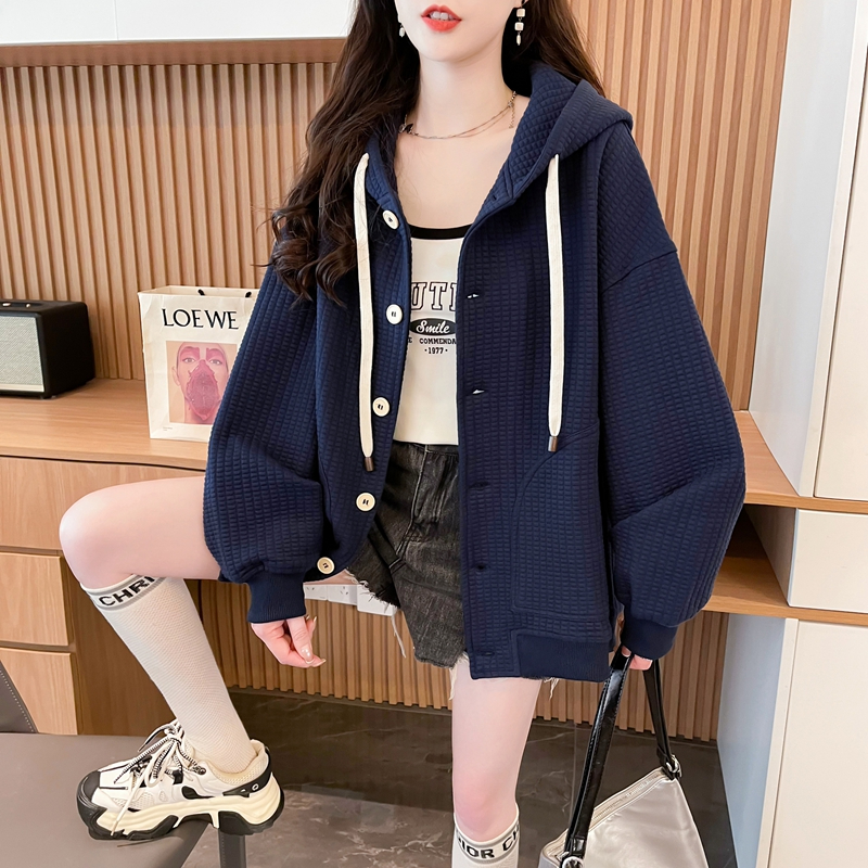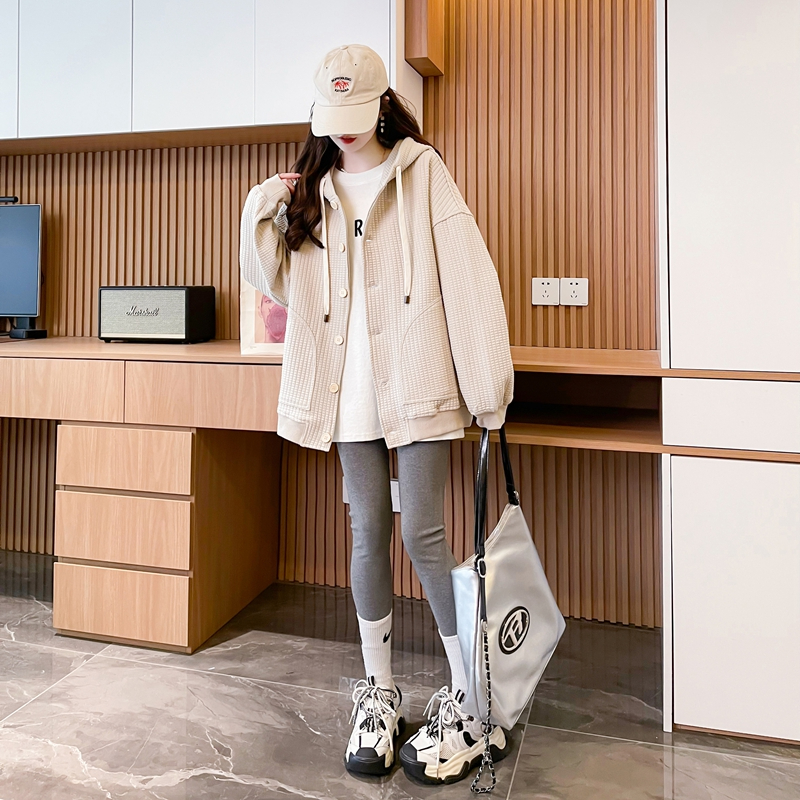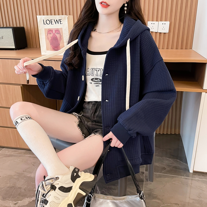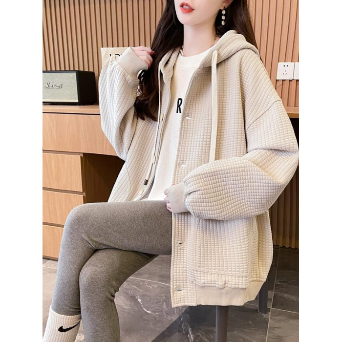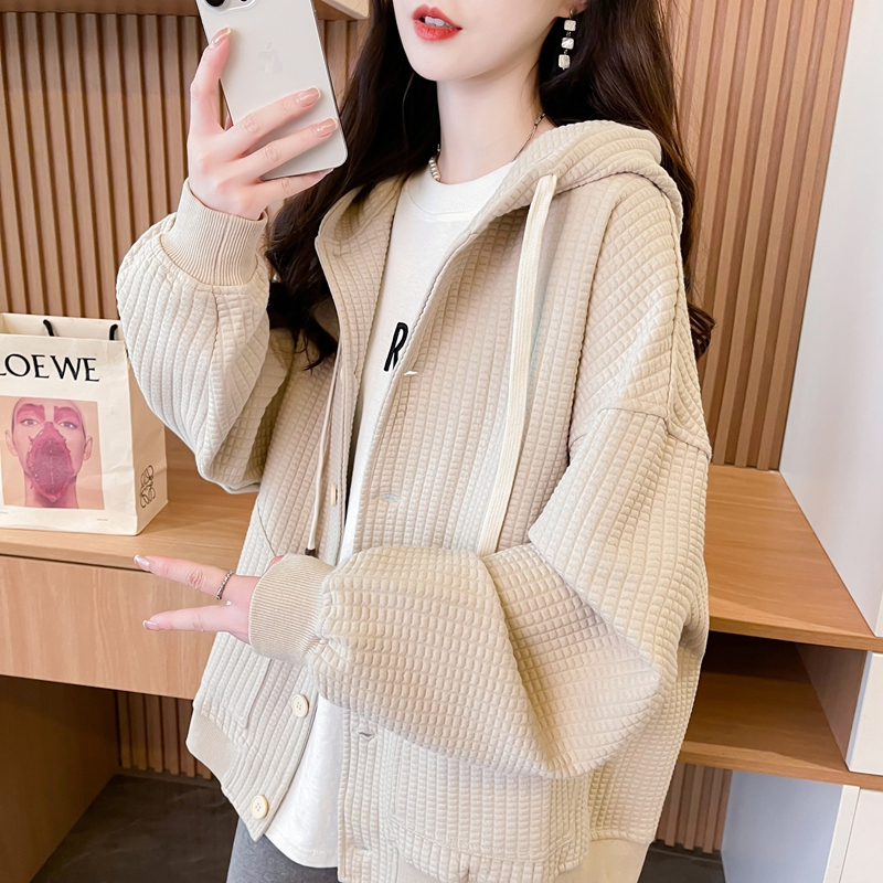 連帽衛衣外套女2025新款春秋季寬松大碼胖mm休閒百搭純色開衫上衣