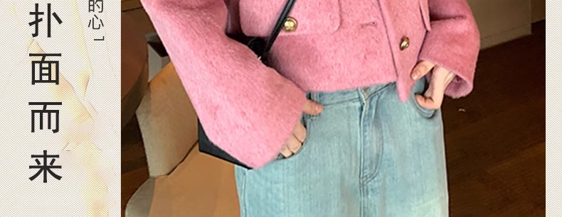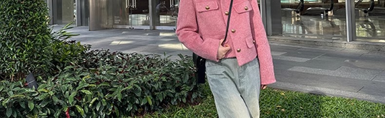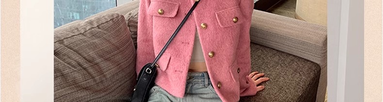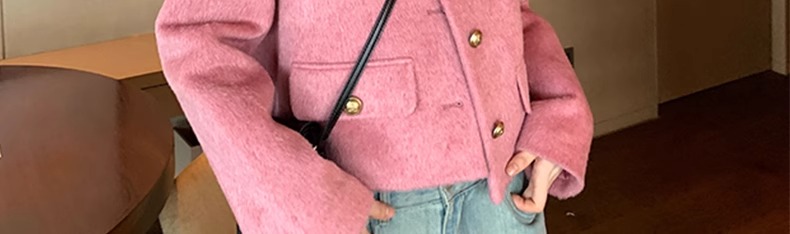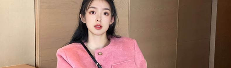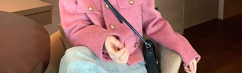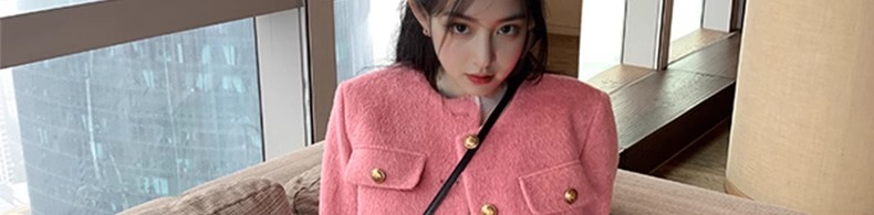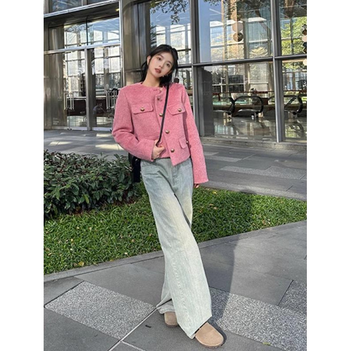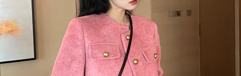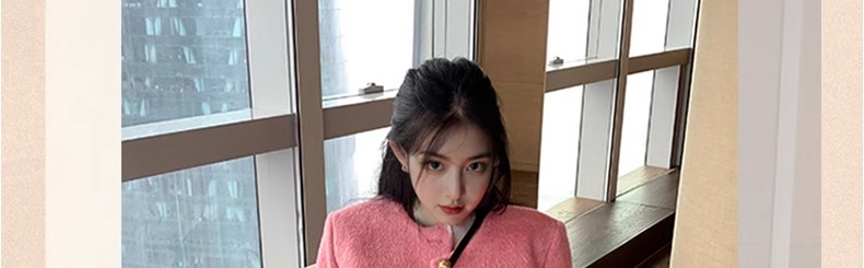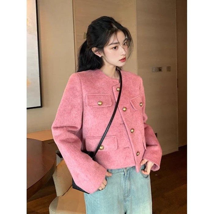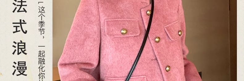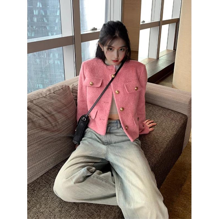 2025新款粉色小香風外套女秋冬小個子高級感法式名媛短款毛呢上衣