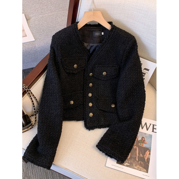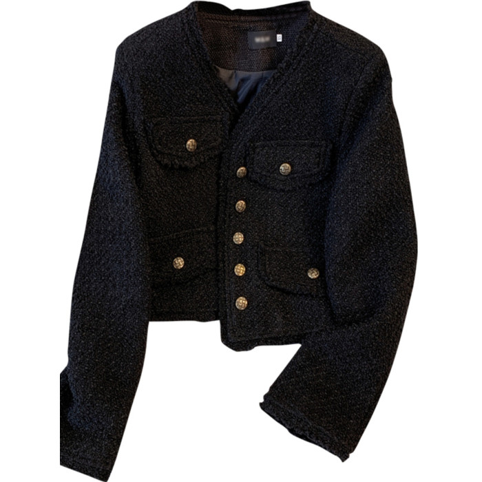 黑色小香風外套女春秋款新款2025年法式氣質名媛早春短款修身上衣
