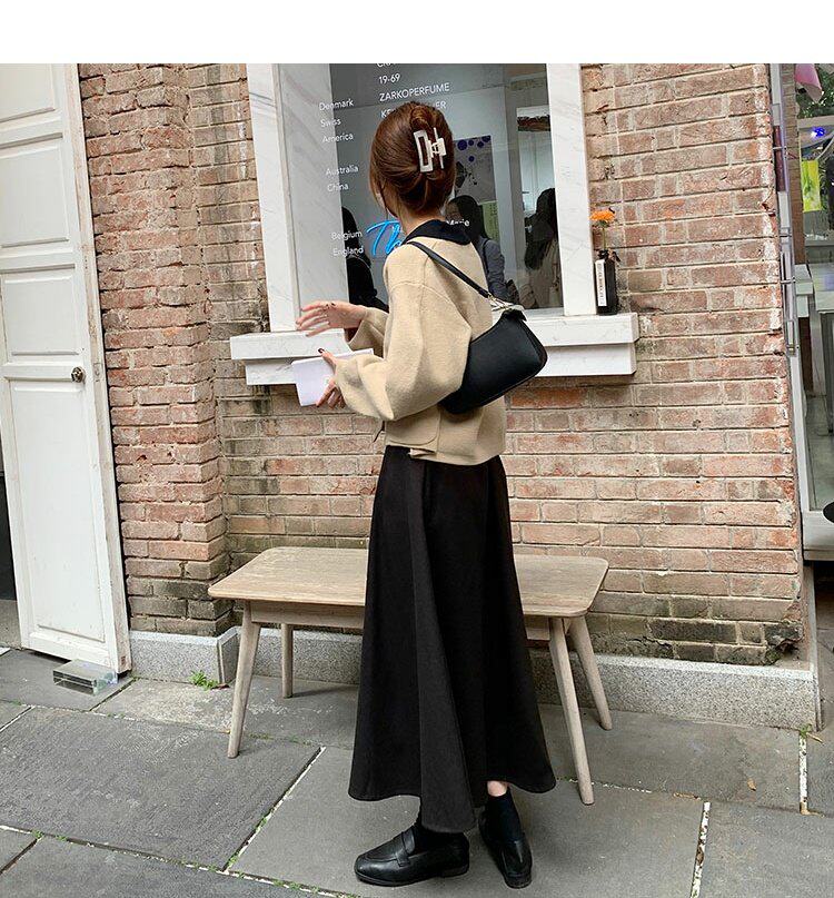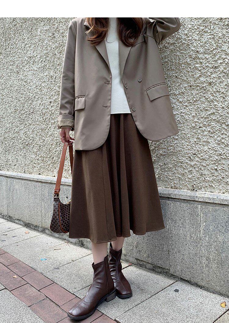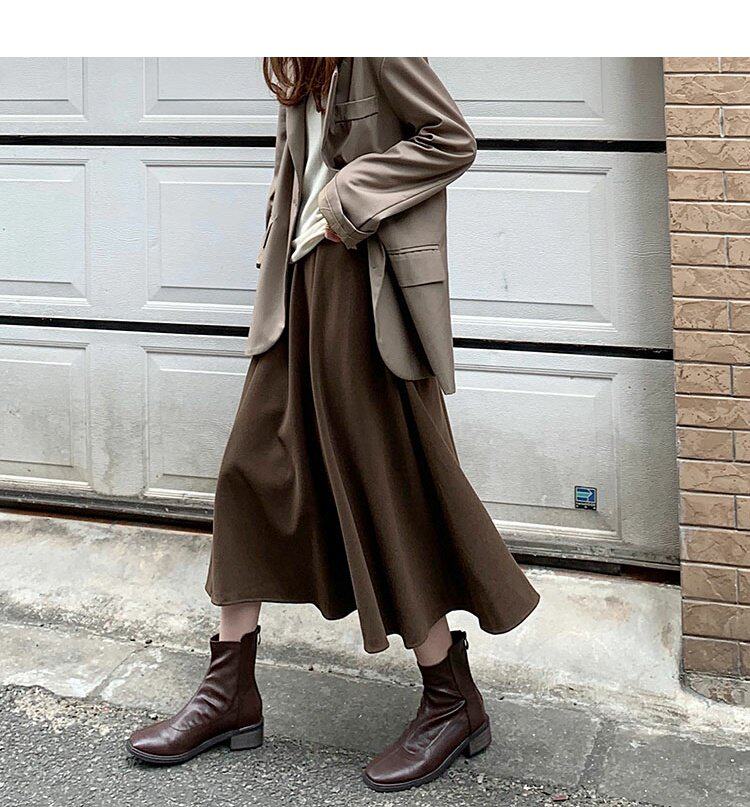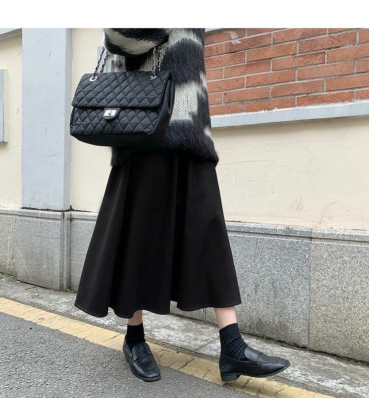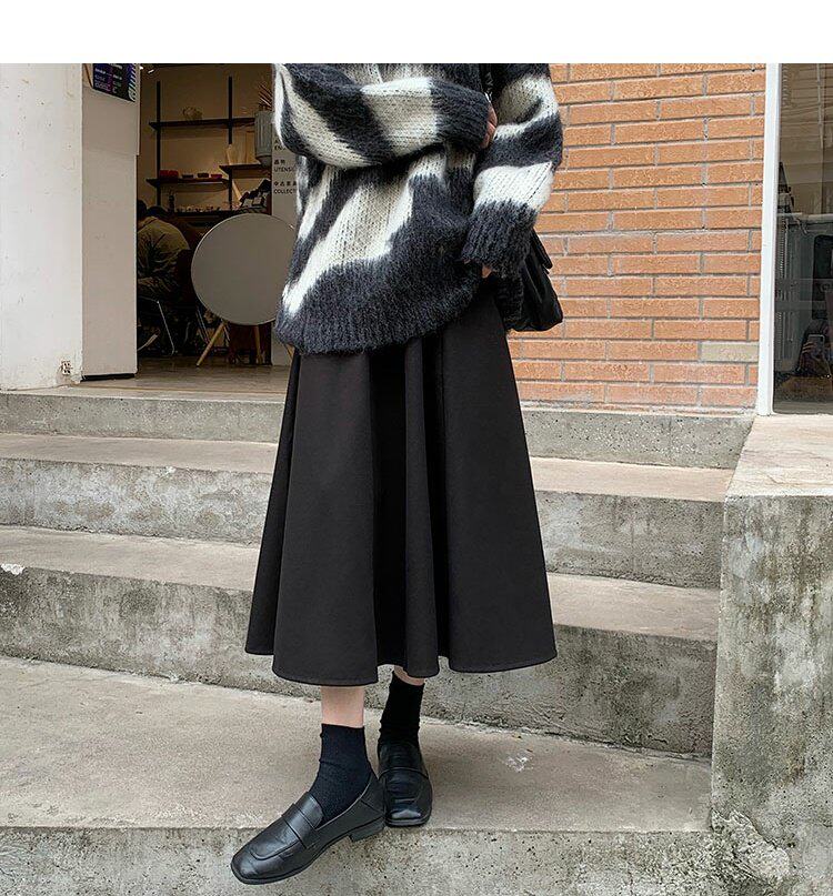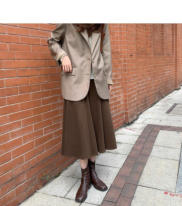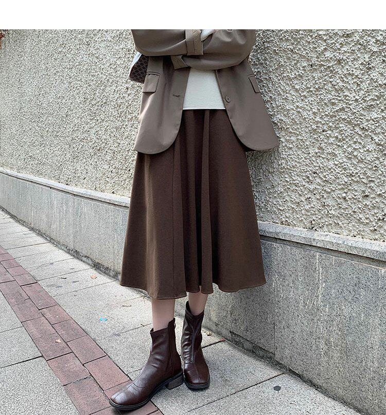 秋冬毛呢咖色半身裙女大碼胖mm微胖棕色美拉德穿搭顯瘦高腰a字裙