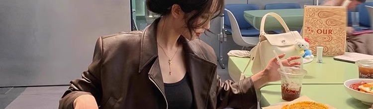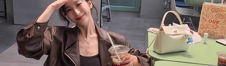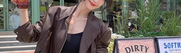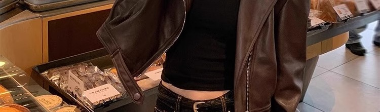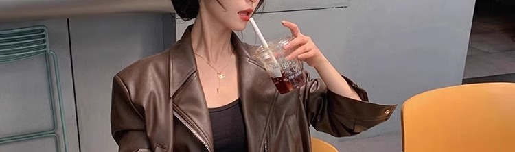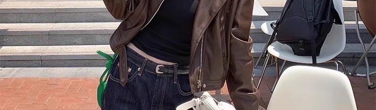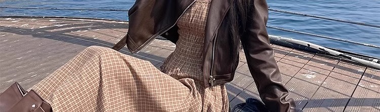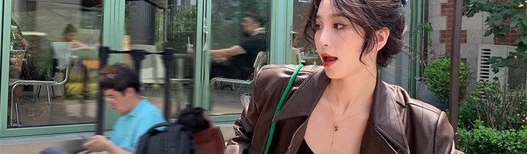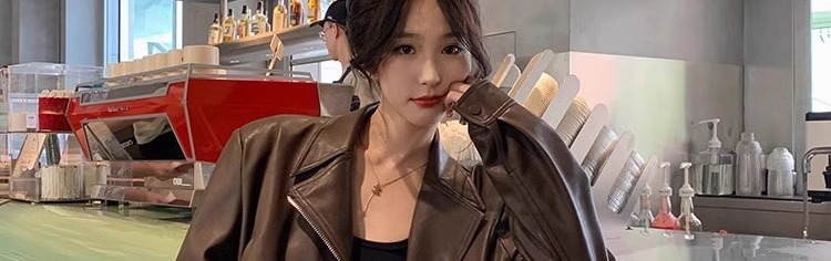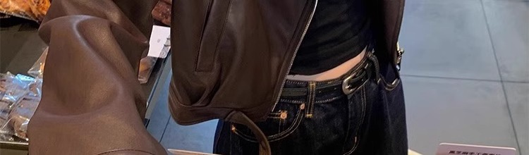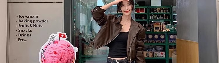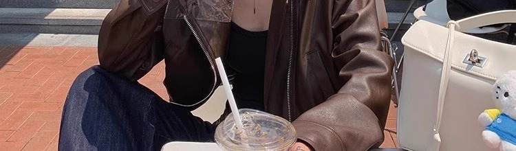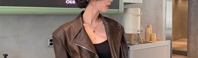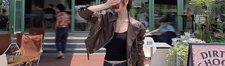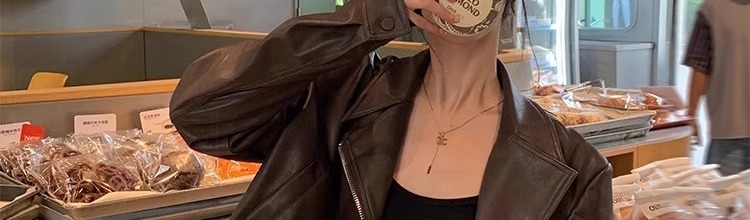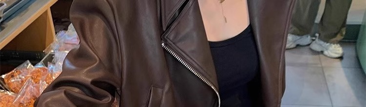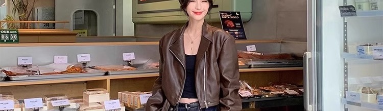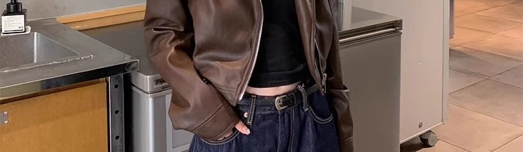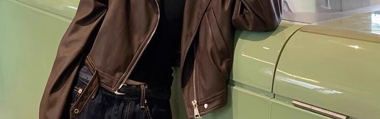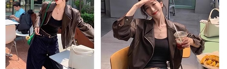 港風復古咖色pu皮衣外套女早秋季2025新款小個子短款機車夾克上衣