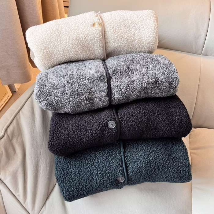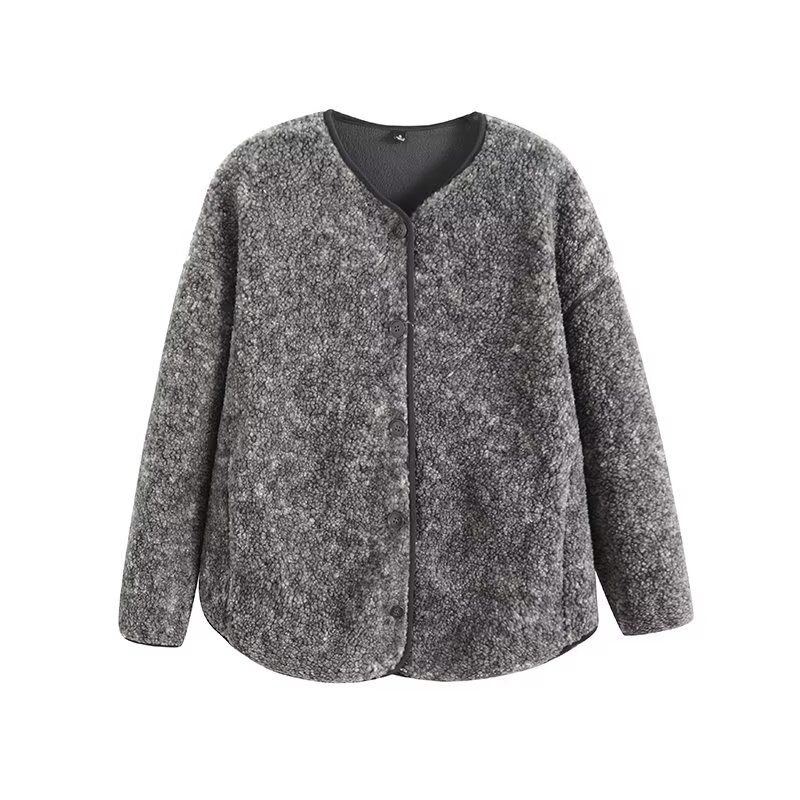 女裝仿羊羔絨搖粒絨休閒開衫/長袖外套25秋冬新款R470139/479616