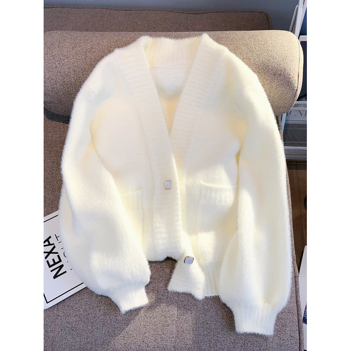 仙女溫柔系針織外套女2025春秋新款寬松韓系白色軟糯開衫上衣潮