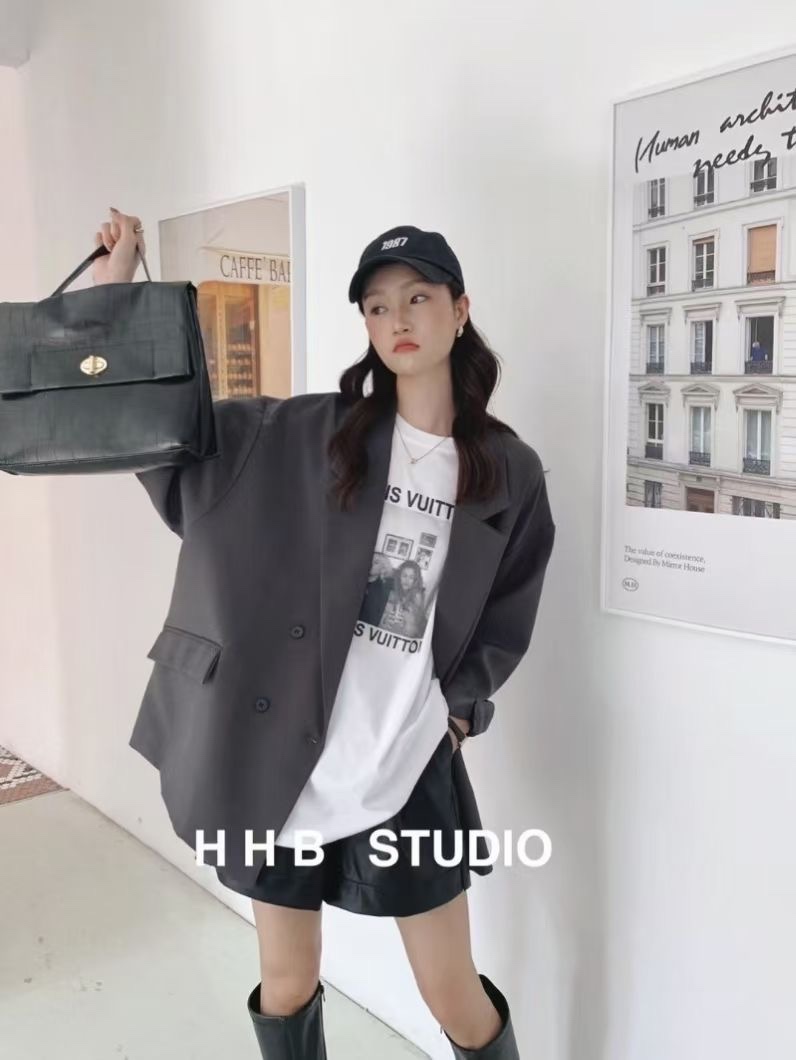 2205春秋英倫風顯瘦休閒寬松時尚網紅氣質加裡襯不挑人韓版小西裝