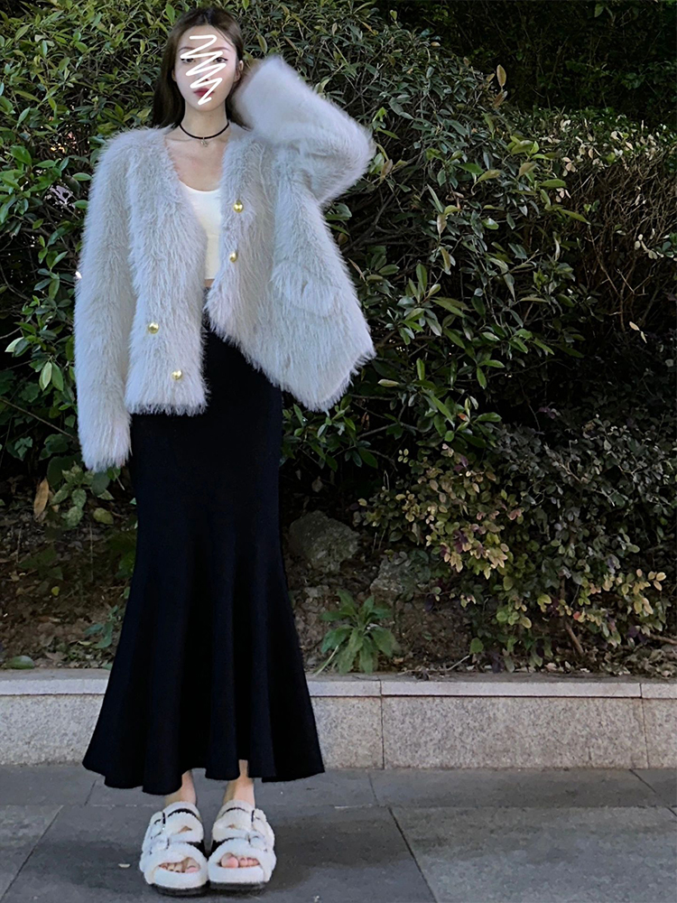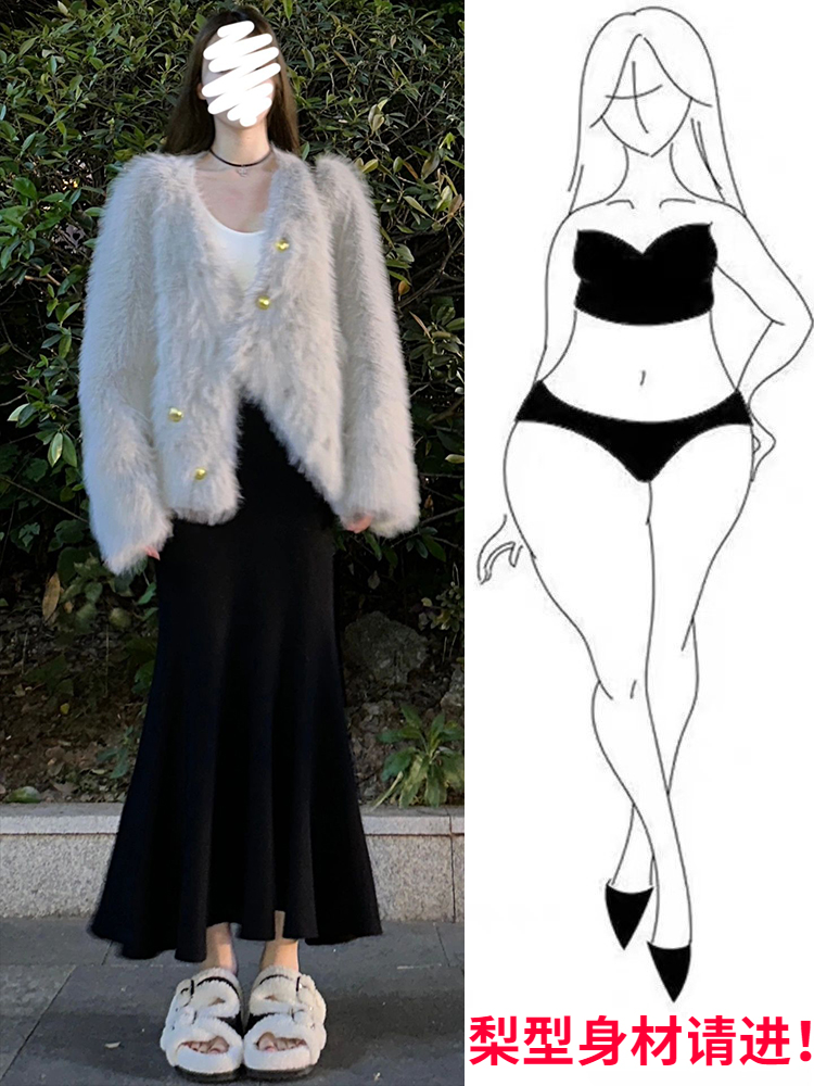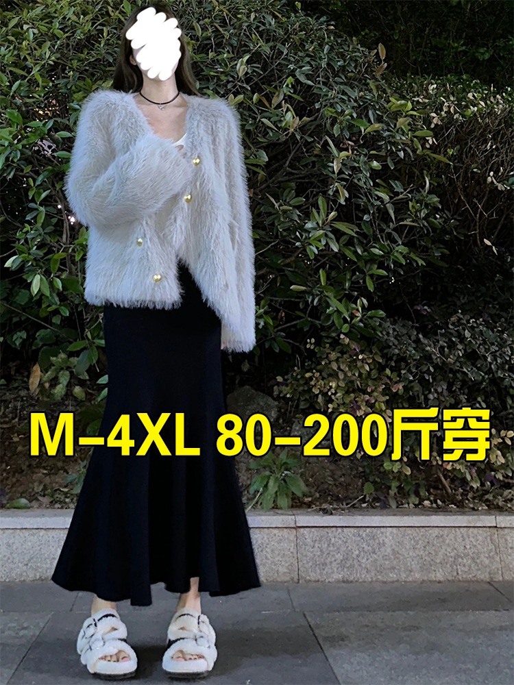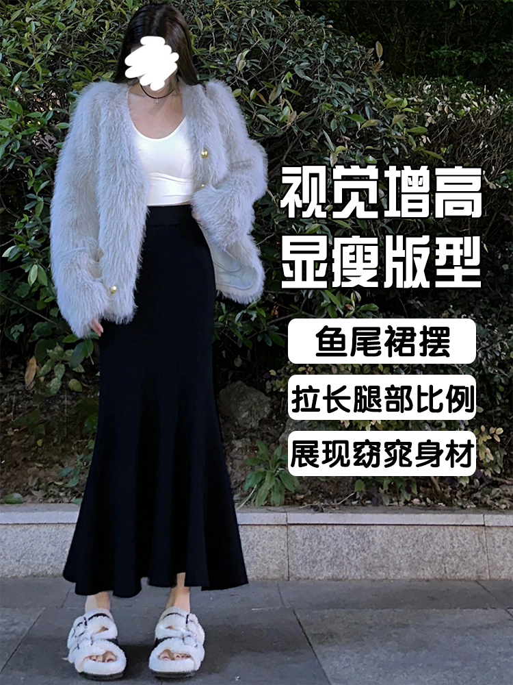 針織魚尾半身裙女秋冬大碼胖mm設計感高腰顯瘦包臀裙a字長裙ins潮