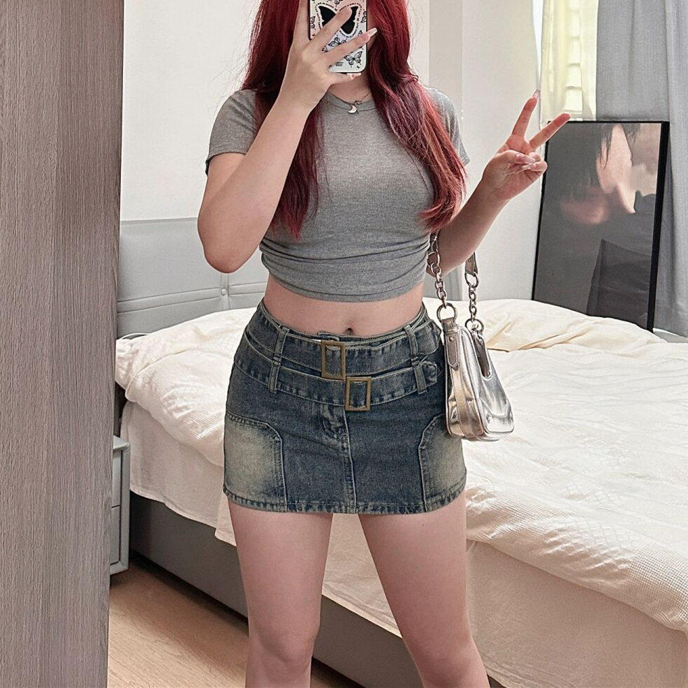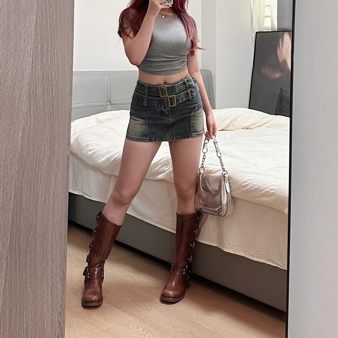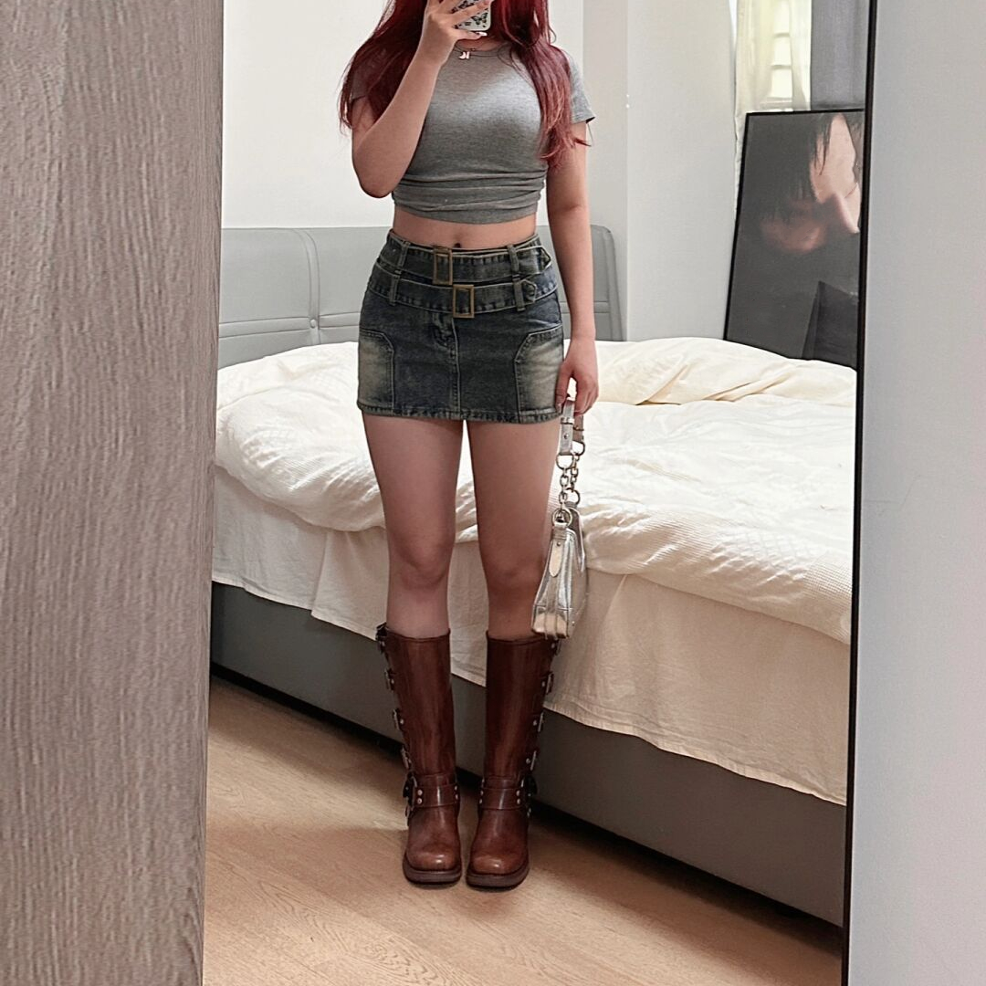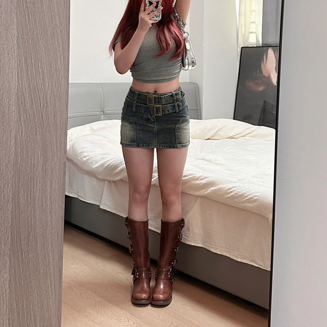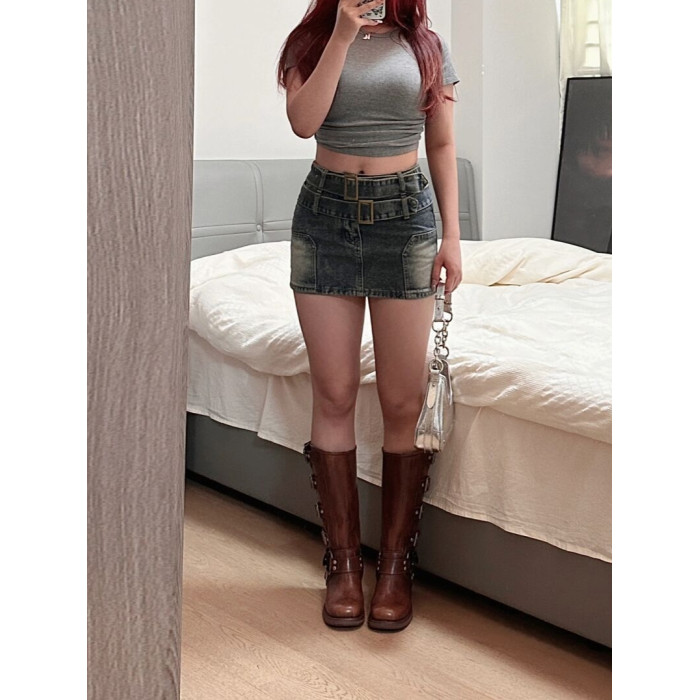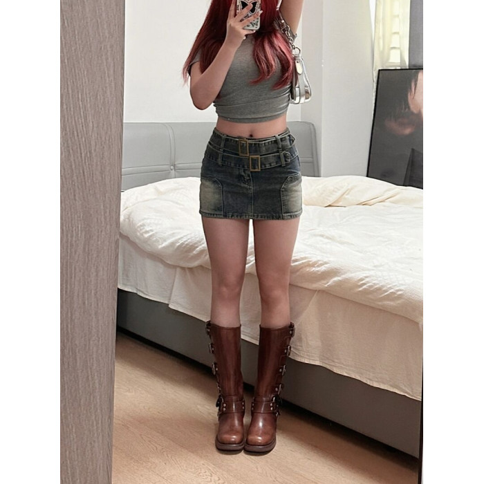 春秋新款高腰牛仔半身裙褲女大碼胖mm顯瘦設計感防走光包臀短裙子