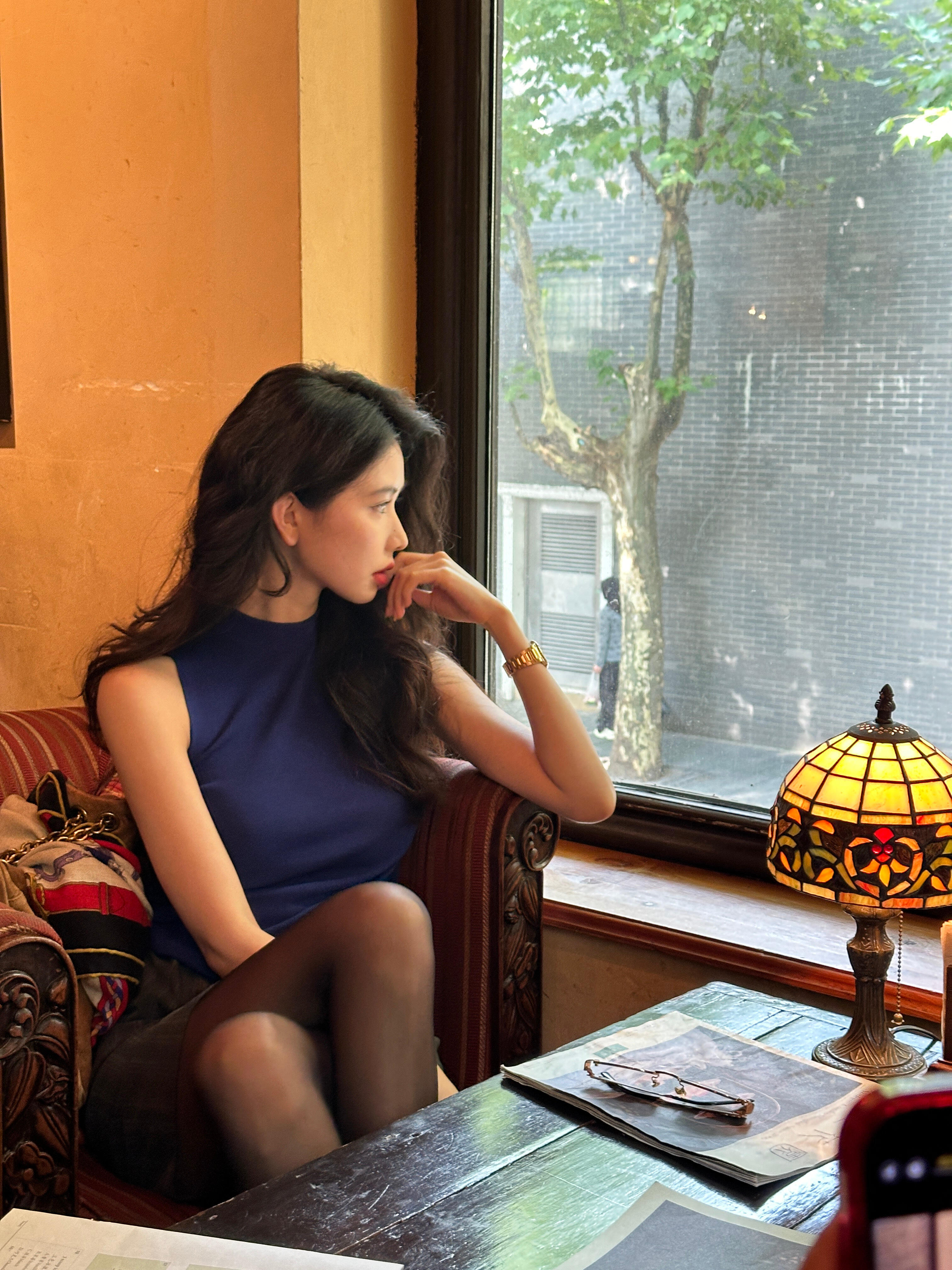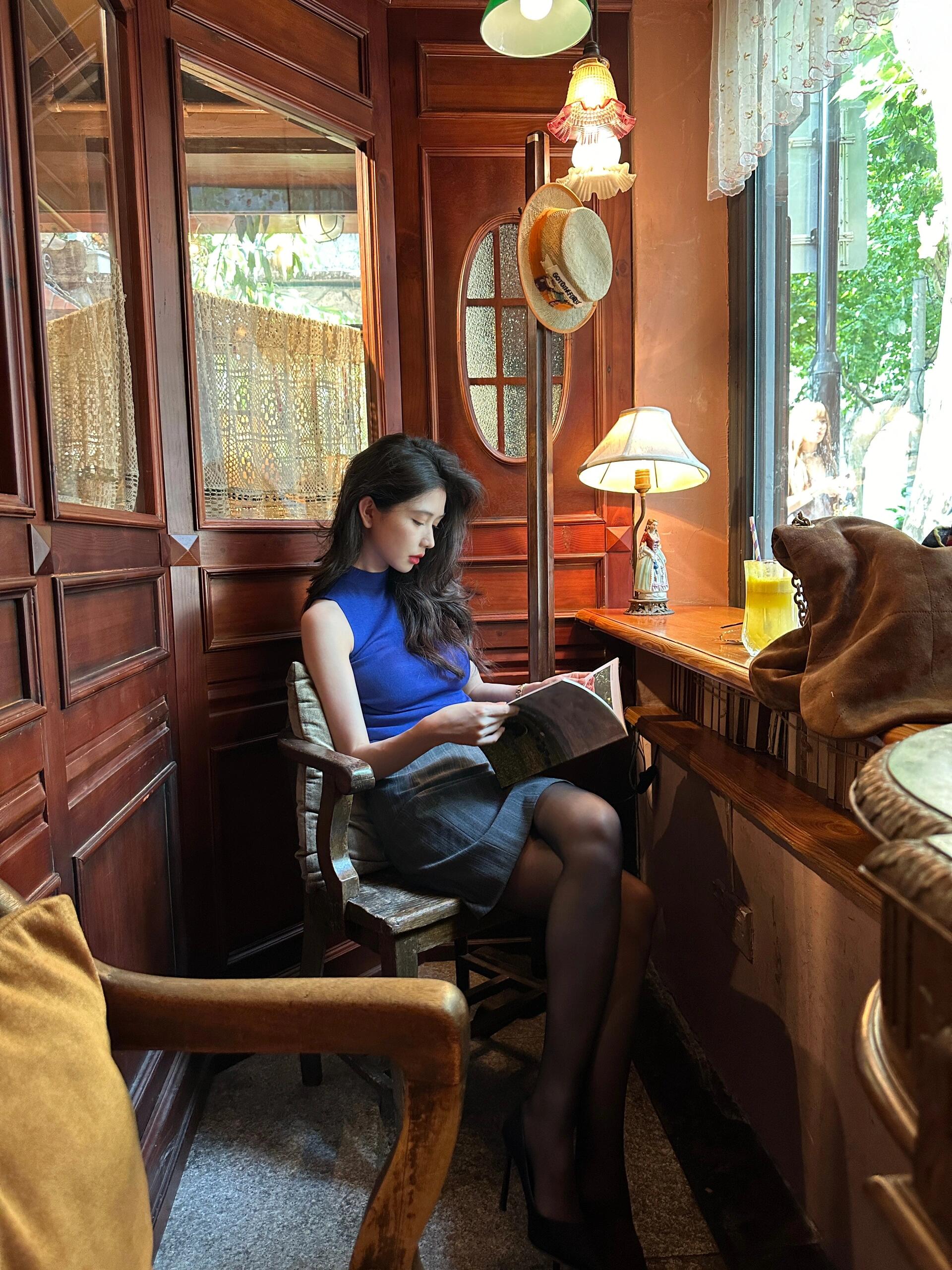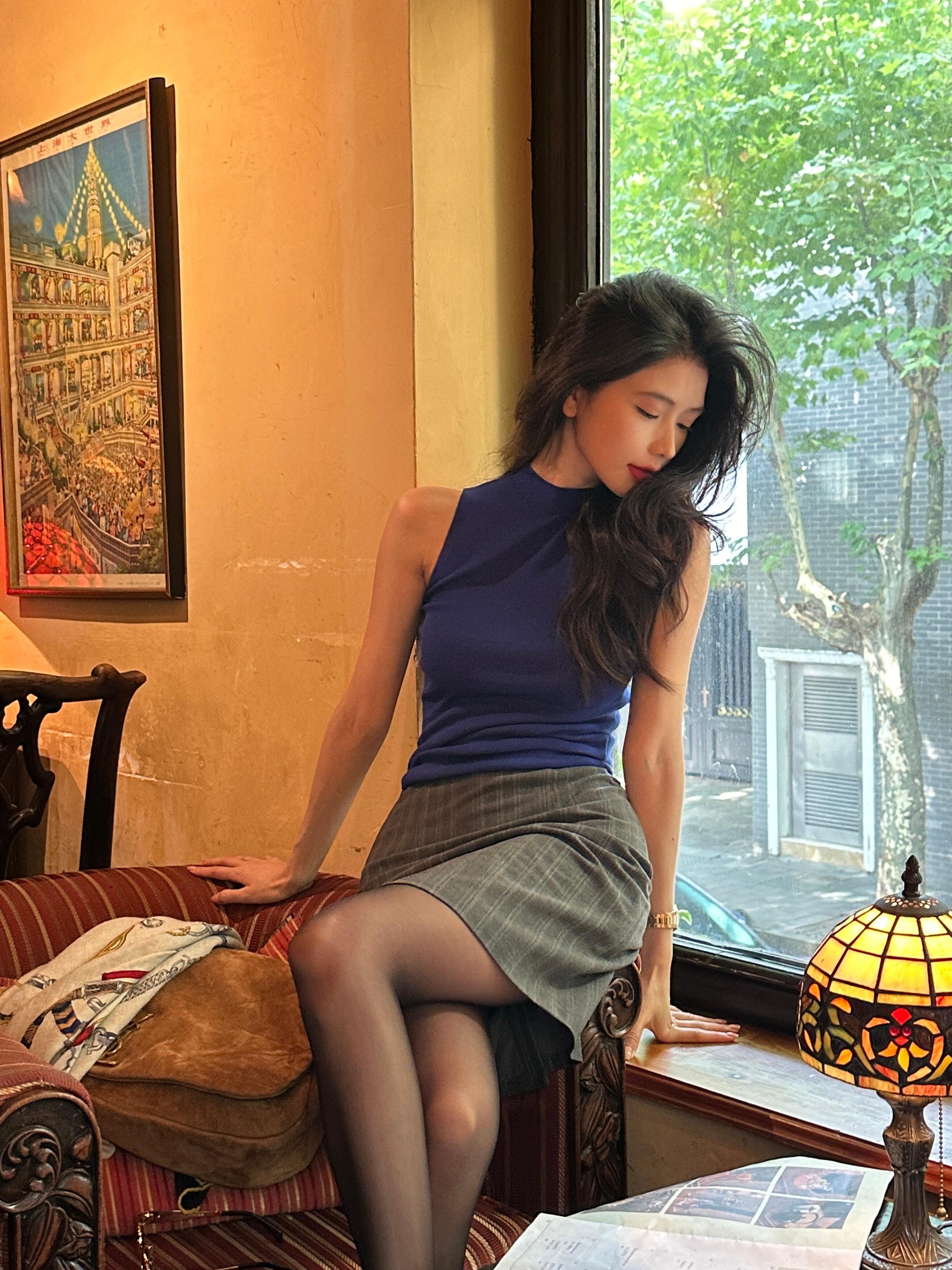 Nabi復古竪條紋西裝包臀半身裙女OL氣質開叉顯瘦修身灰色直筒短裙