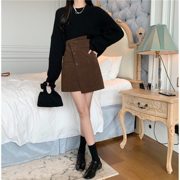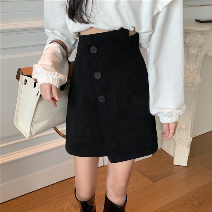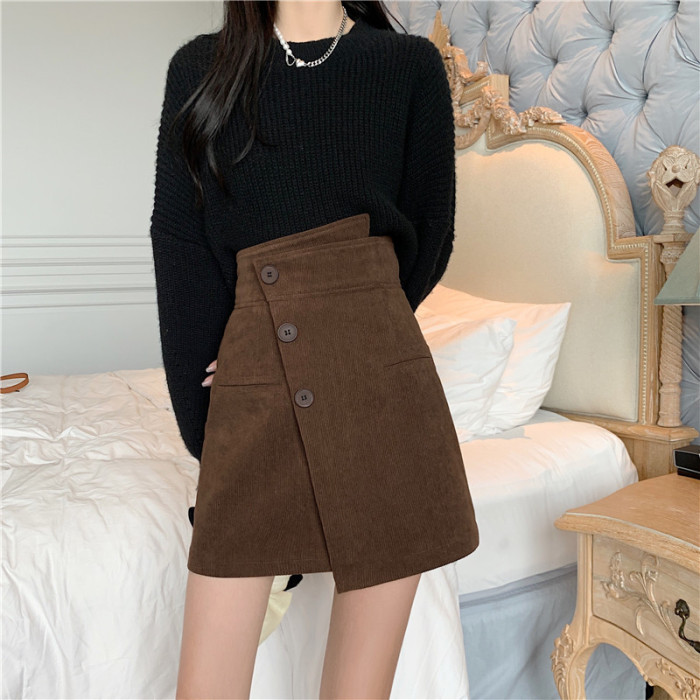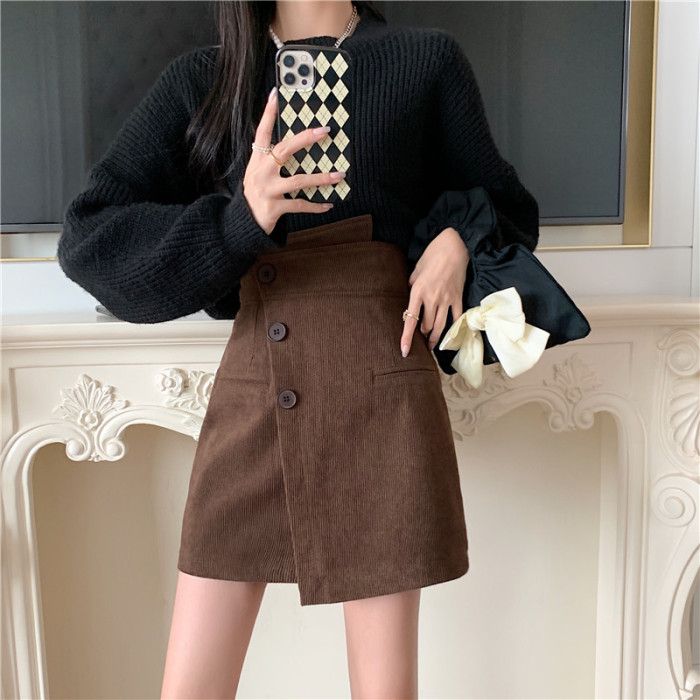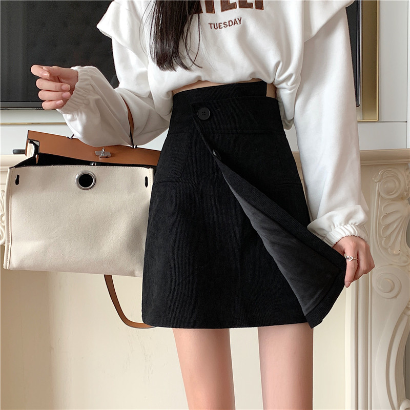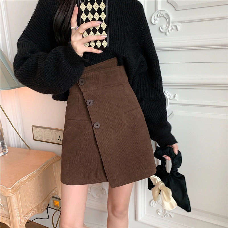 不規則設計感燈芯絨半身裙女秋冬大碼高腰顯瘦a字遮跨短裙包臀裙