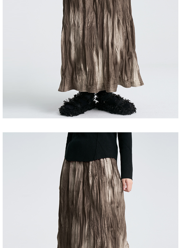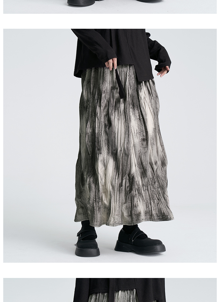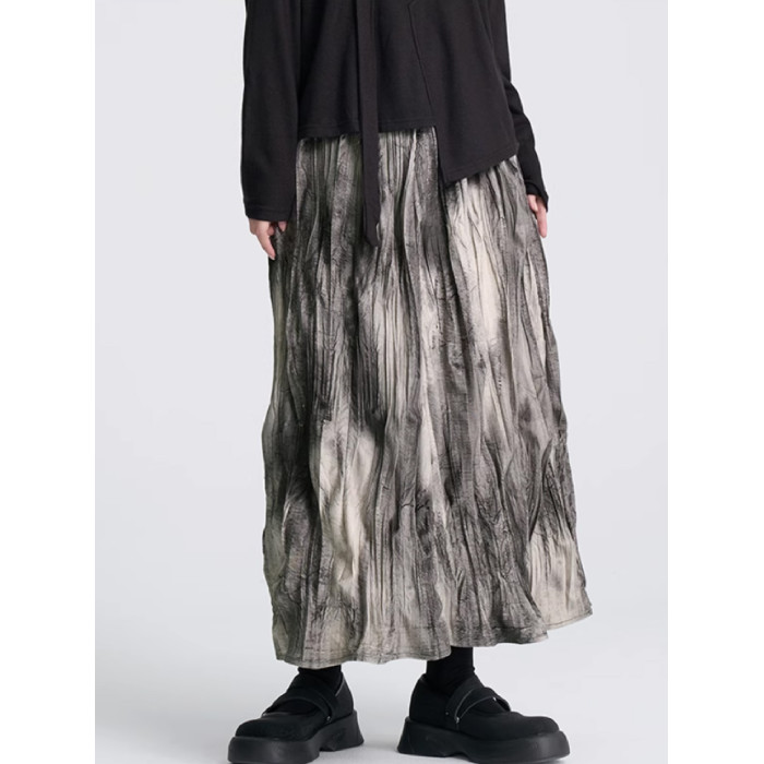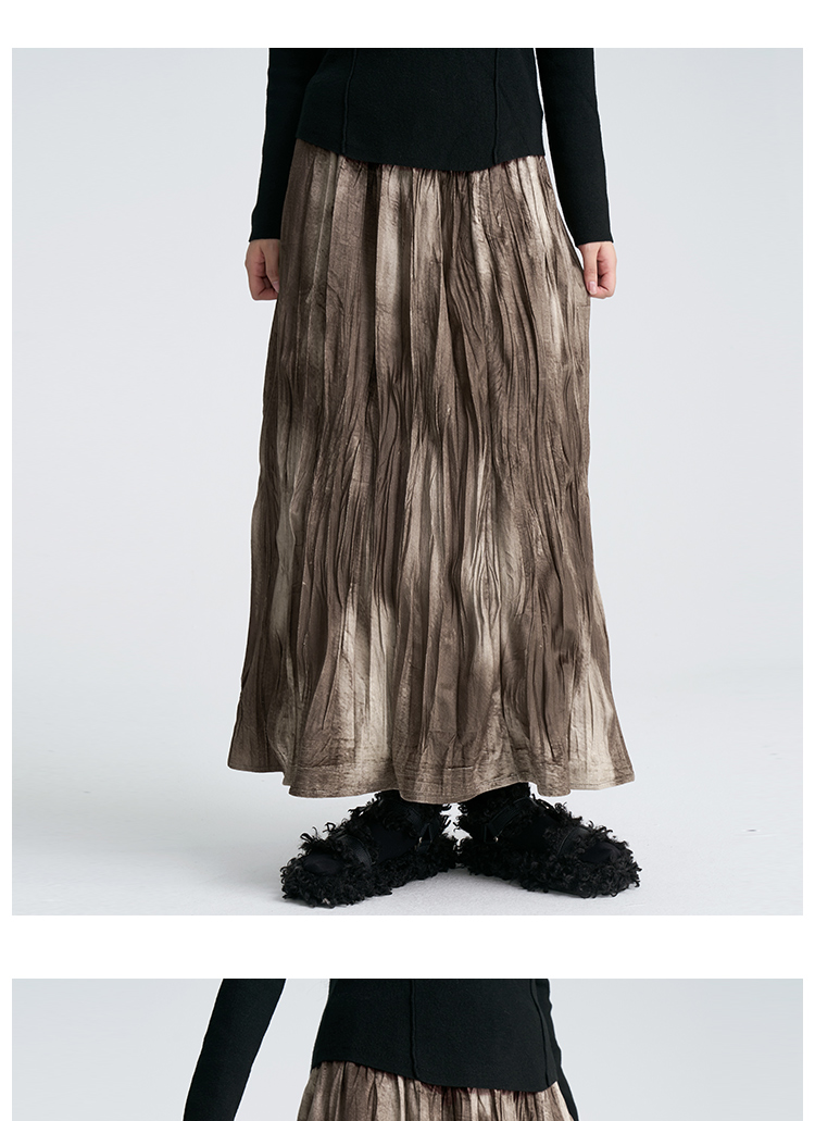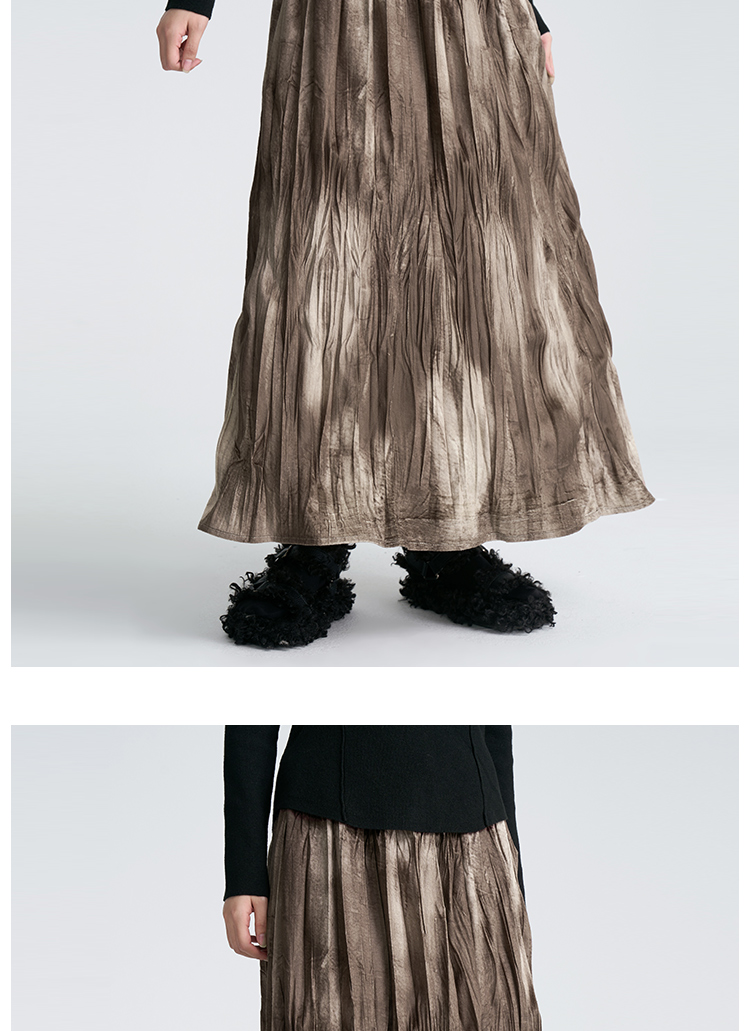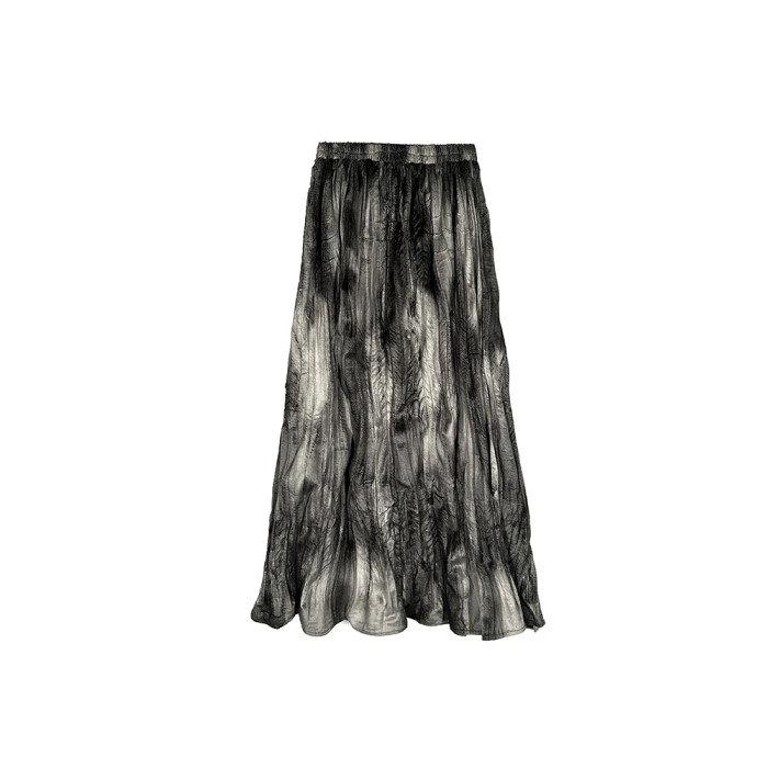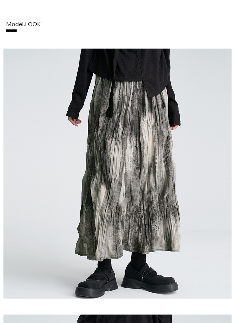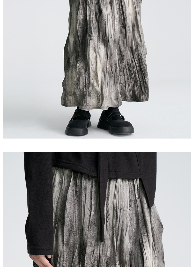 陸與山嶼2025新款秋冬款設計感小衆百褶裙加厚裙子水墨印花半身裙