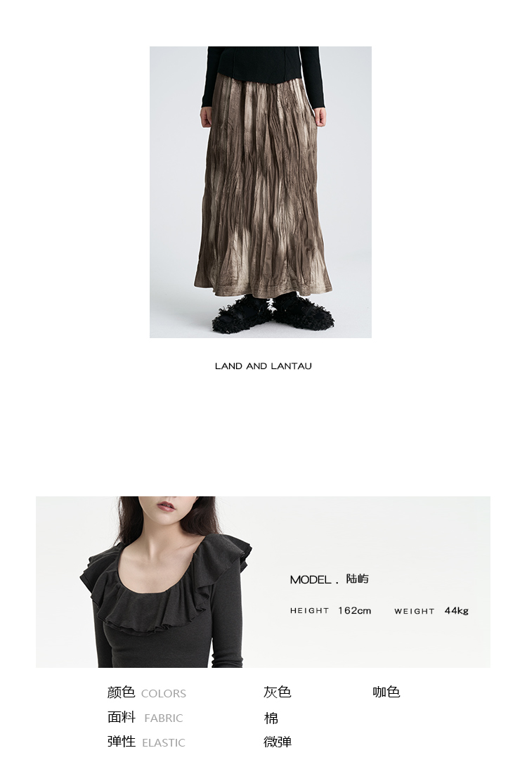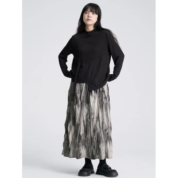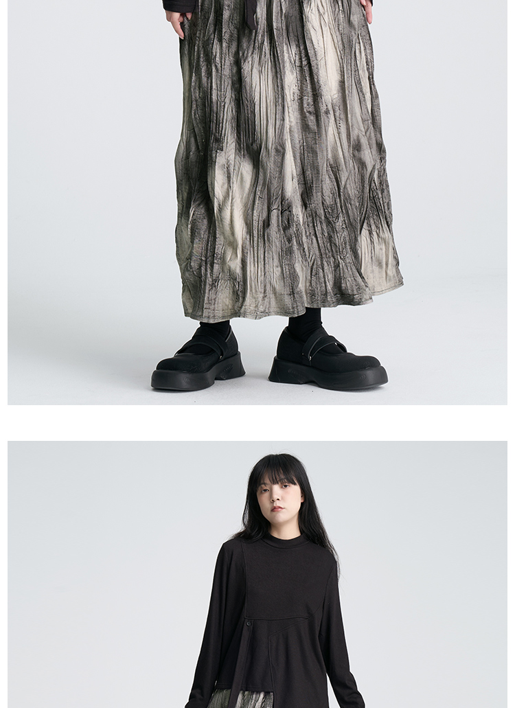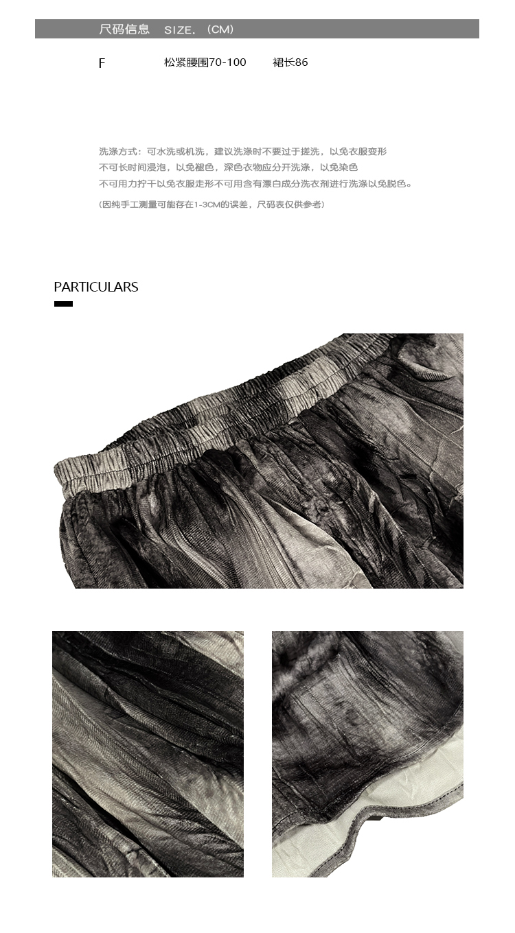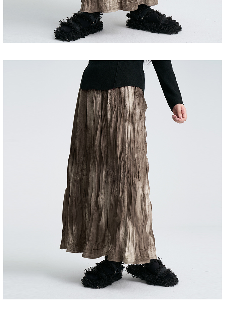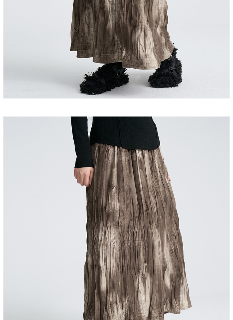 陸與山嶼2025新款秋冬款設計感小衆百褶裙加厚裙子水墨印花半身裙