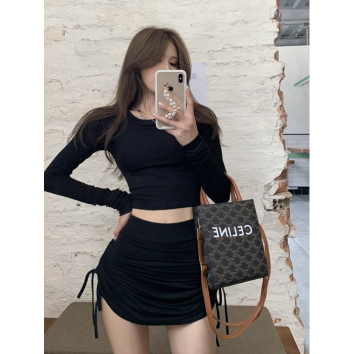 抽繩褶皺半身裙女秋冬2025年大碼mm辣妹性感修身顯瘦包臀a字裙褲