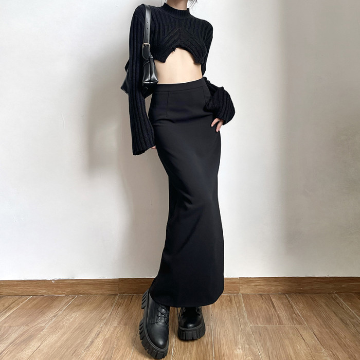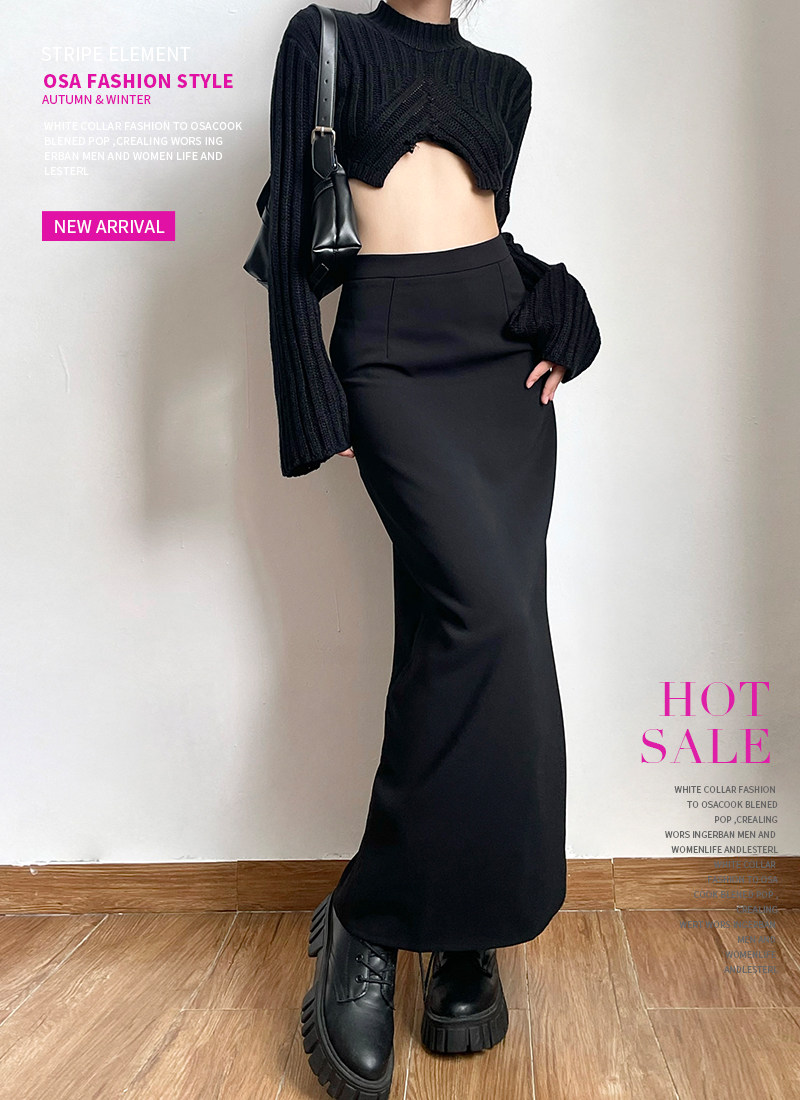 gagaopt2025秋季新款黑色高腰開叉半身裙顯瘦包臀A字中長款裙子潮