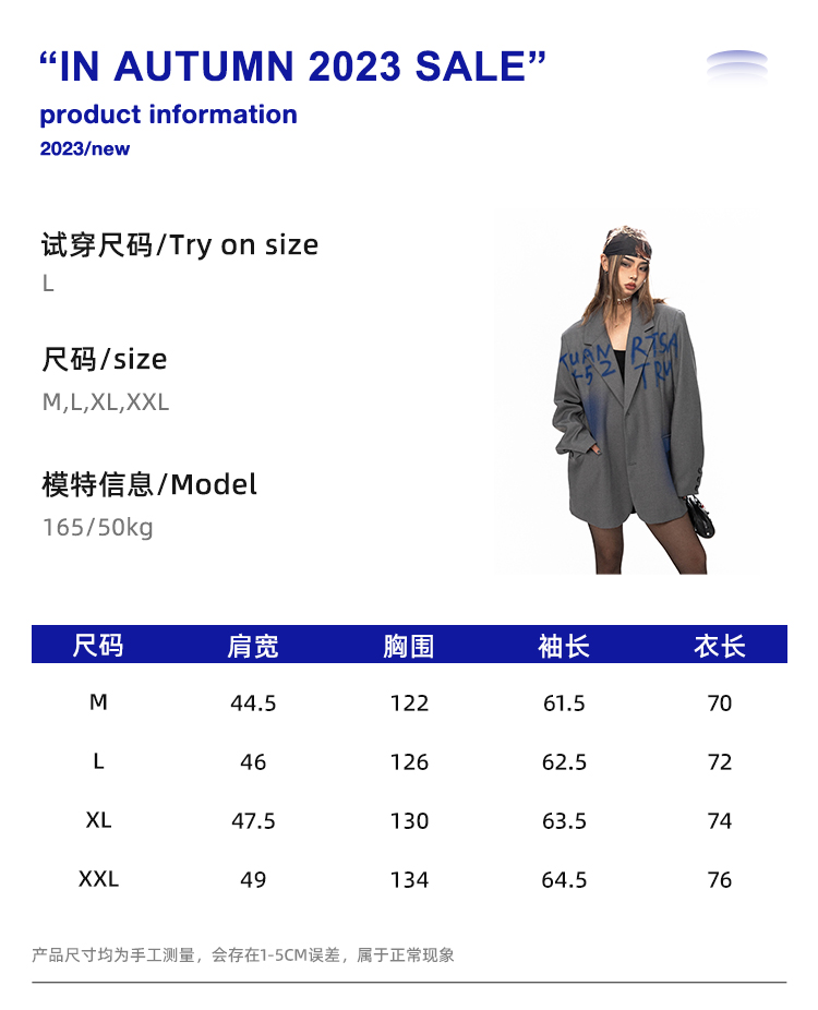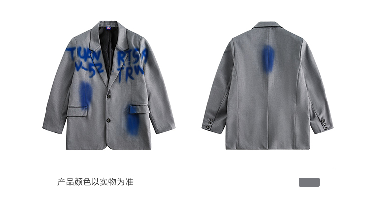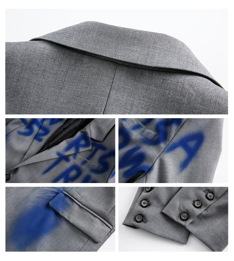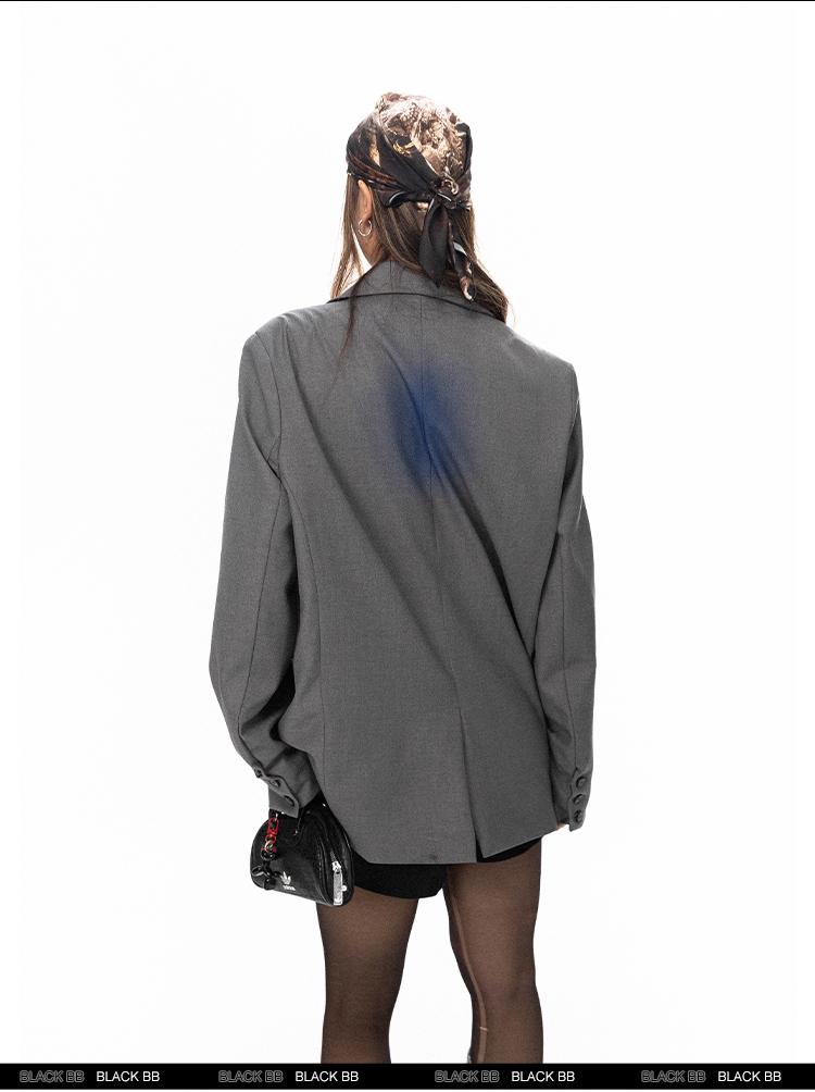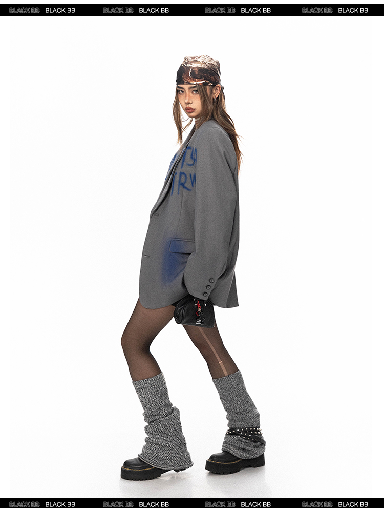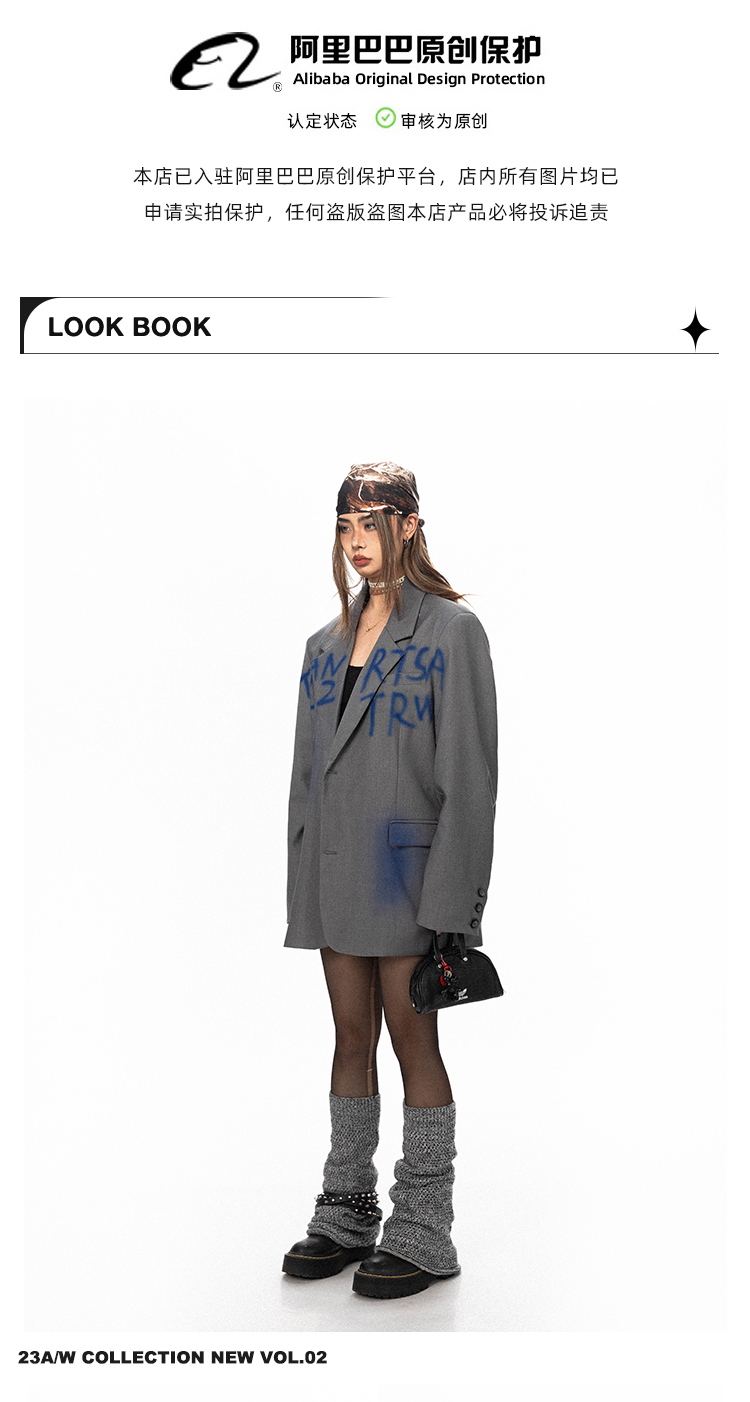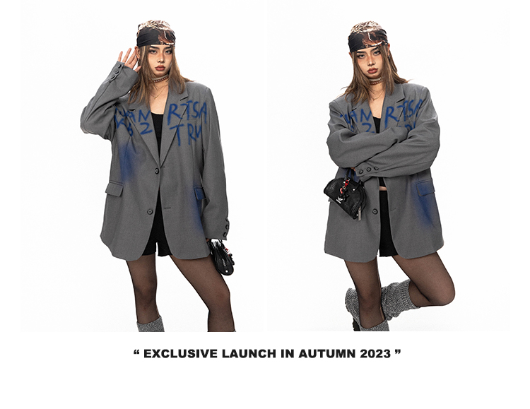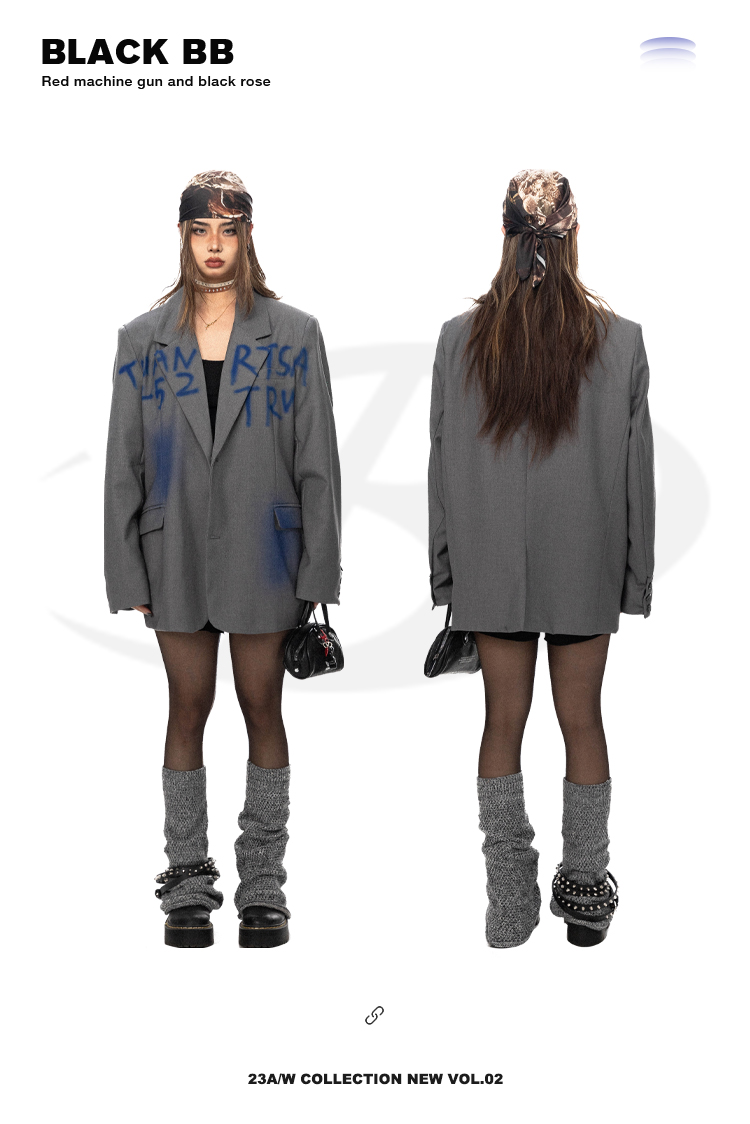 BLACKBB/噴繪撞色字母印花西裝外套女小衆設計感寬松休閒西服上衣