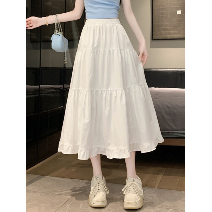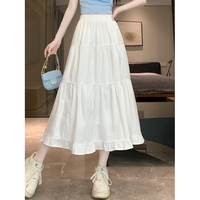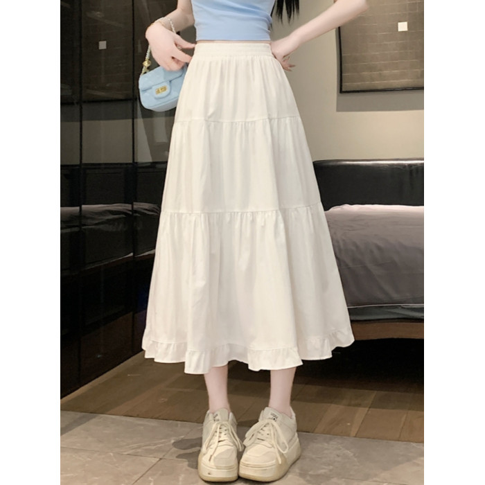 白色半身裙女夏季2025新款春秋褶皺高腰長裙a字繖裙仙女蛋糕裙子