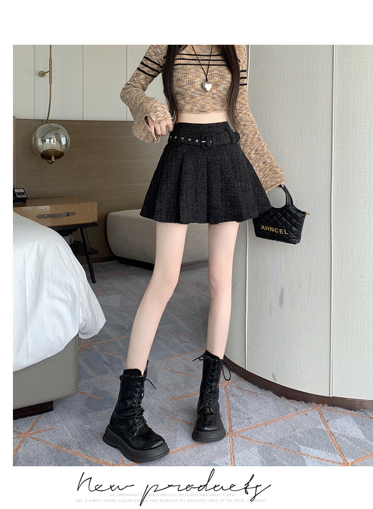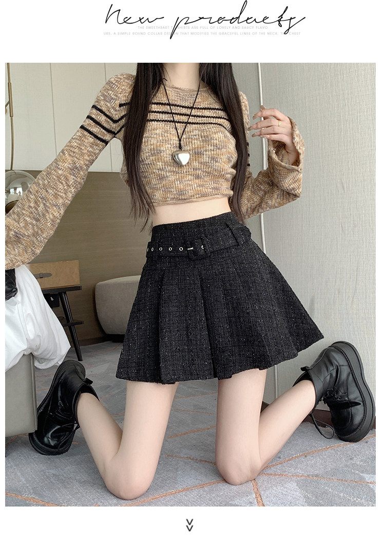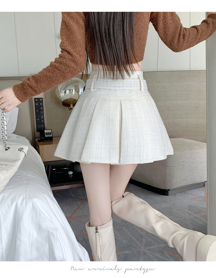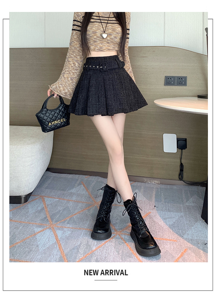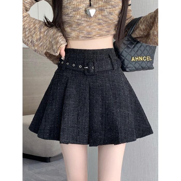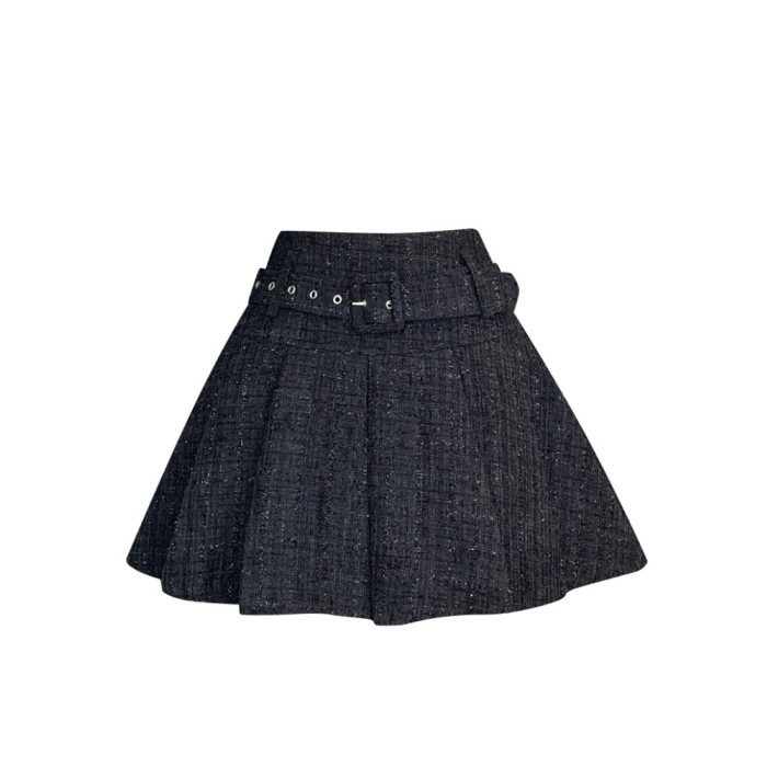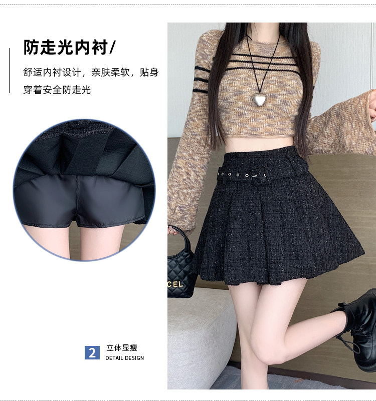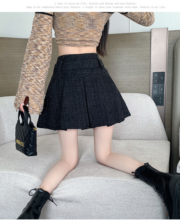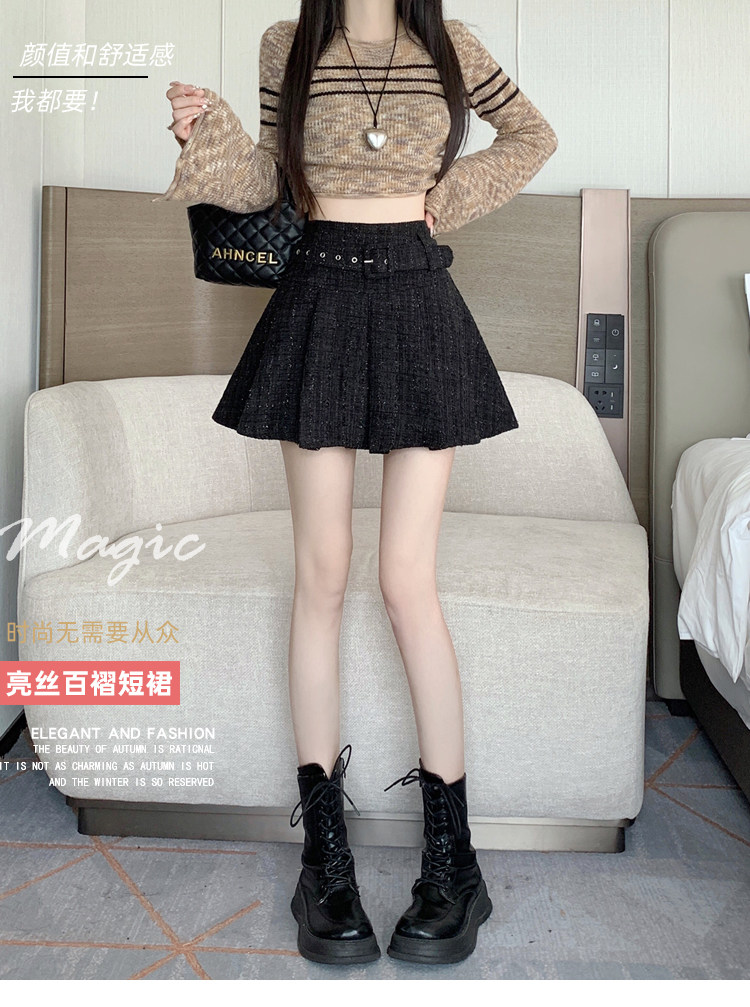 小香風百褶半身裙女春秋季高級感高腰顯瘦a字裙防走光小個子短裙
