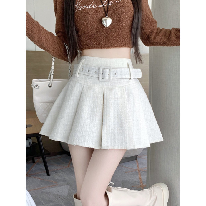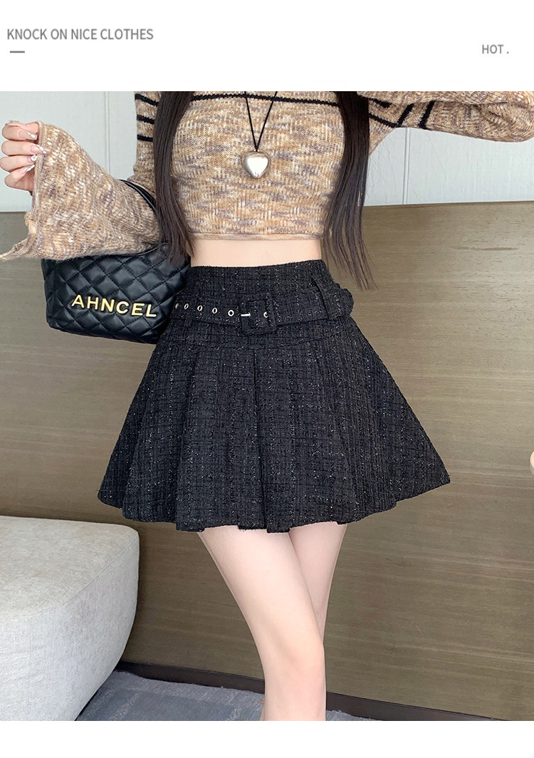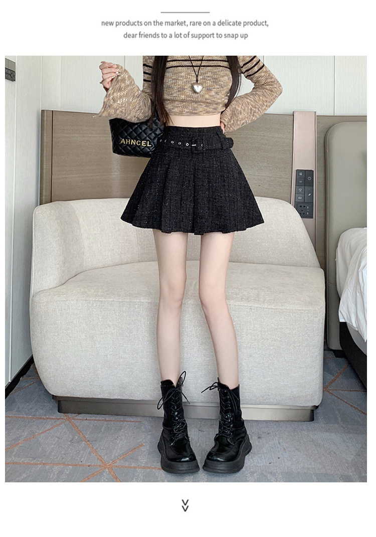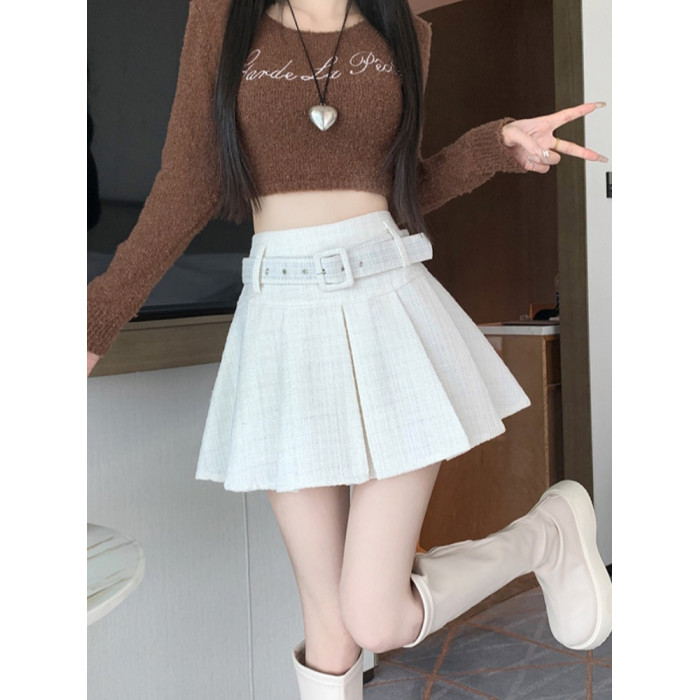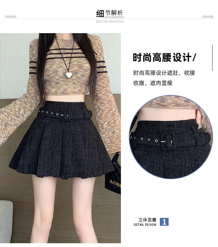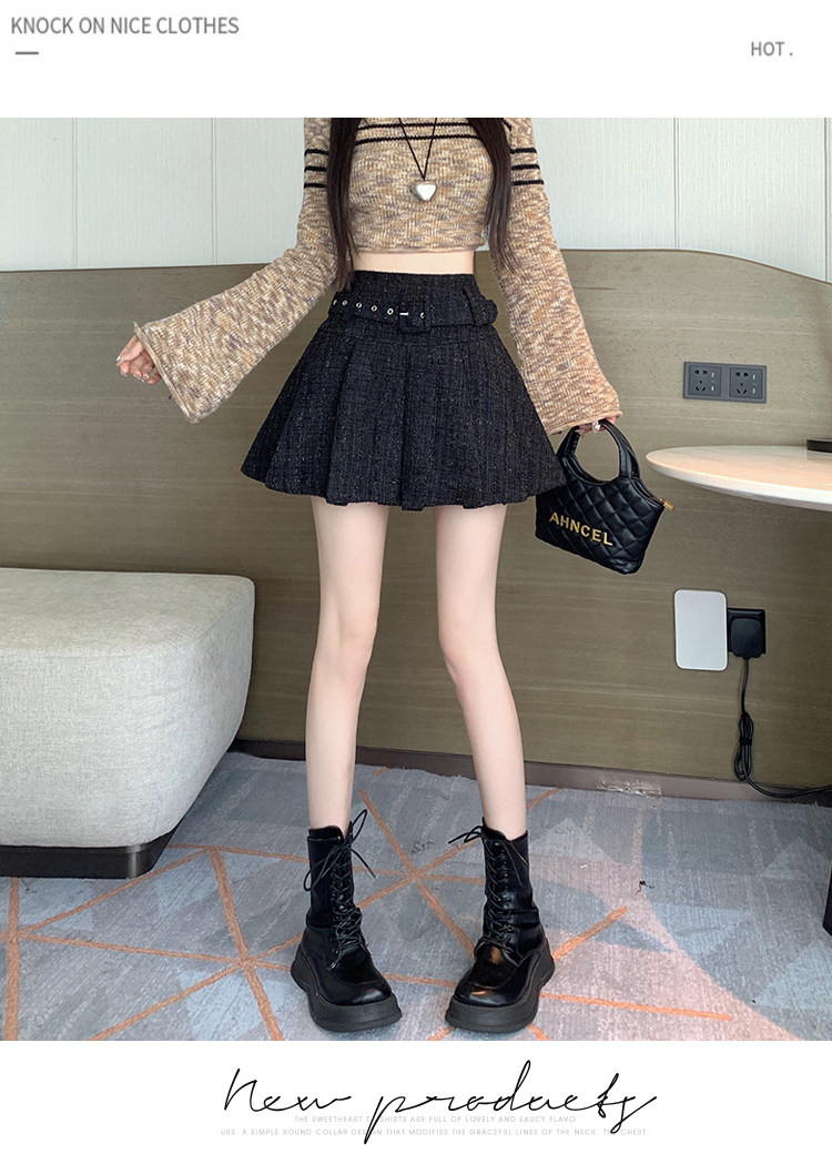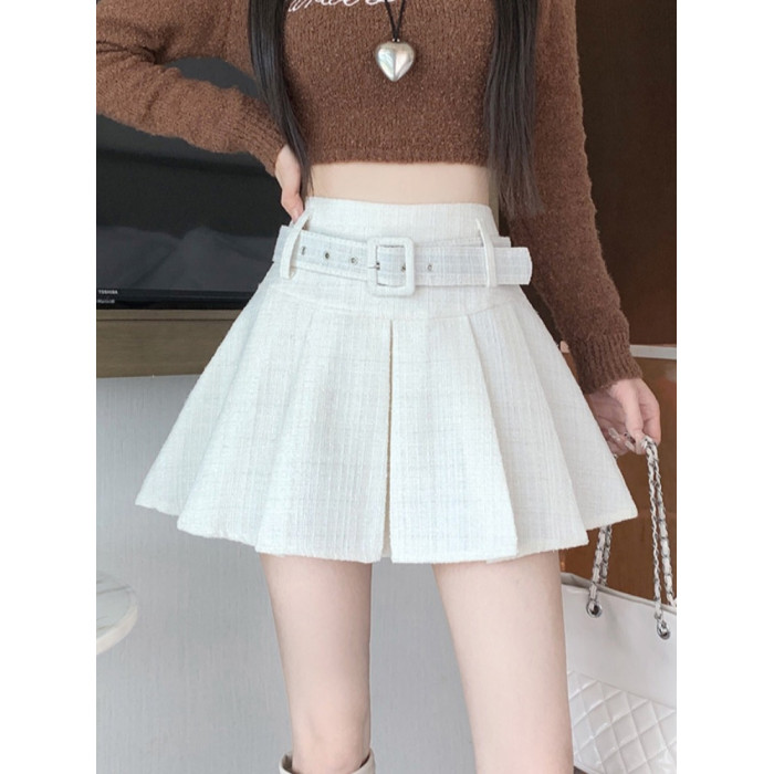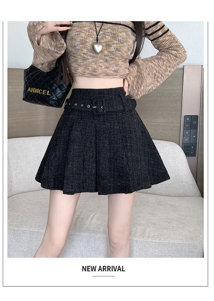 小香風百褶半身裙女春秋季高級感高腰顯瘦a字裙防走光小個子短裙