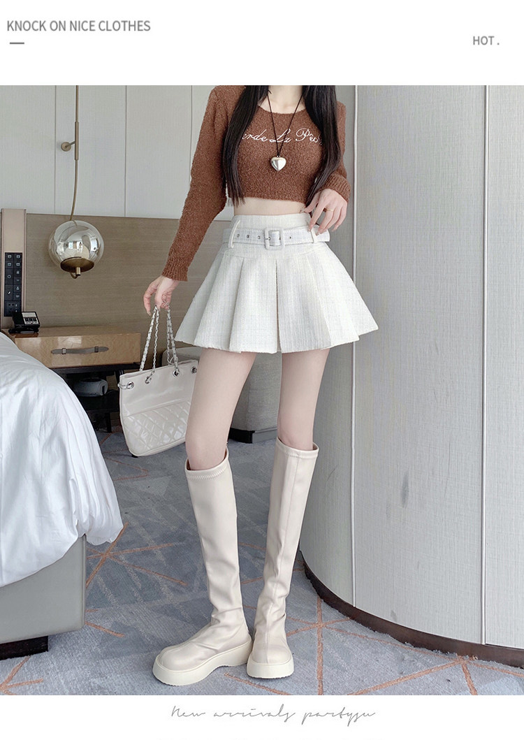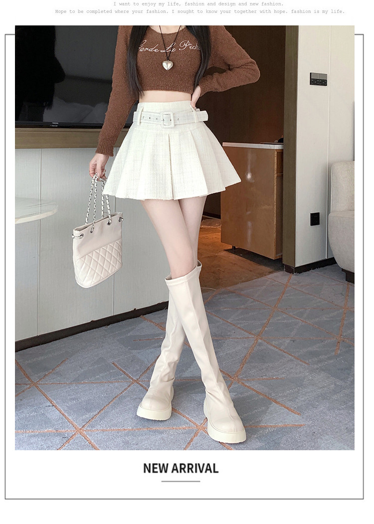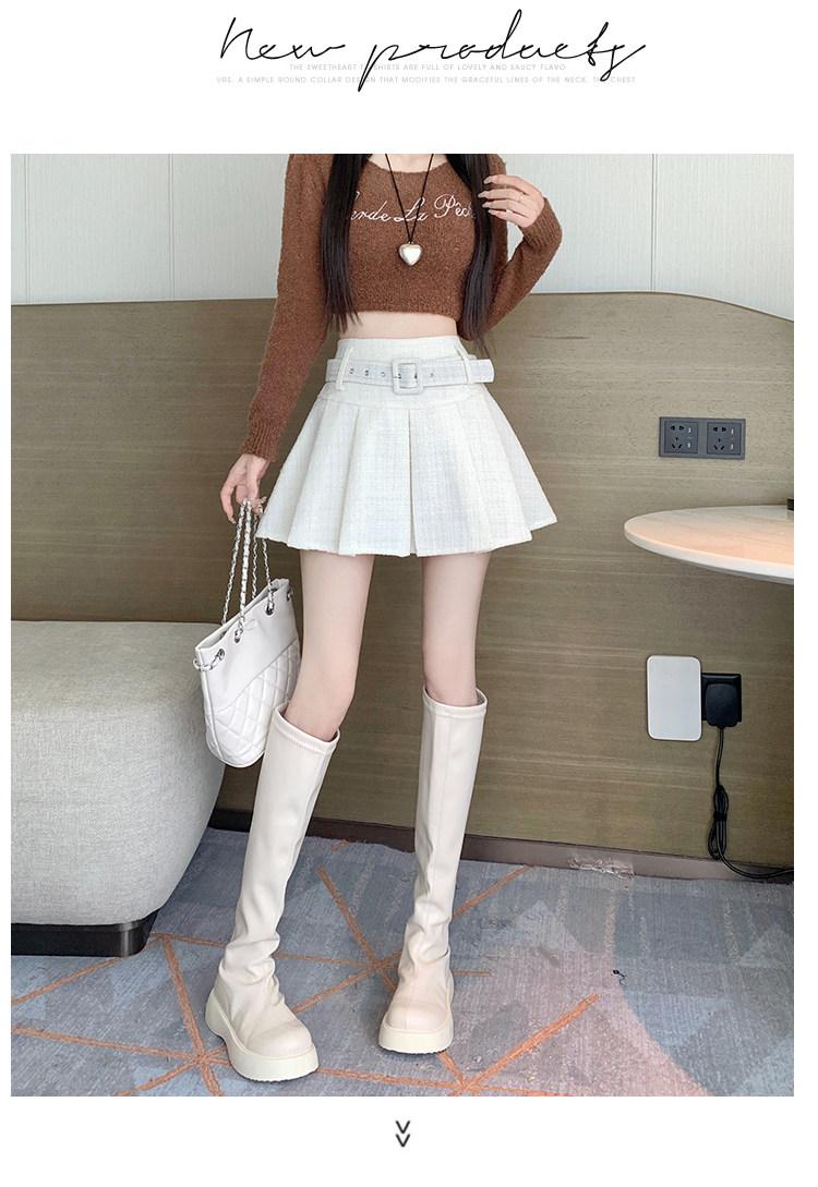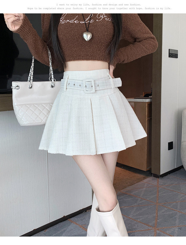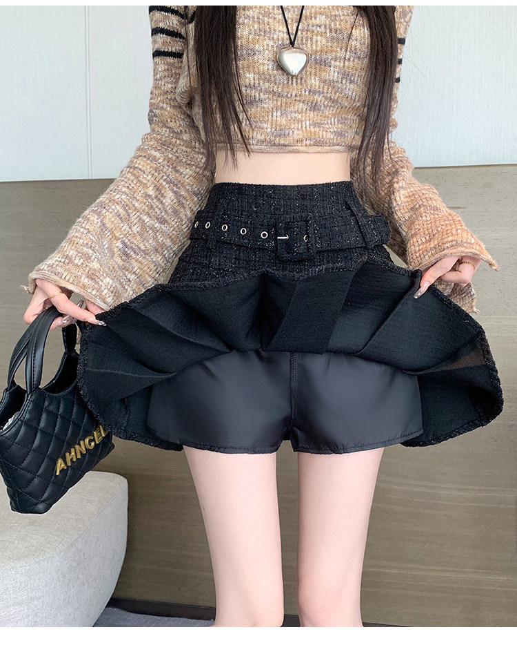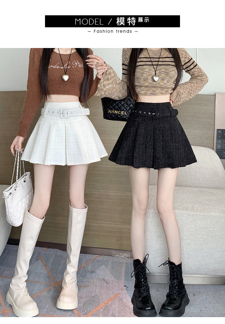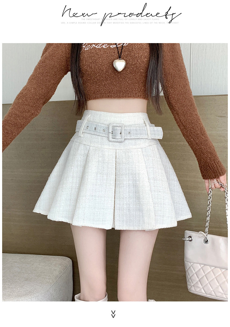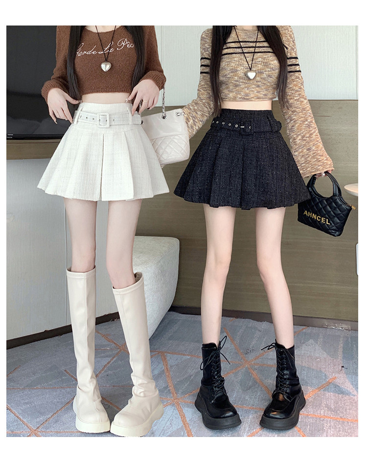 小香風百褶半身裙女春秋季高級感高腰顯瘦a字裙防走光小個子短裙
