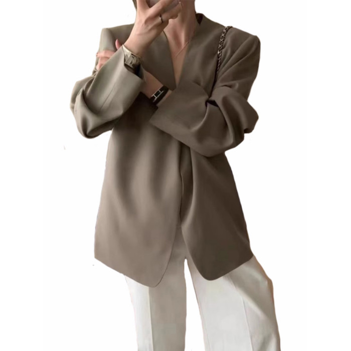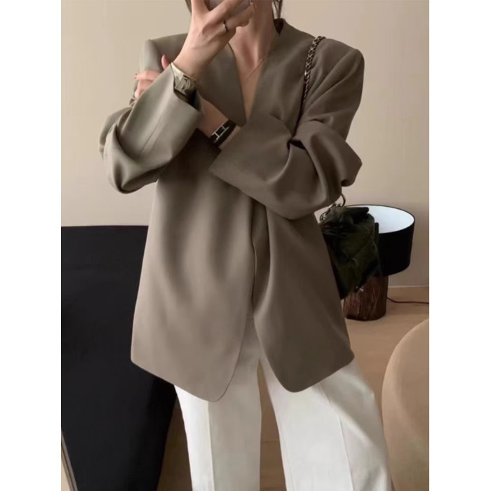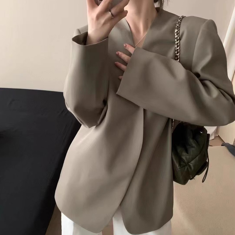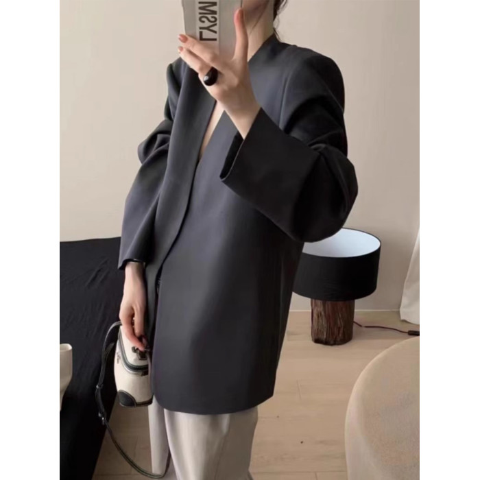 2024春秋季新款韓版寬松休閒無釦小西裝外套女時尚氣質流行西服潮