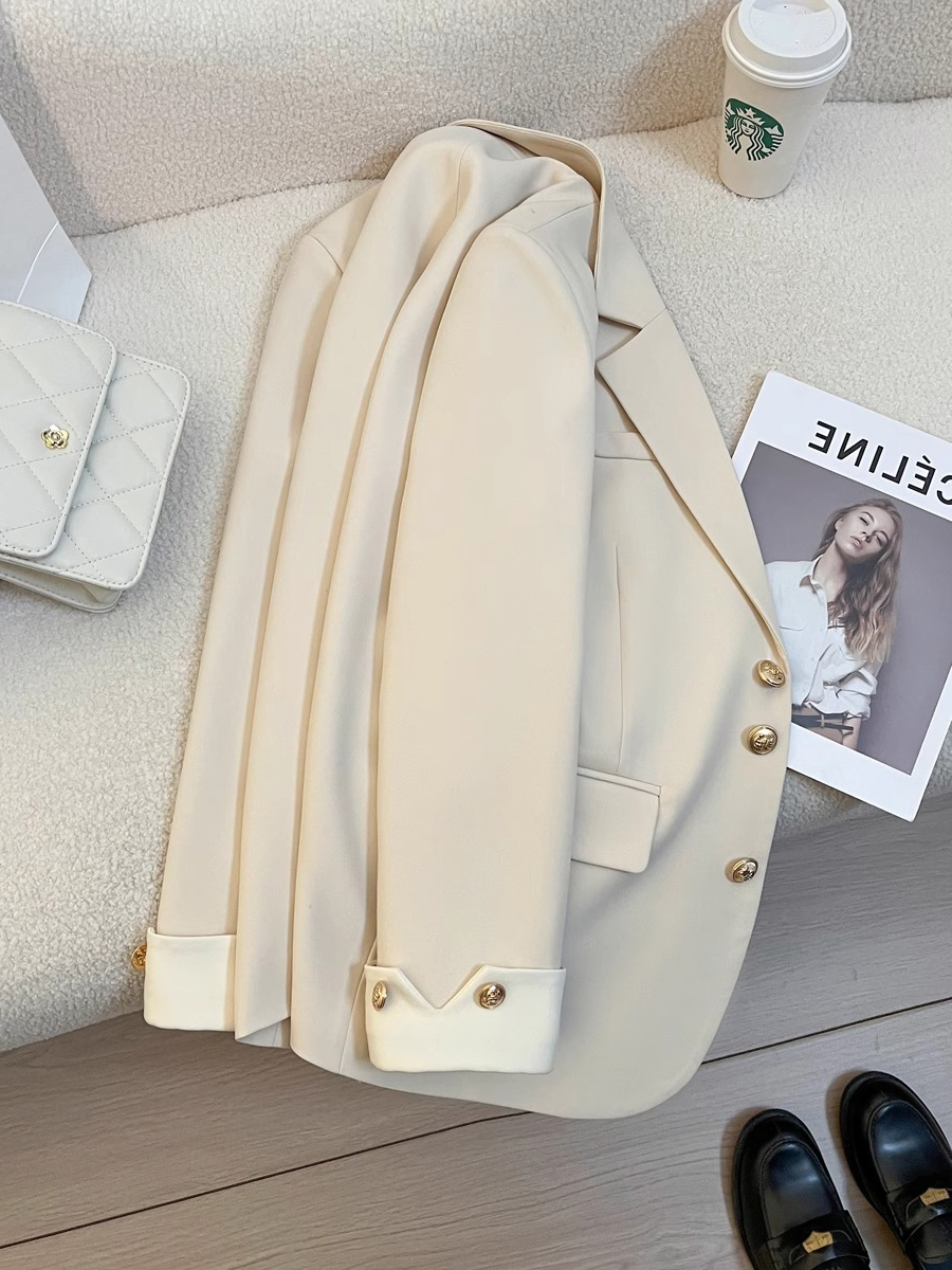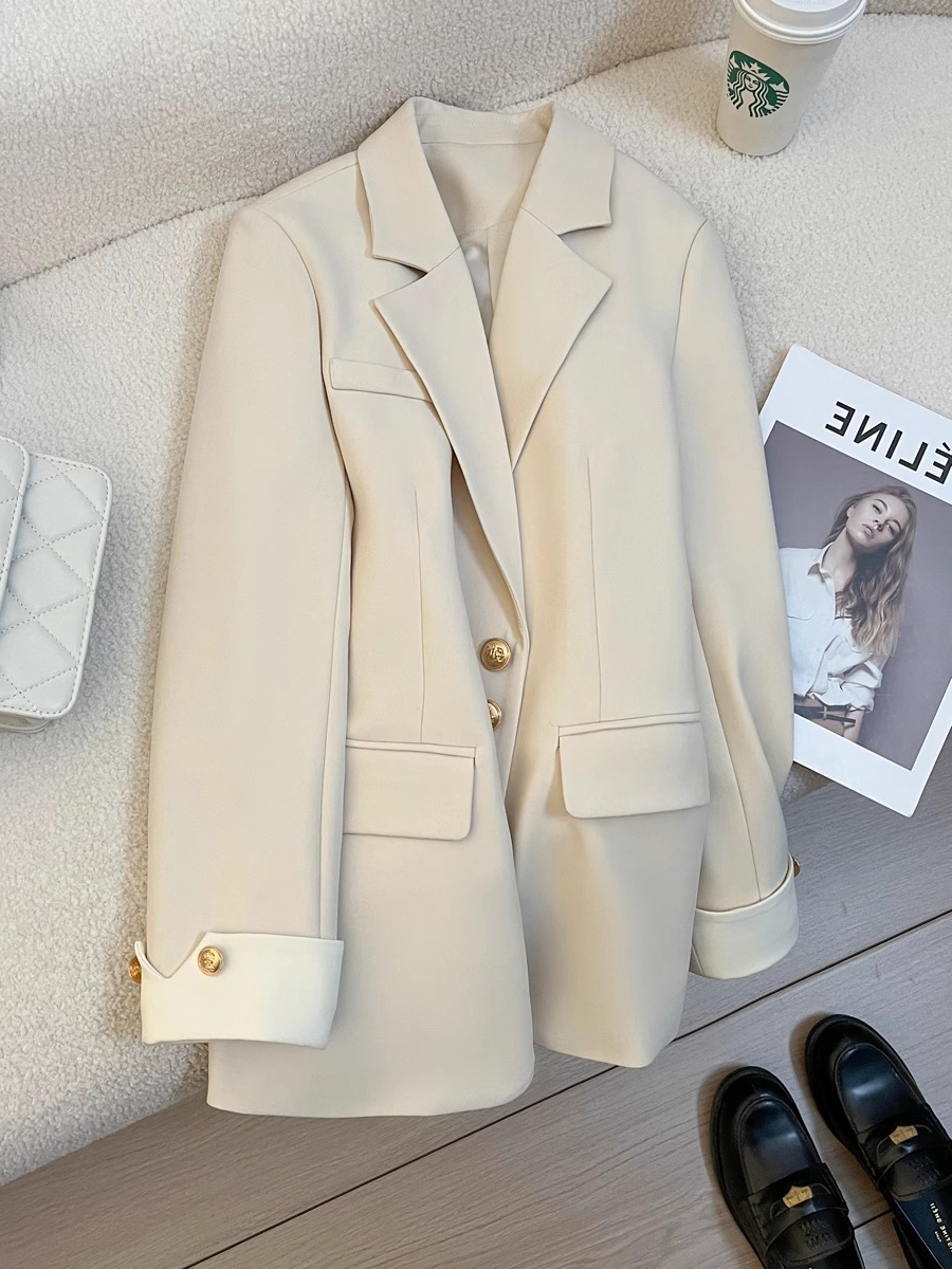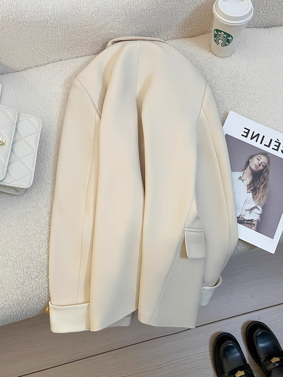 米白色西裝外套女2024春季新款韓版設計感小衆時尚氣質通勤小西服
