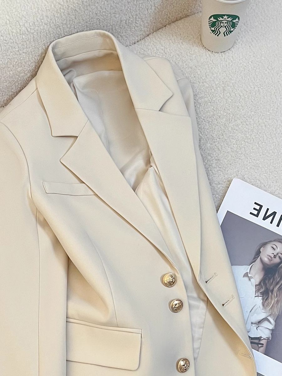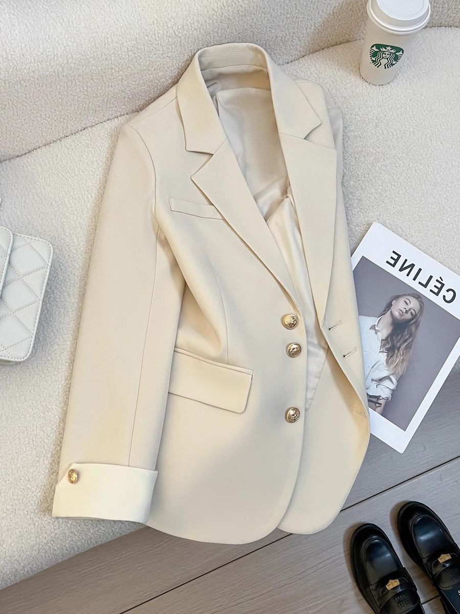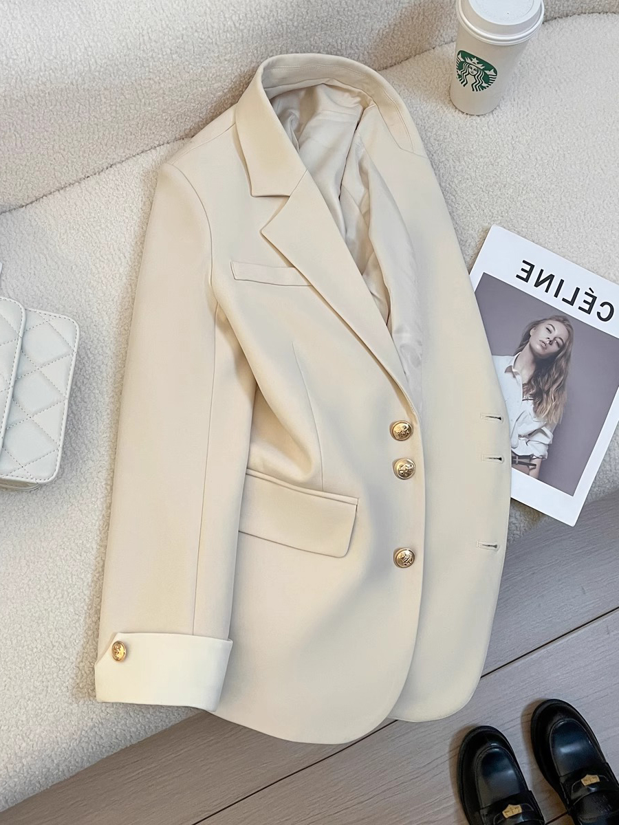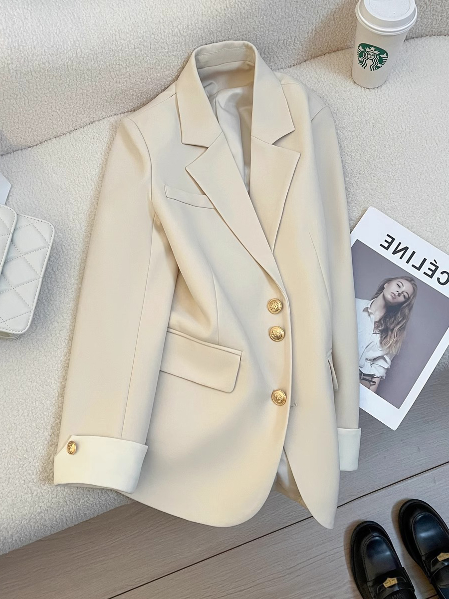 米白色西裝外套女2024春季新款韓版設計感小衆時尚氣質通勤小西服