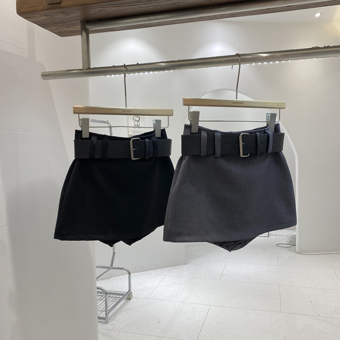 2024年秋季新款韓版辣妹修身顯瘦純色百搭小個子低腰包臀A字短裙