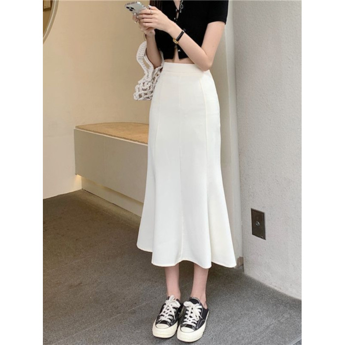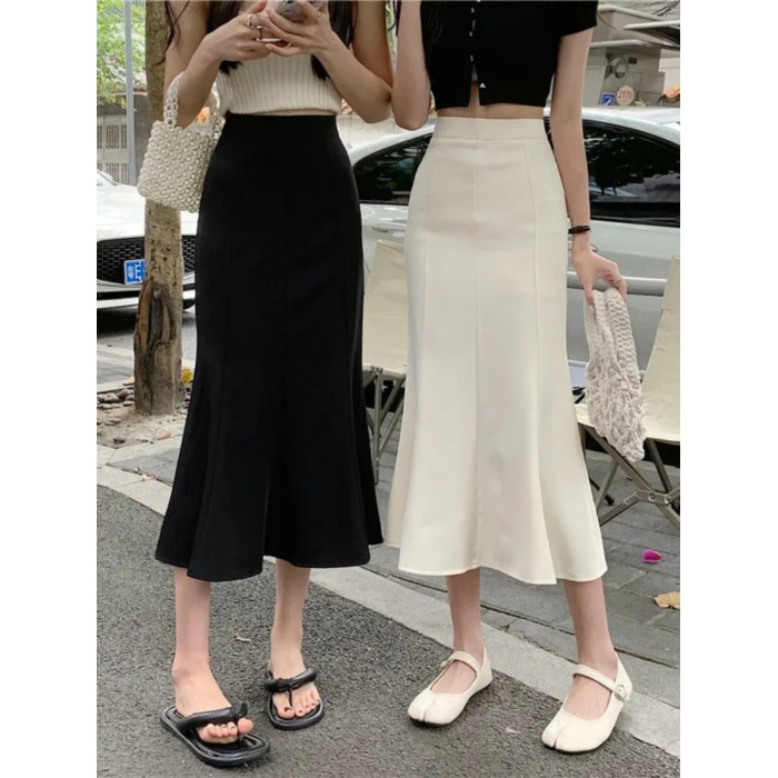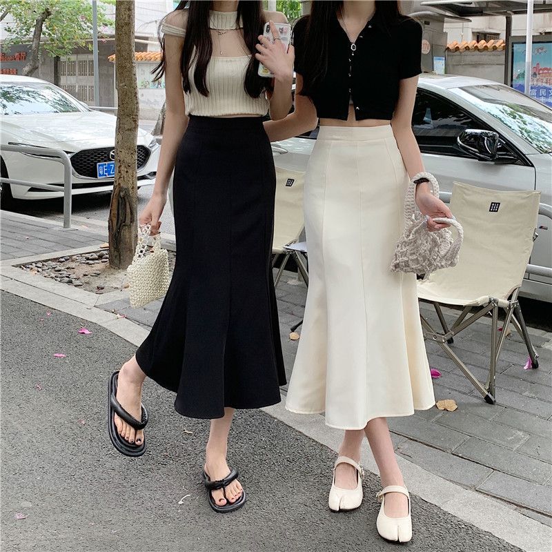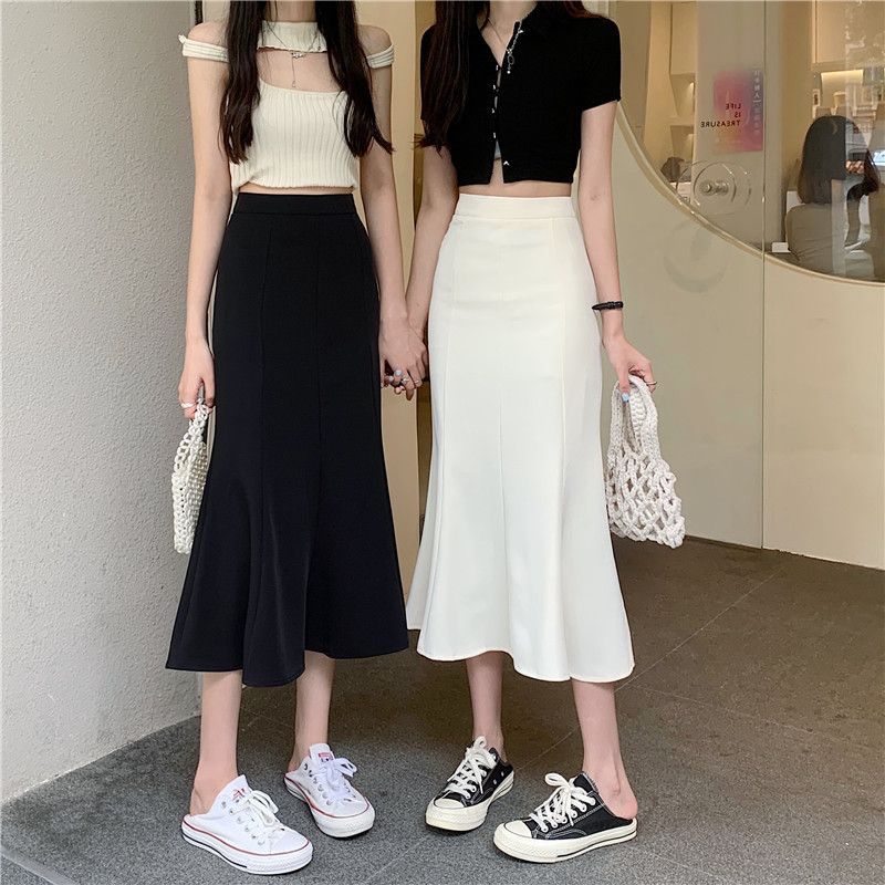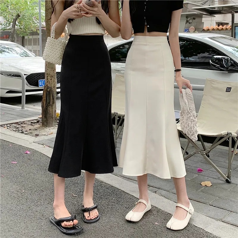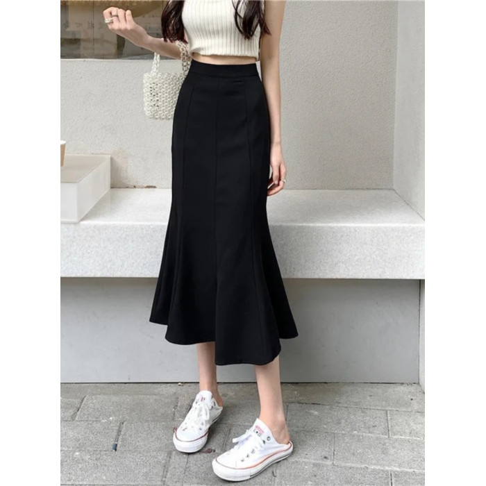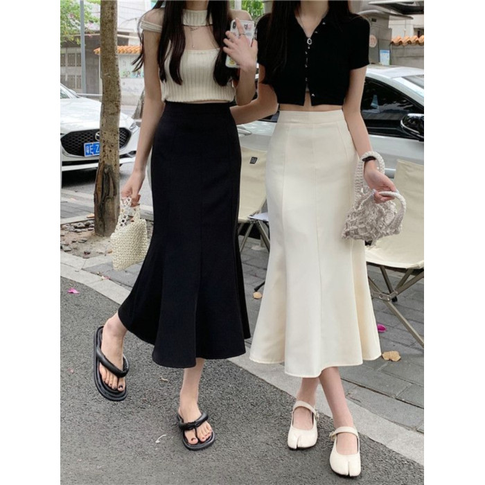 黑色針織魚尾半身裙女春夏中長款新款高腰顯瘦修身彈力a字包臀裙