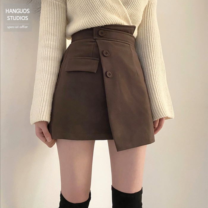 微胖穿搭chic高腰不規則毛呢褲裙女秋冬大碼胖mm顯瘦包臀a字短裙