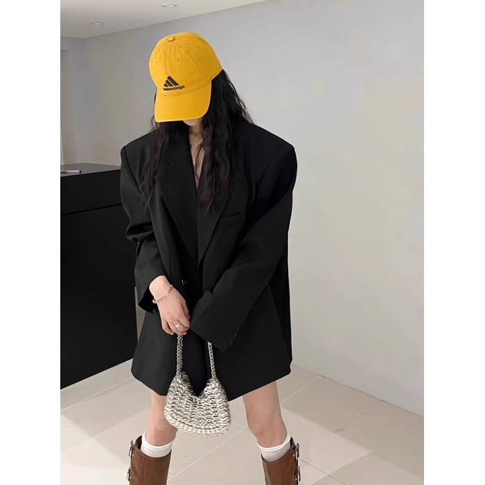 春季新大碼女裝黑色顯瘦西裝外套oversize高級設計感胖mm氣質西服