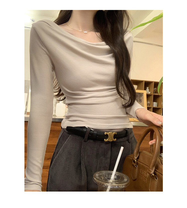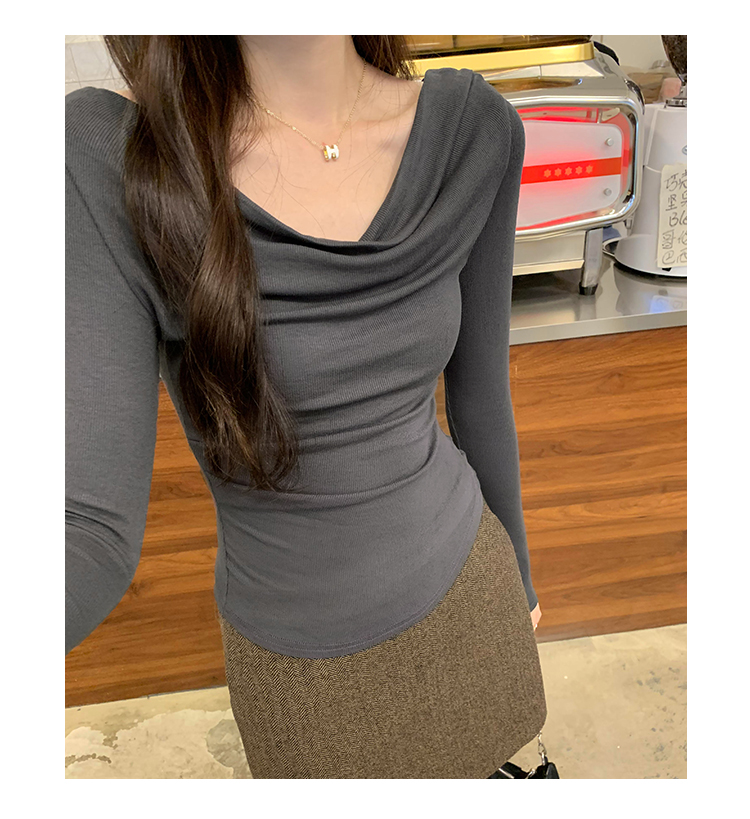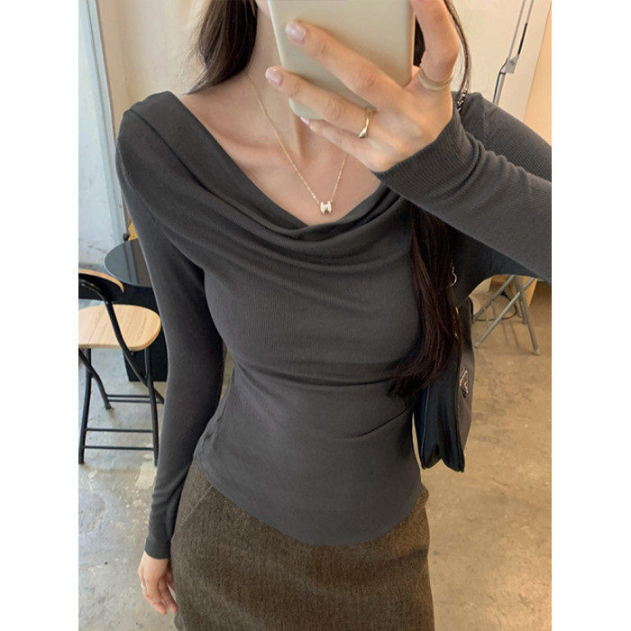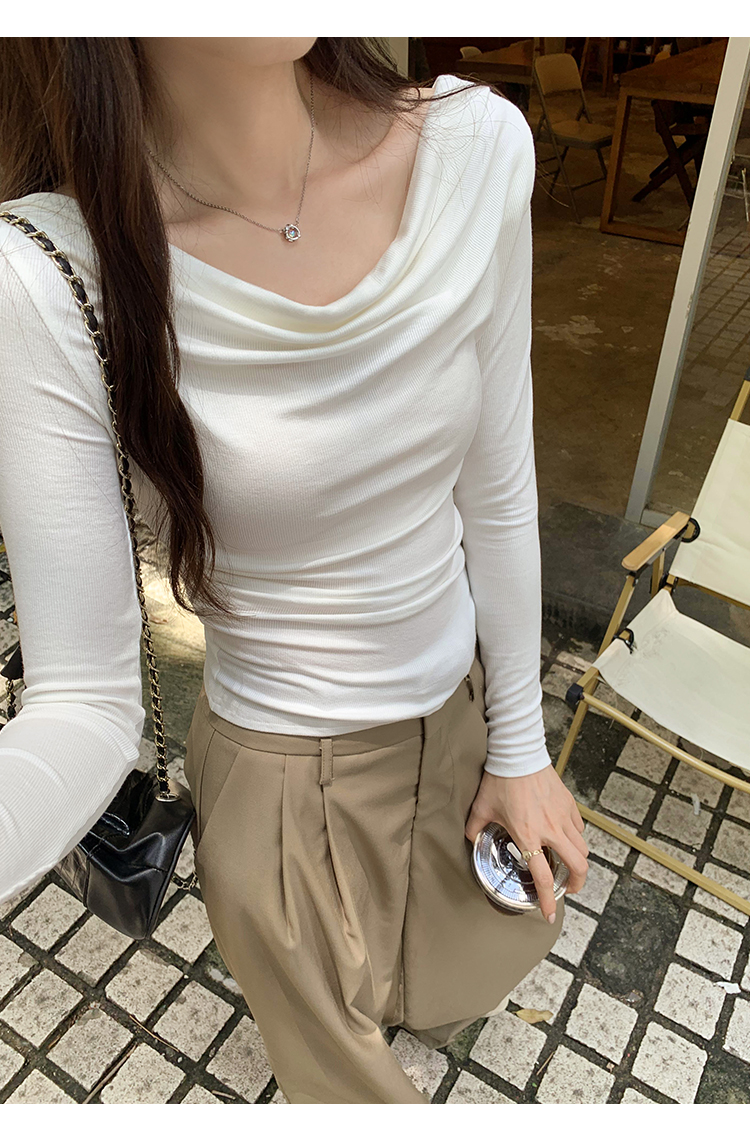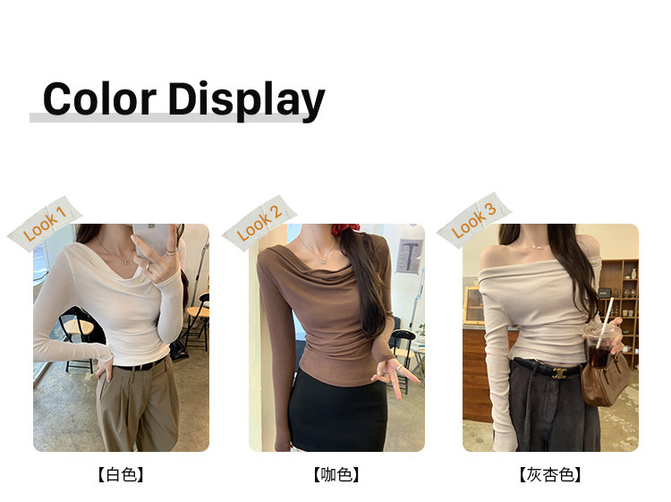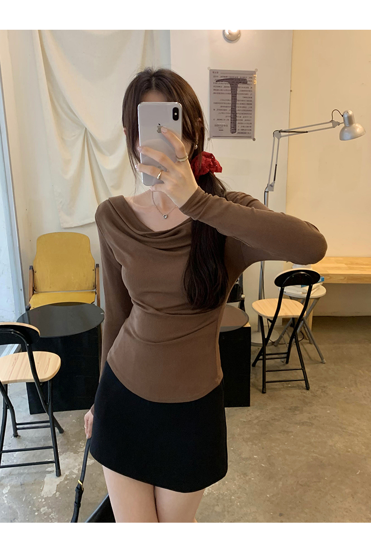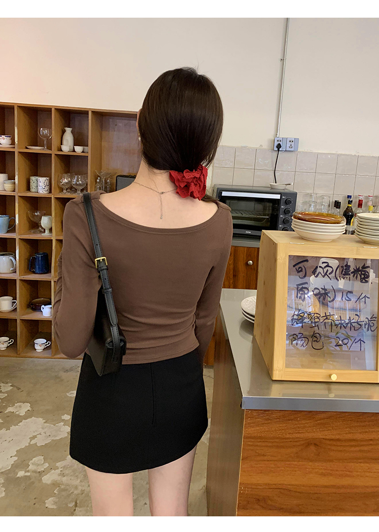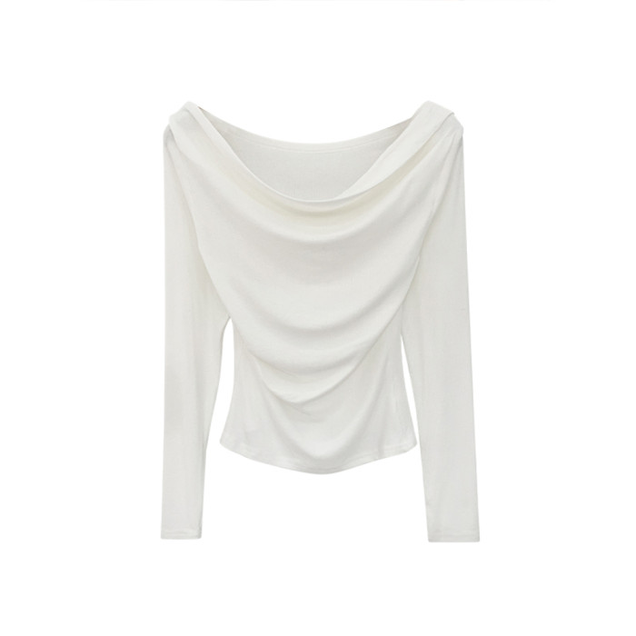 一字肩黑色蕩領露肩修身長袖打底衫T恤女春秋2025新款氣質短上衣