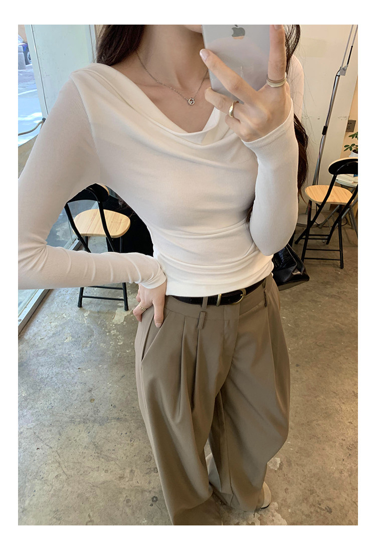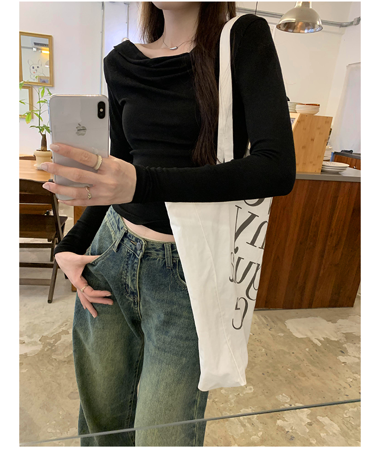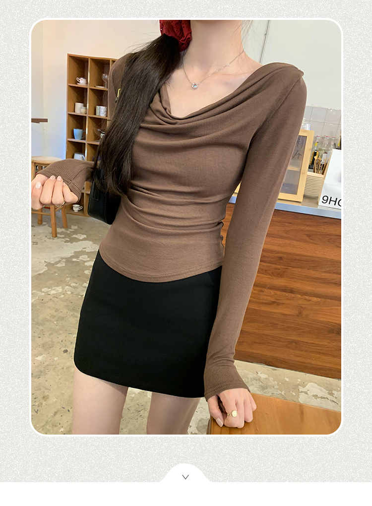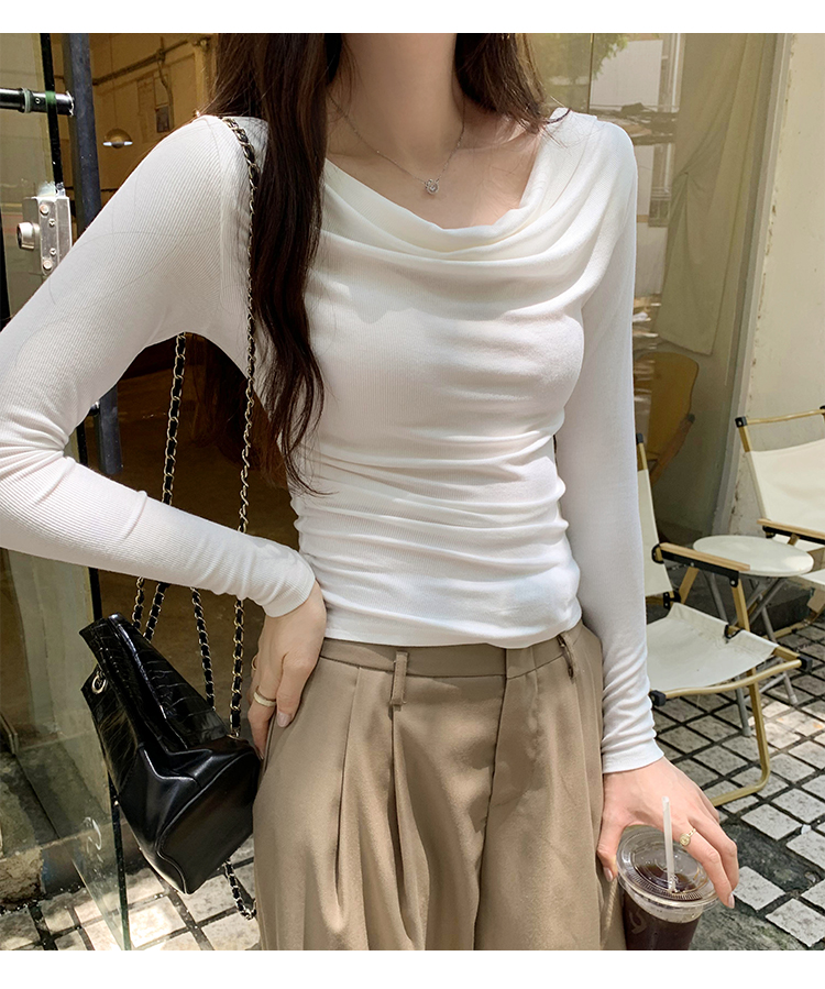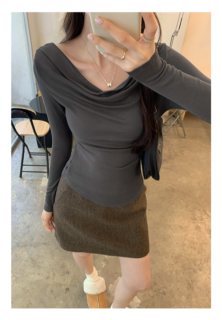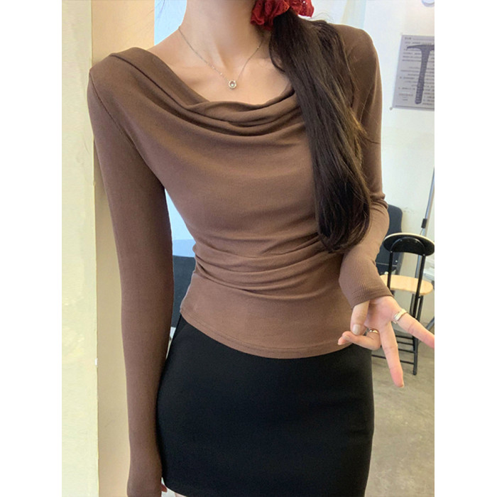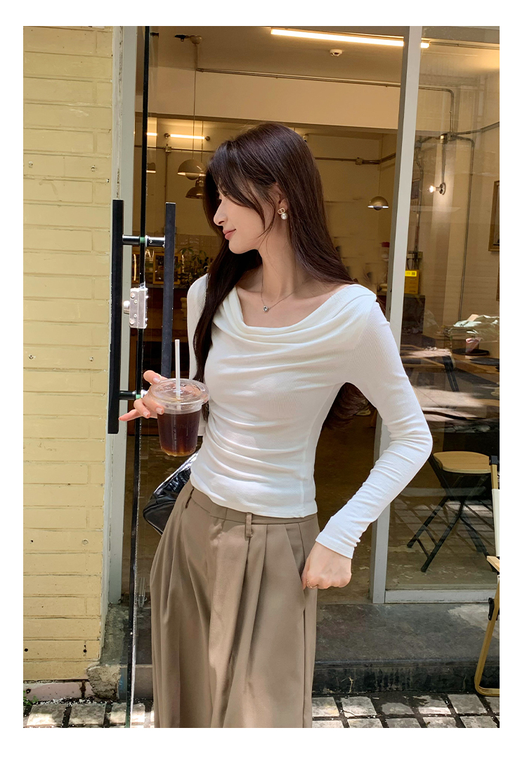 一字肩黑色蕩領露肩修身長袖打底衫T恤女春秋2025新款氣質短上衣